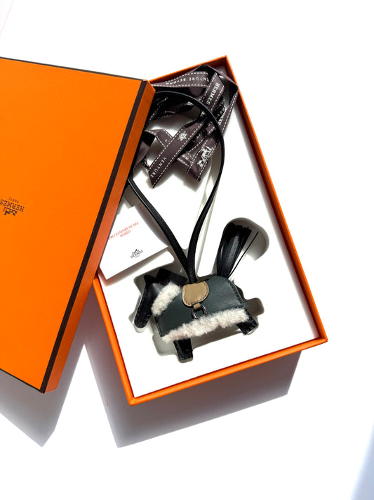 HERMES Rodeo Robeo Plush Charm PM Black Beige Marfa Mangrove Ecru Milo Lambskin and Wool Palladium Hardware New in box