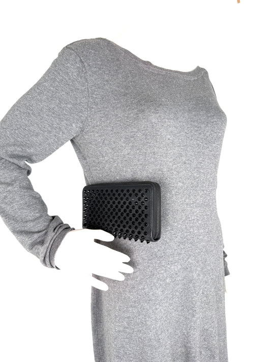 Christian Louboutin Panettone Black Calf Leather Spike Zip Long Wallet