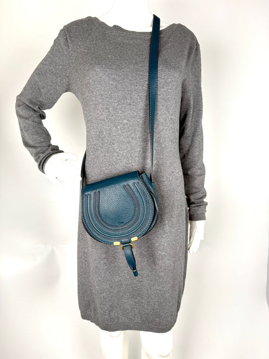Chloe Marcie Small Blue Leather Crossbody Bag