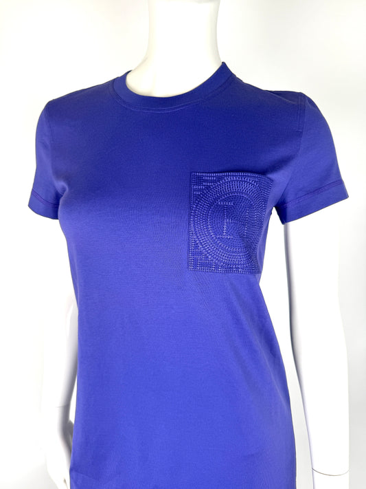 Hermes Embroidered Pocket Violet Purple Cotton Crew Neck Shirt Dress 34 2 New