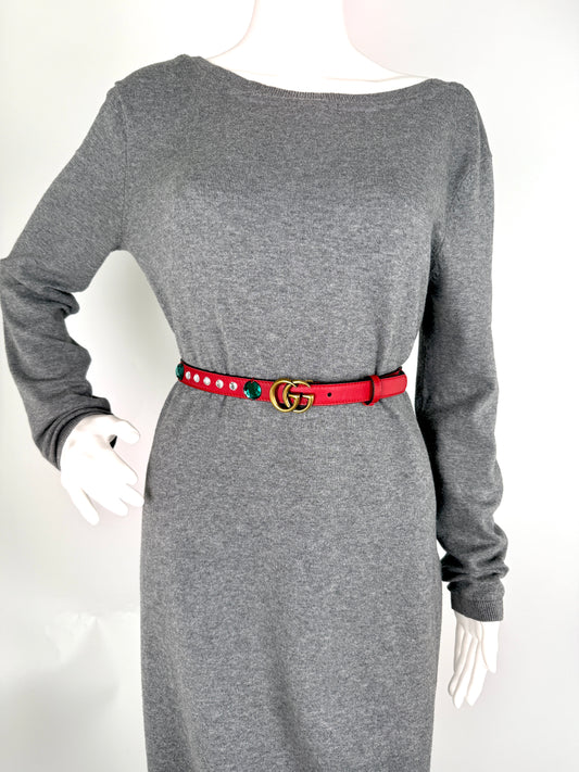 GUCCI GG Red Crystal Embellished Skinny Leather Belt 100 40
