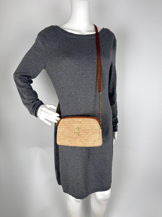 Saint Laurent Gaby Raffia Leather Trimmed Crossbody Bag
