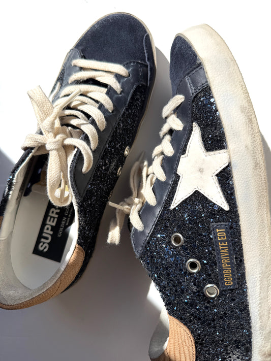 Golden Goose Superstar Low top Navy Glitter Beige Sneakers 38
