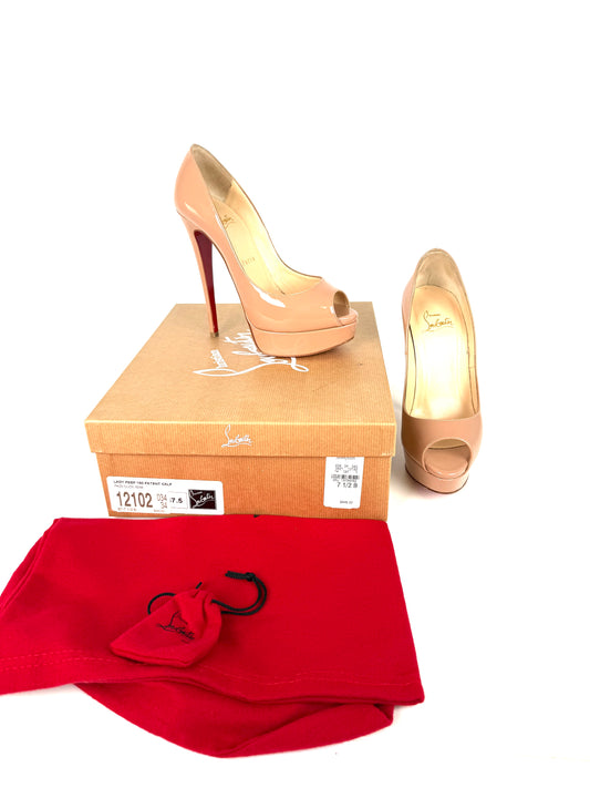 Christian Louboutin Lady Peep Nude Patent Leather Platform 150 Heel Pumps 37.5, 7