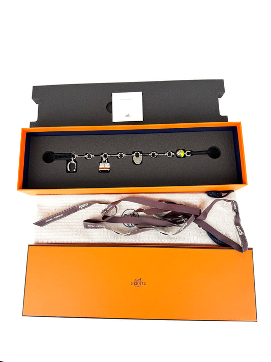 HERMES Bijou de Sac Blue Box Palladium Plated Birkin Bag Charm New