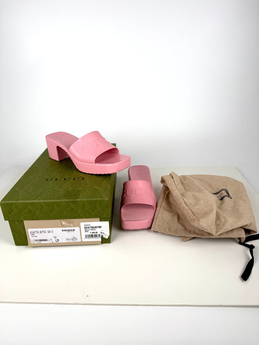 GUCCI Rubber Pink Wild Rose Platform Slide Sandals 36, 6