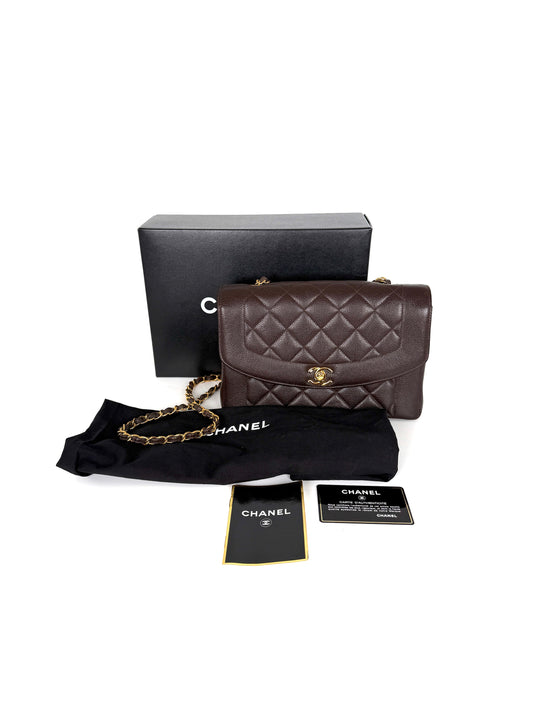 Vintage CHANEL Diana Medium Brown Caviar Quilted Leather Crossbody Flap Bag