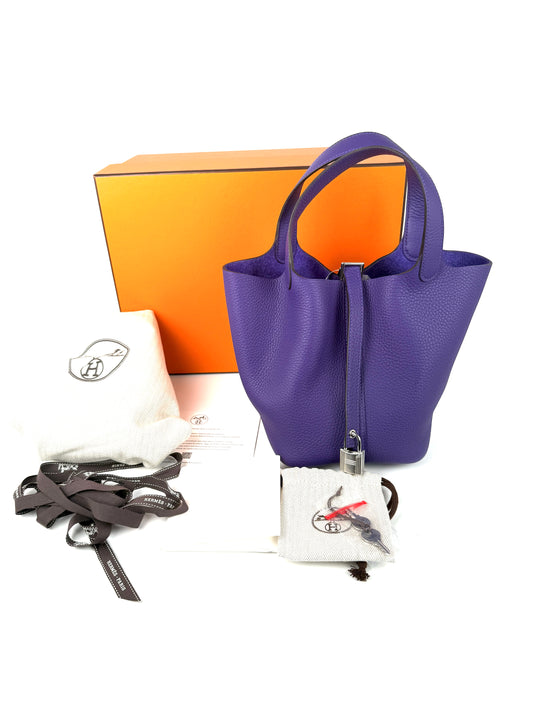 HERMES Picotin Lock 18 PM Purple Taurillon Clemence Satchel Top Handle Bag New with tag