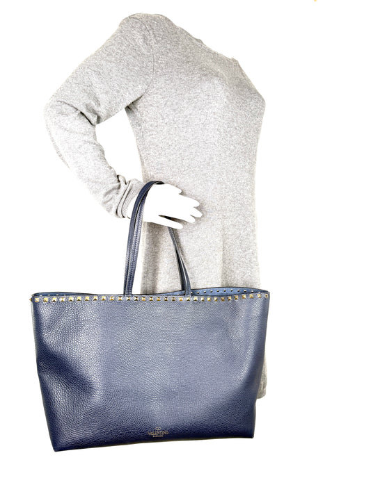 Valentino Garavani Rockstud Navy Blue Leather Tote Bag