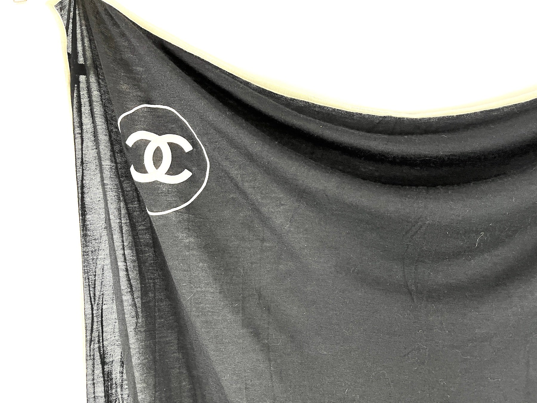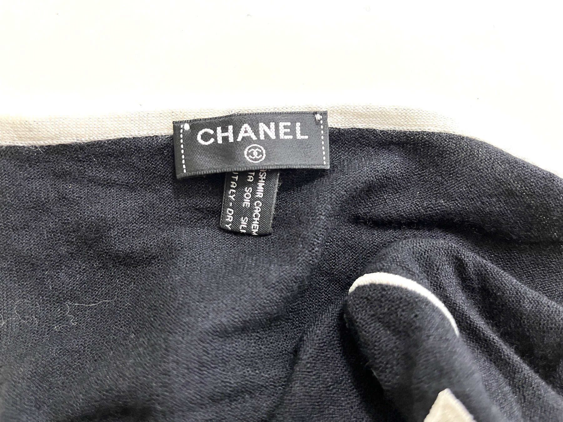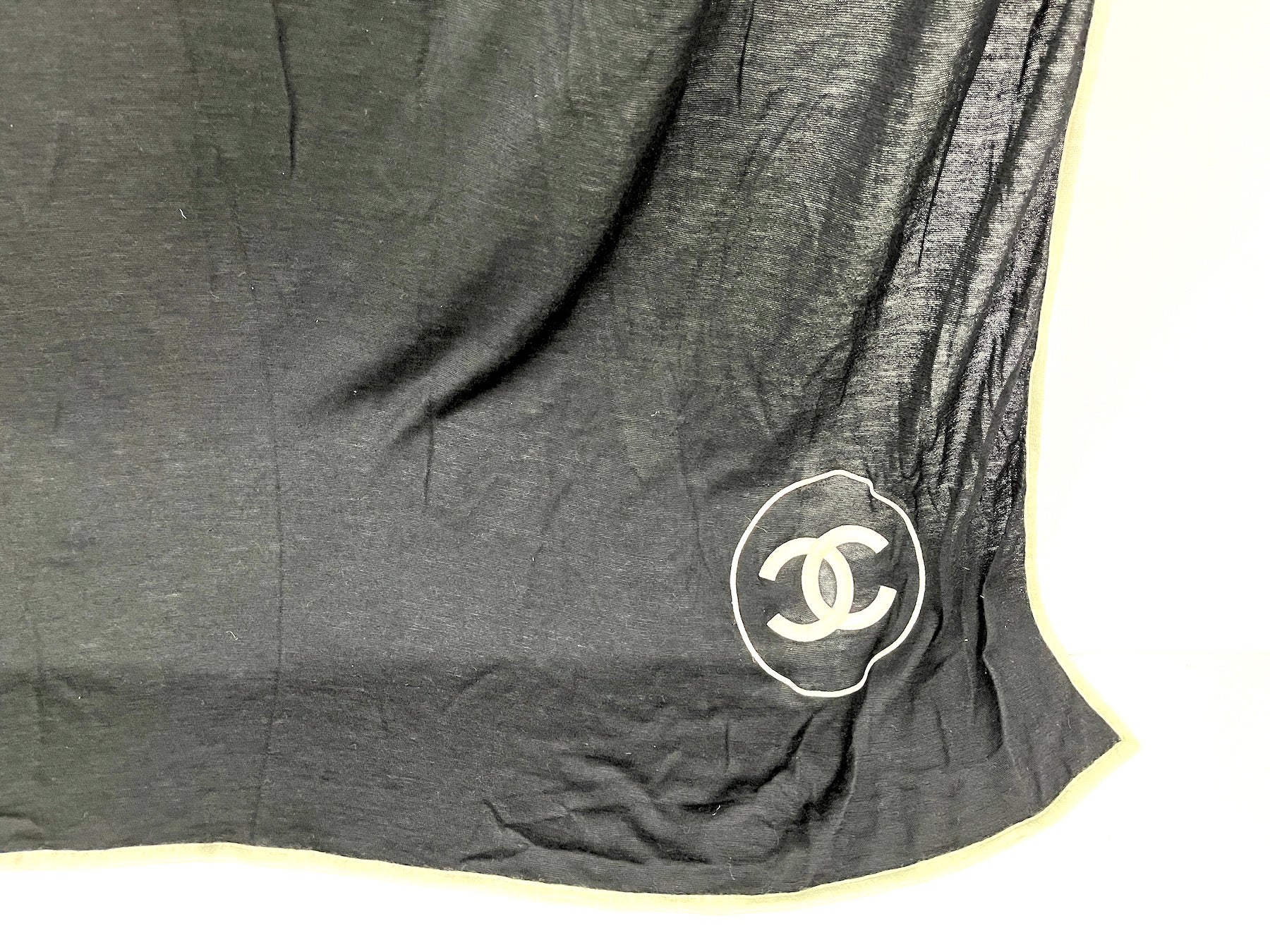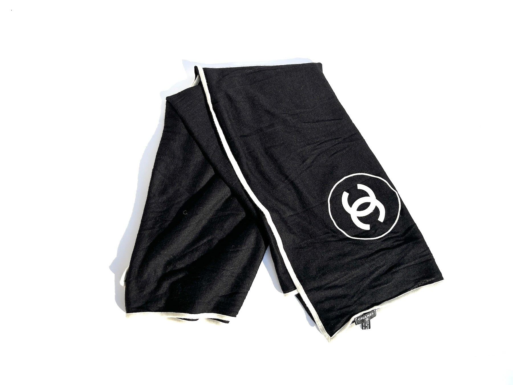 CHANEL Black Cashmere Silk 2020 CC Logo Rectangular Scarf