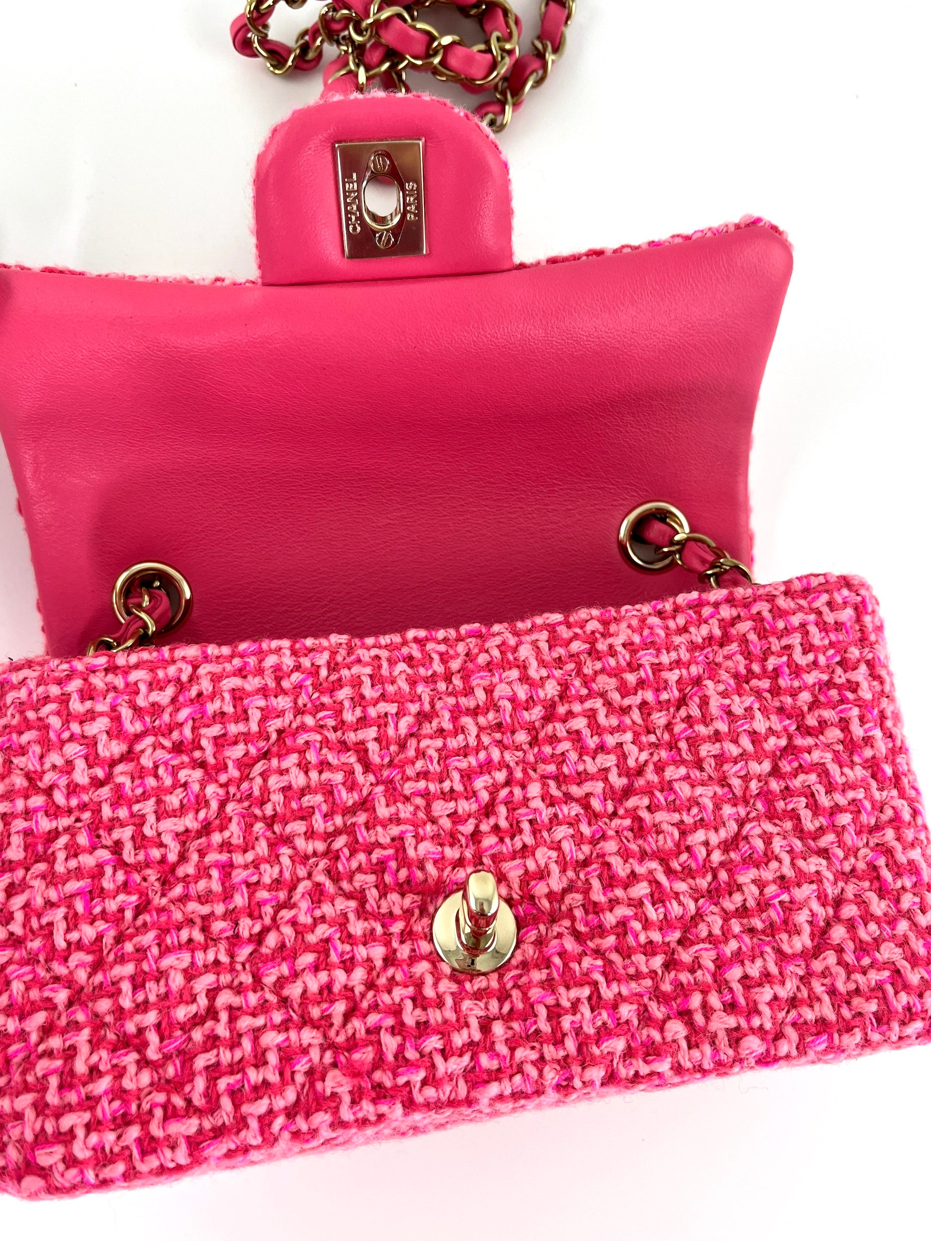 CHANEL Wool Tweed 2022 Pink Rectangular Mini Flap Bag