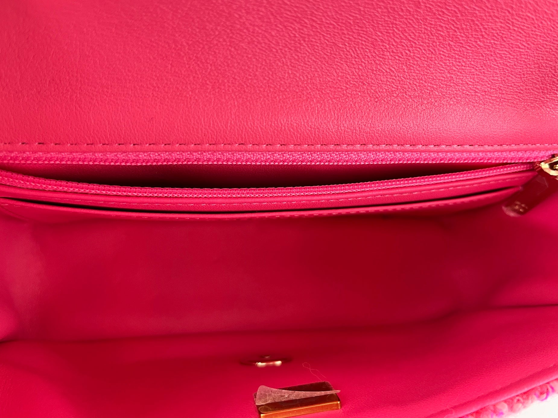 A must have for any pink Chanel lover. This bag will add color to any outfit. Purchased at the end of 2022 at the Chanel store in Neiman Marcus in Austin, TX. All items sold by Fashion Reloved are guaranteed authentic and described as accurately as possible.
