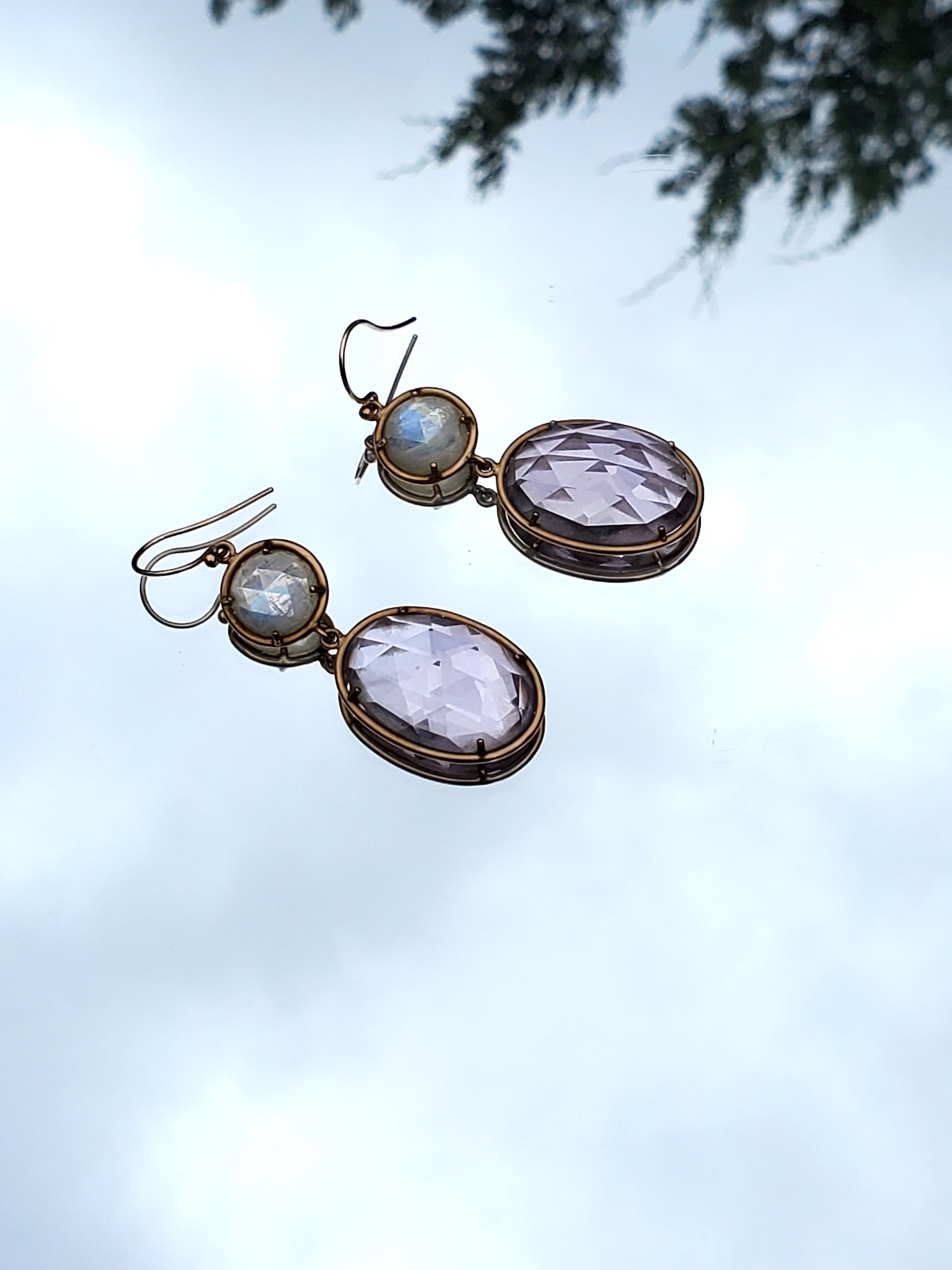 Irene Neuwirth Amethyst Rainbow Moonstone Drop Earrings