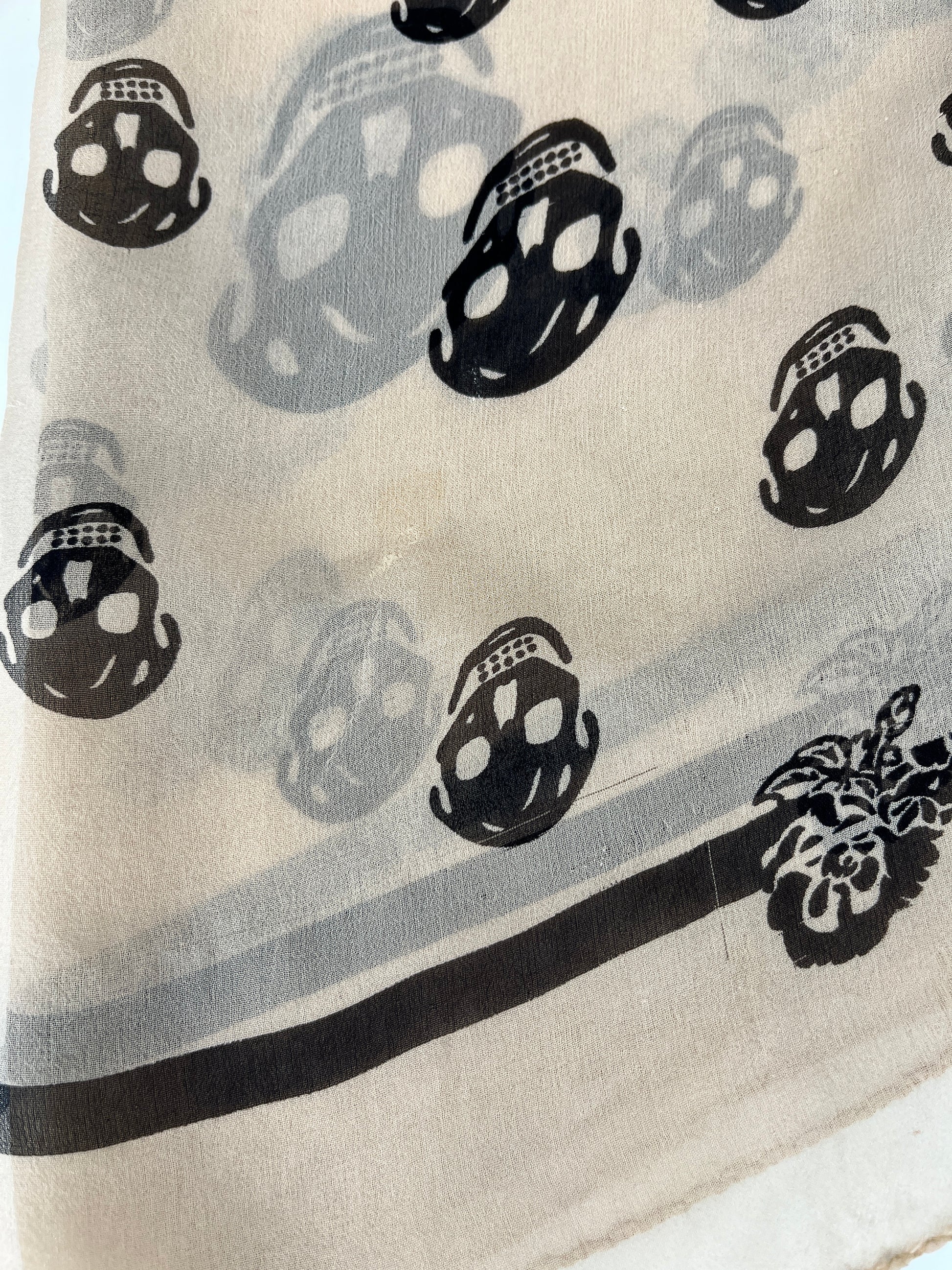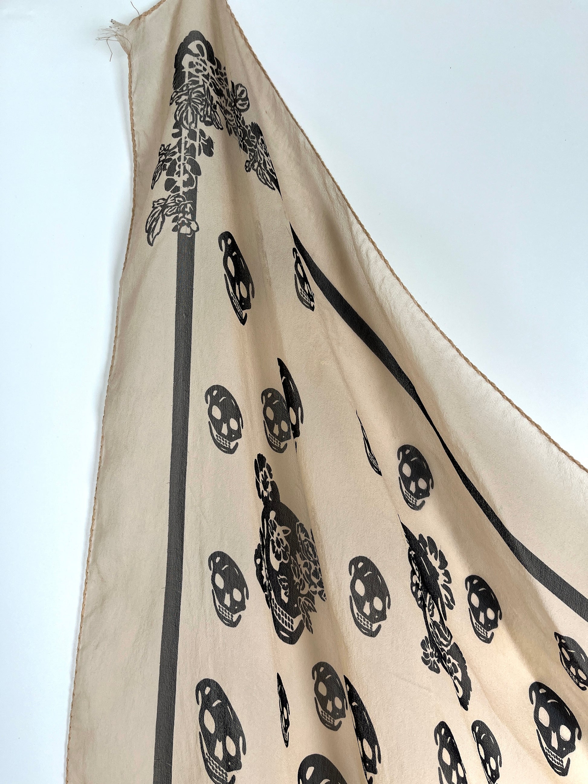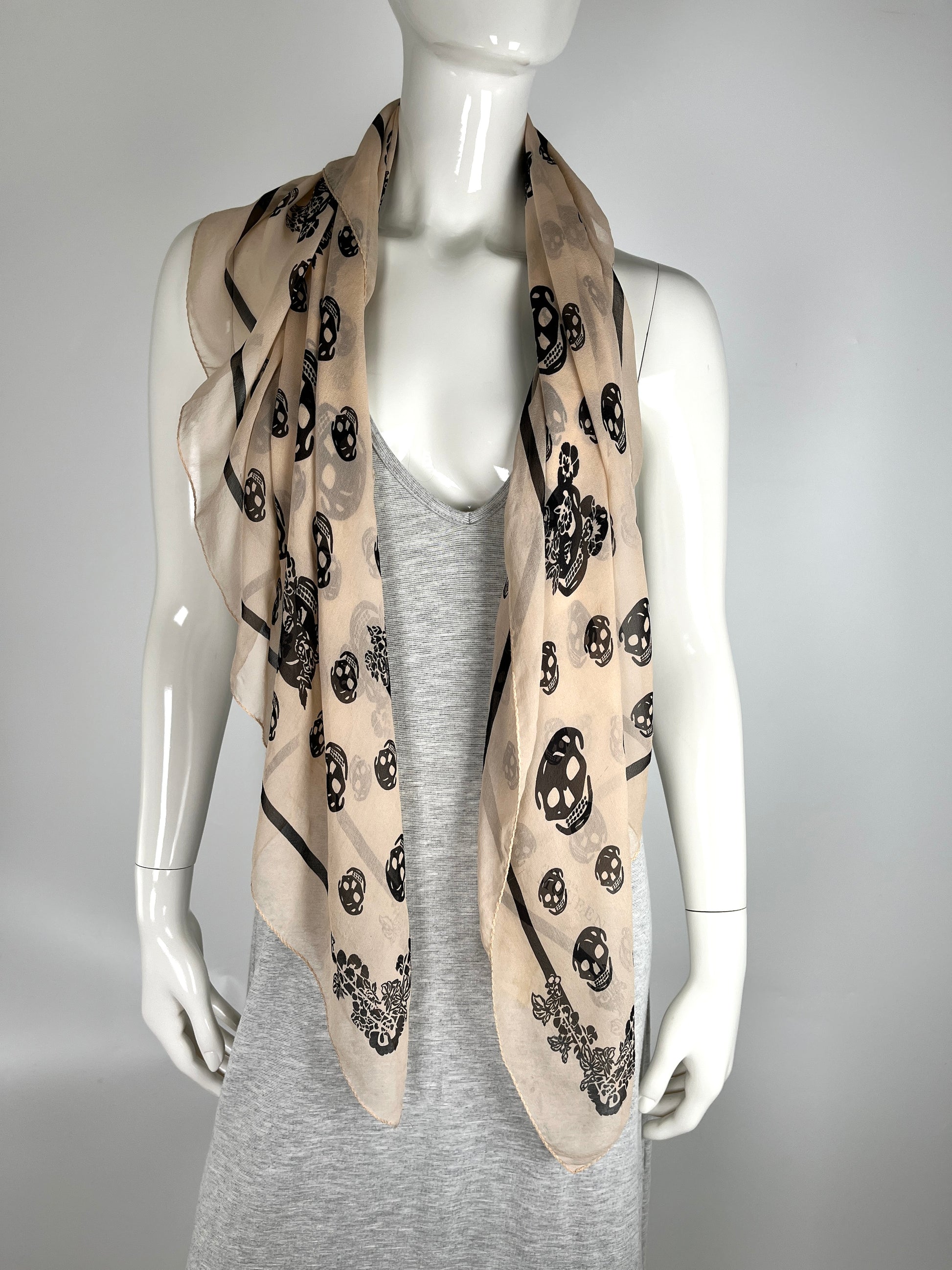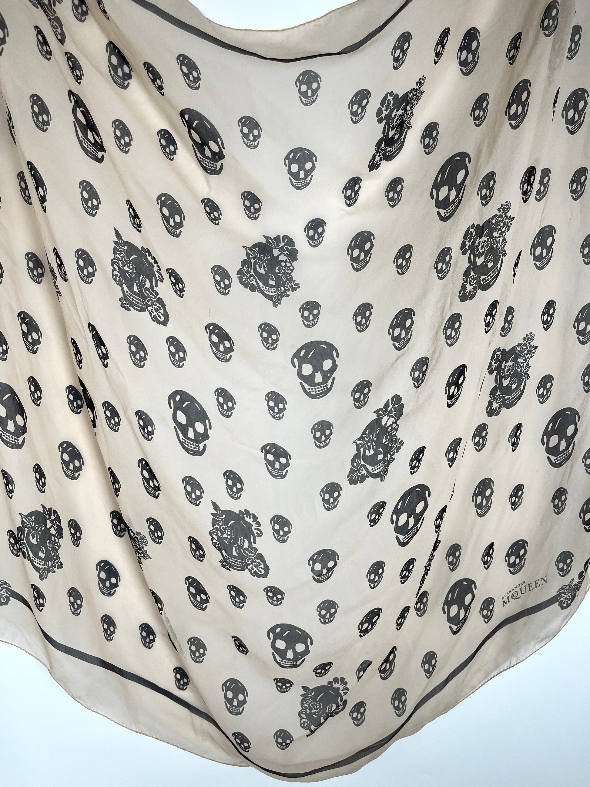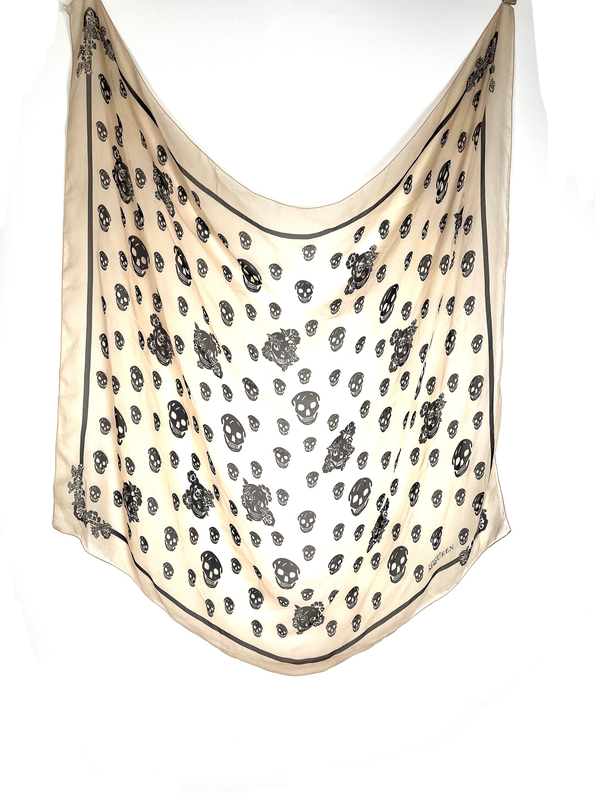 Alexander McQueen Skull Print Beige Black Silk Scarf