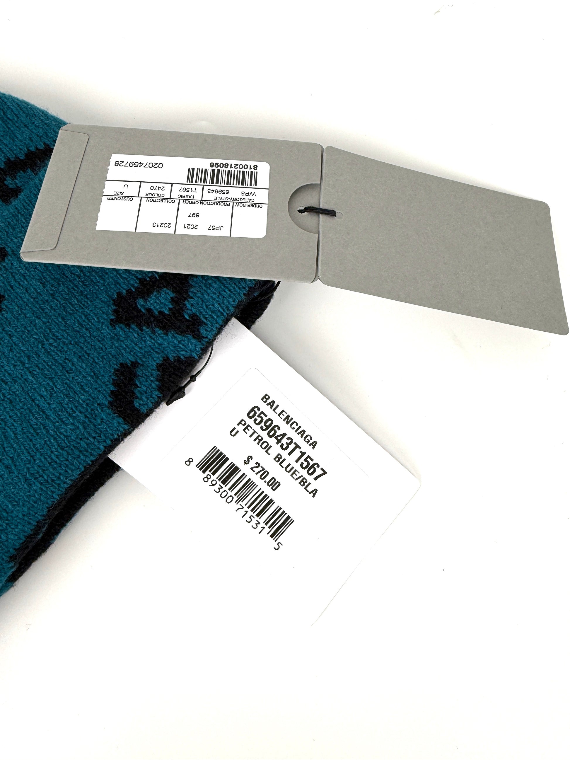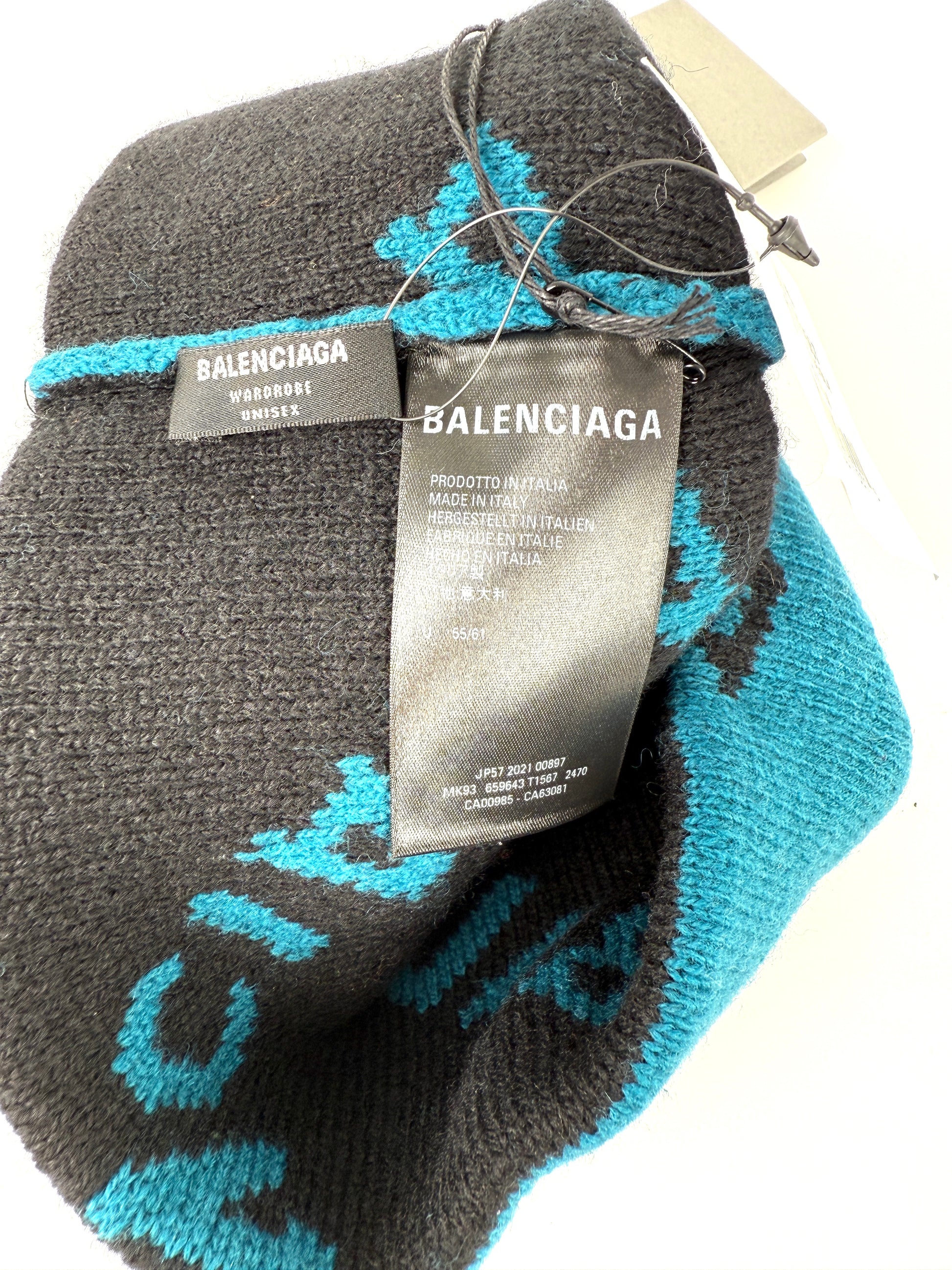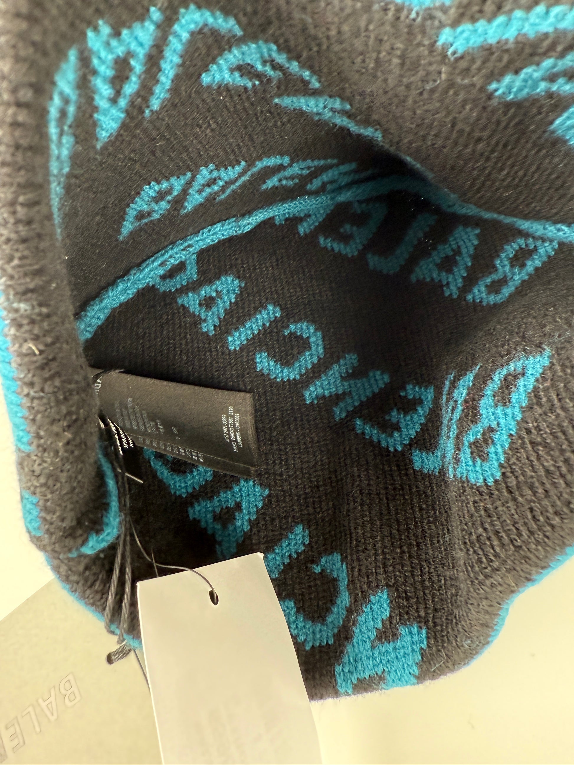 BALENCIAGA Beanie Wool Unisex Logo Blue Black Hat New with tags