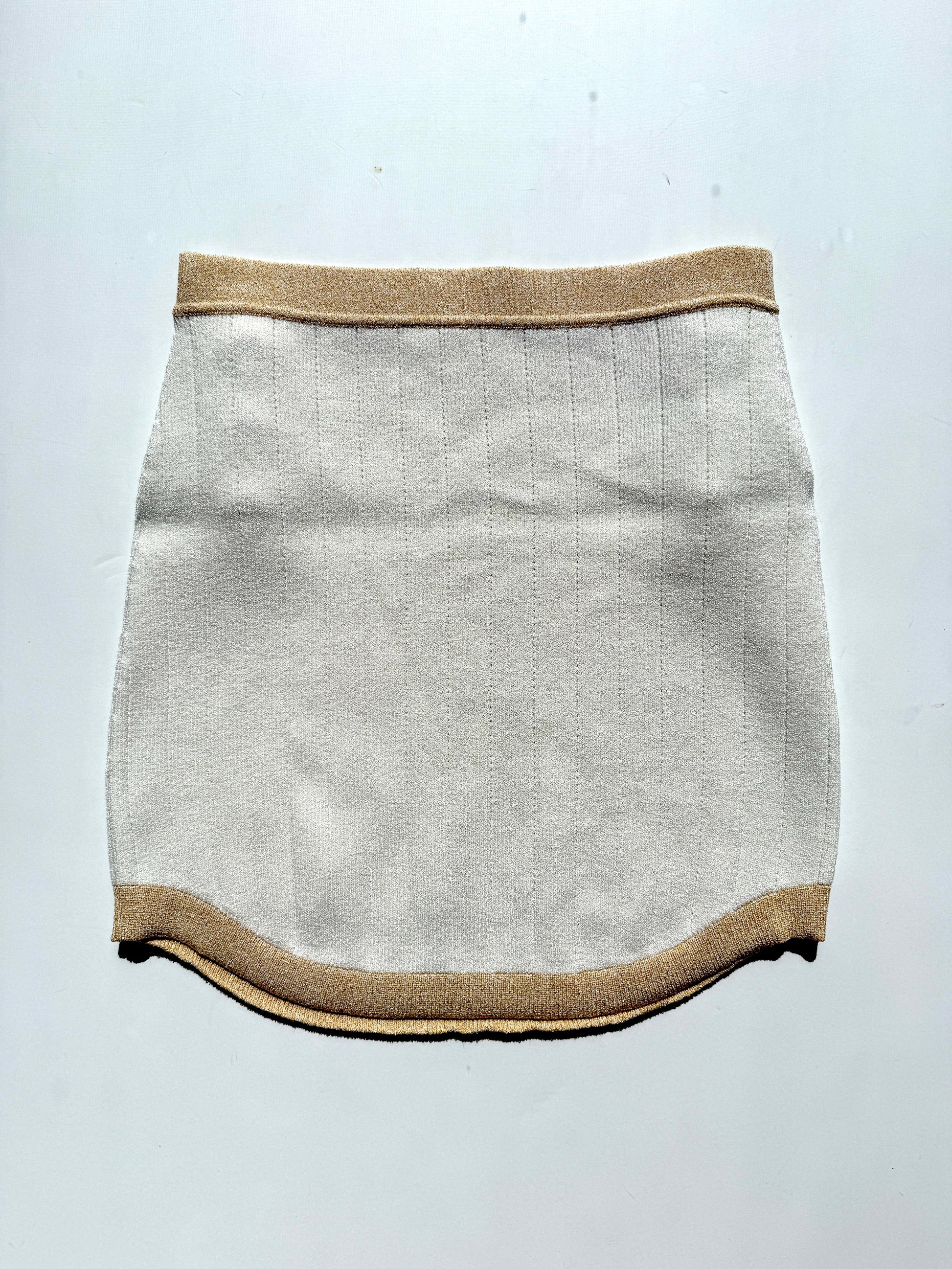 Balmain Off White Gold Ribbed Knit Mini Skirt 40 8