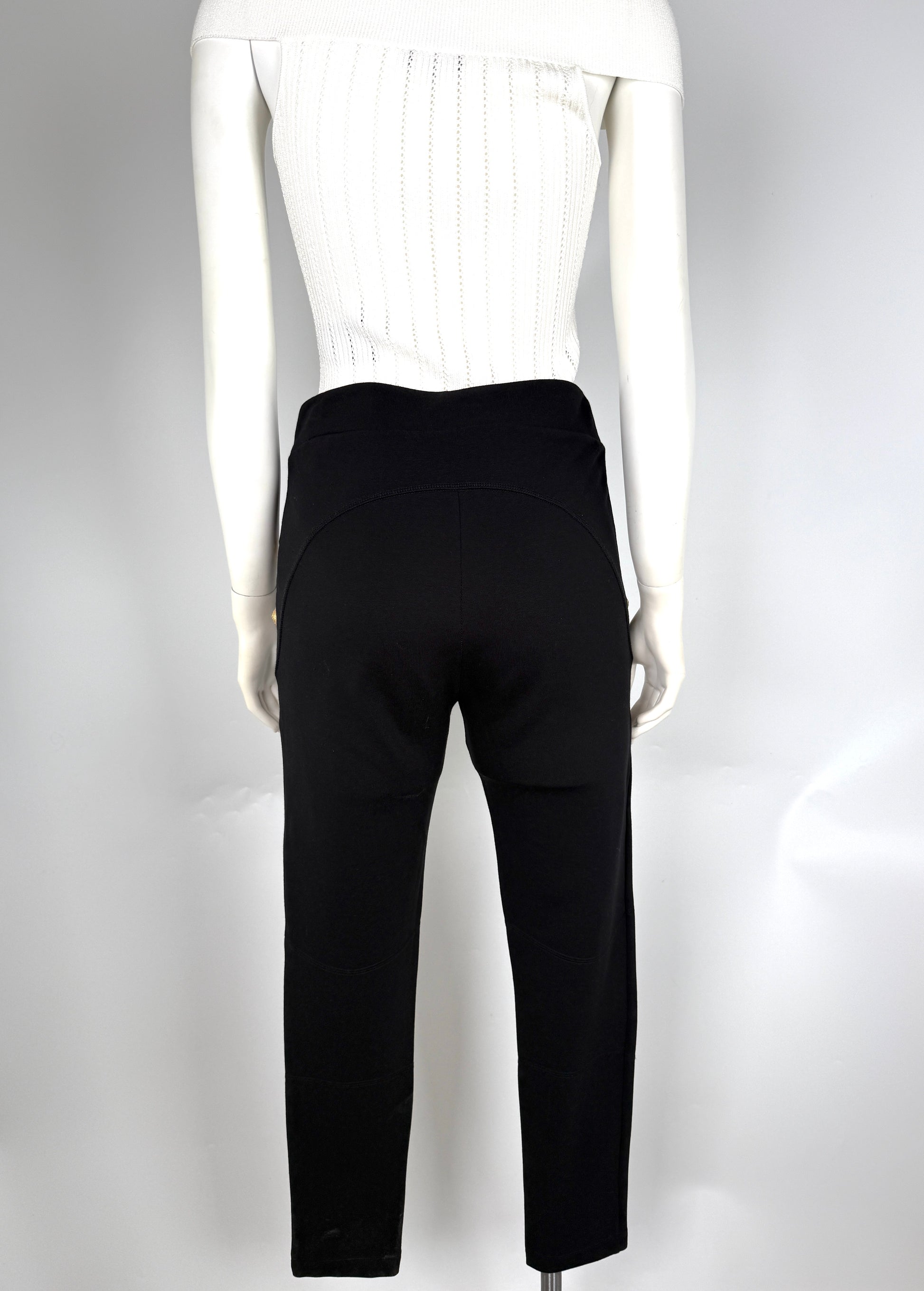 Balmain Side Button Black Classic Jersey Leggings Pants L