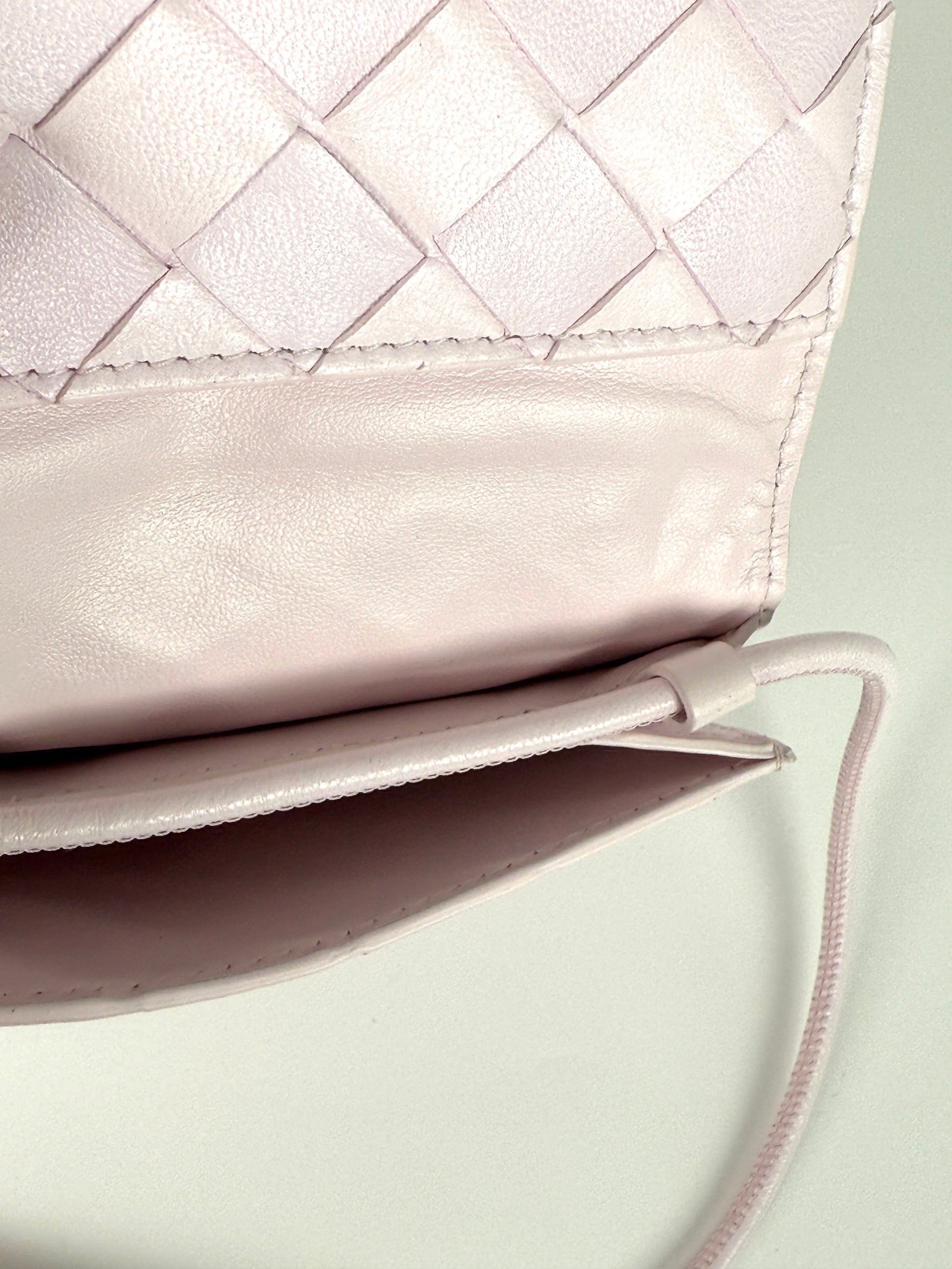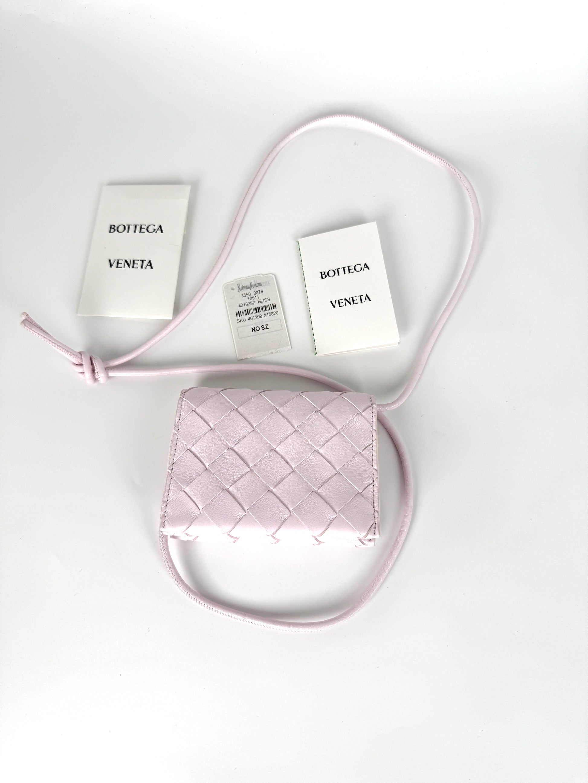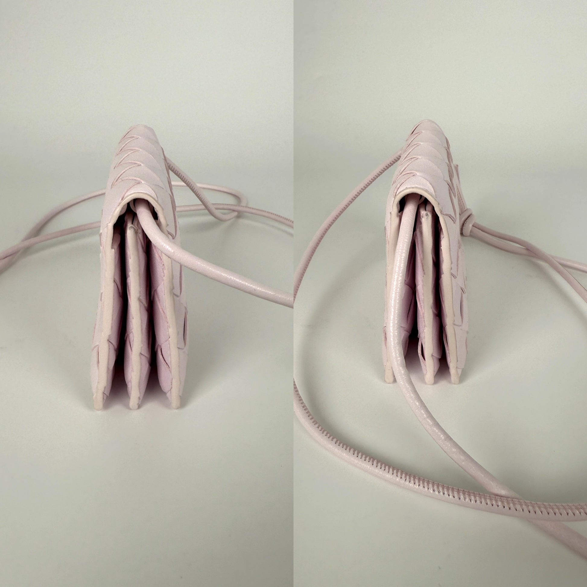 Bottega Veneta Intrecciato Bliss Pink Leather Crossbody Card Case Holder with Strap Belt Bag
