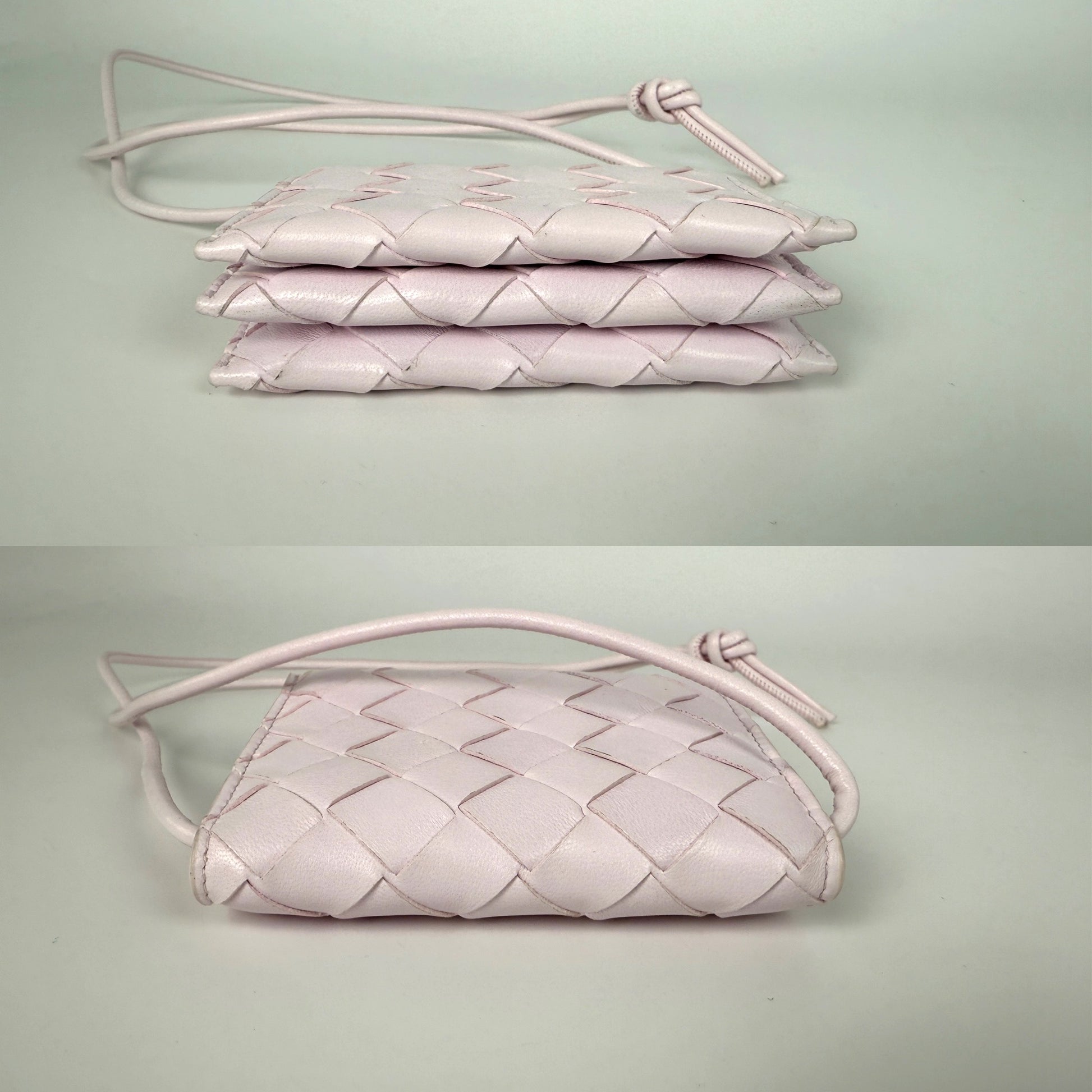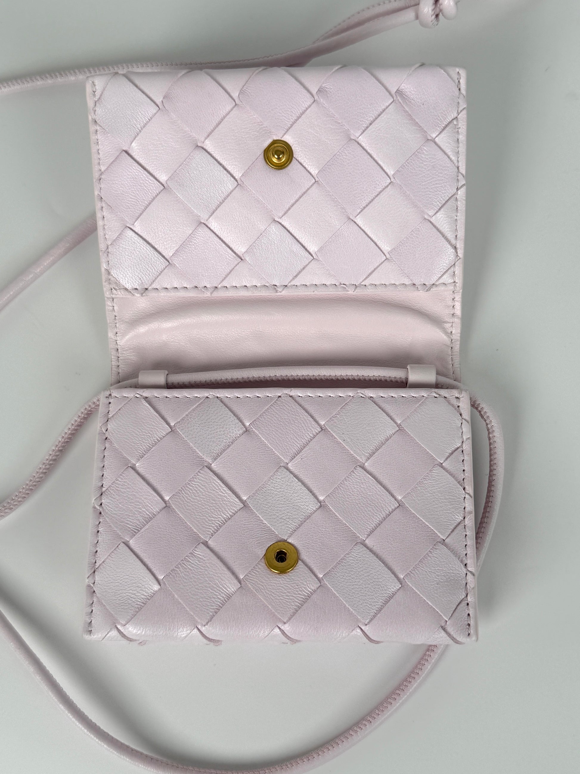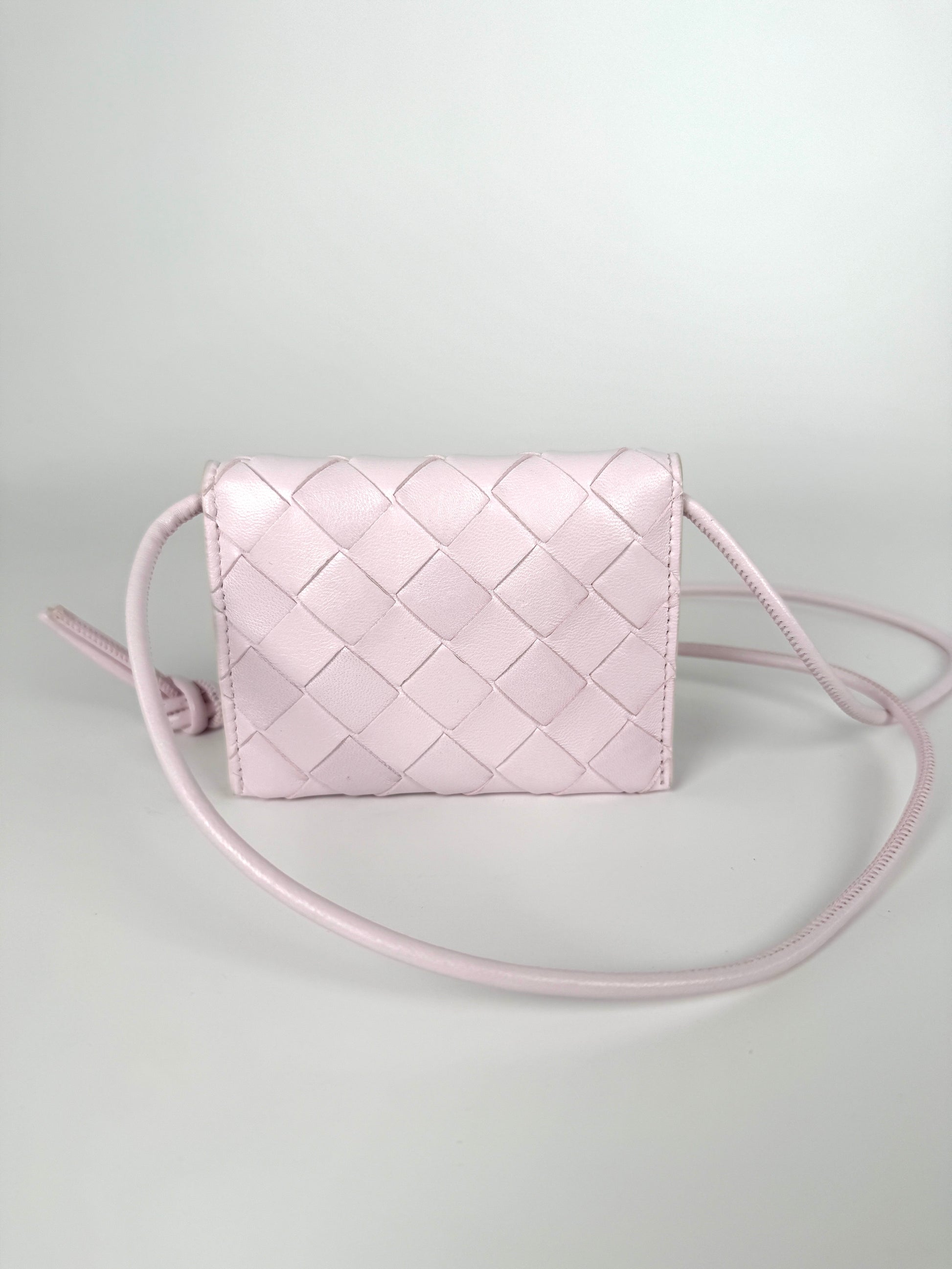Bottega Veneta Intrecciato Bliss Pink Leather Crossbody Card Case Holder with Strap Belt Bag