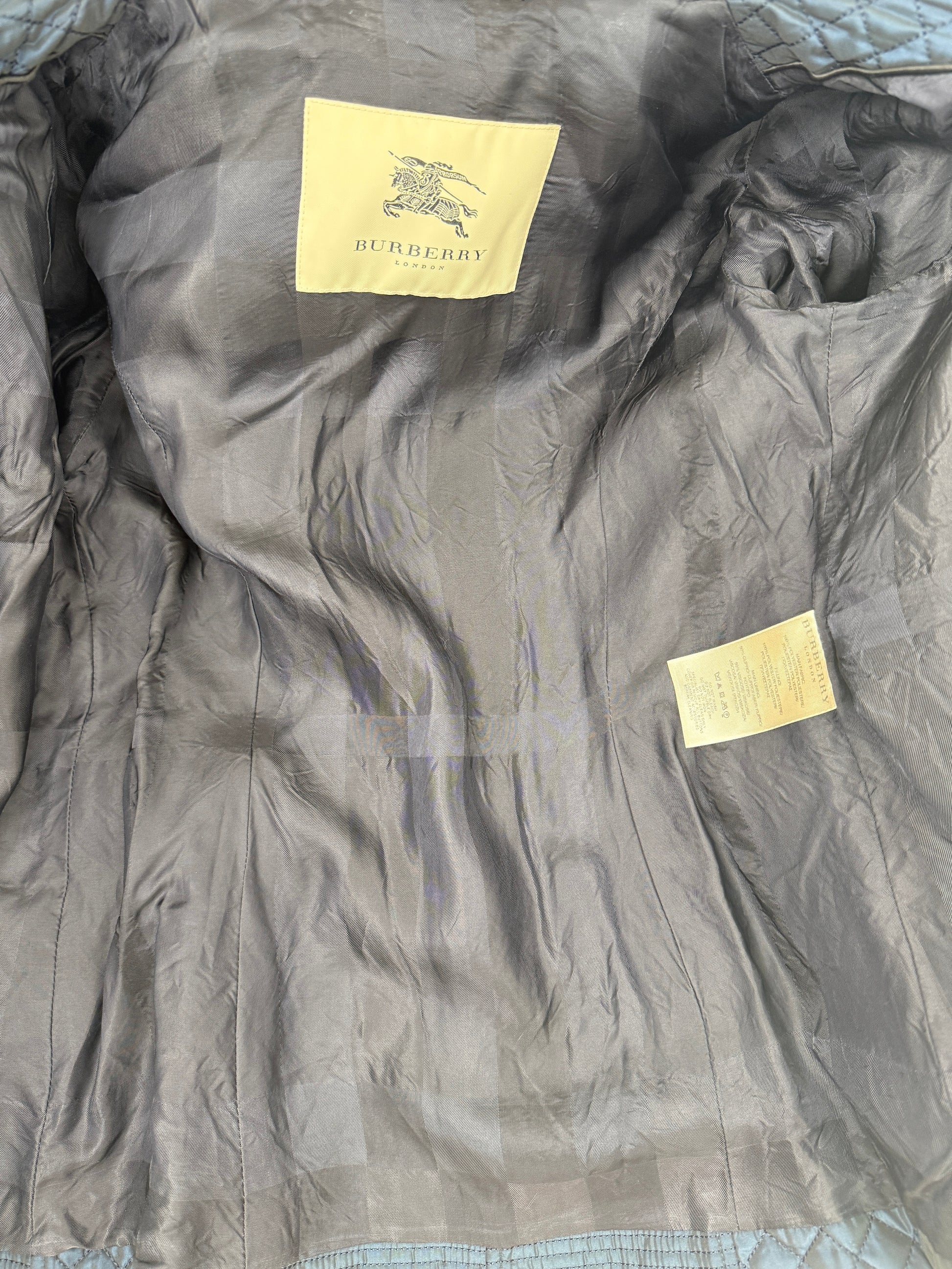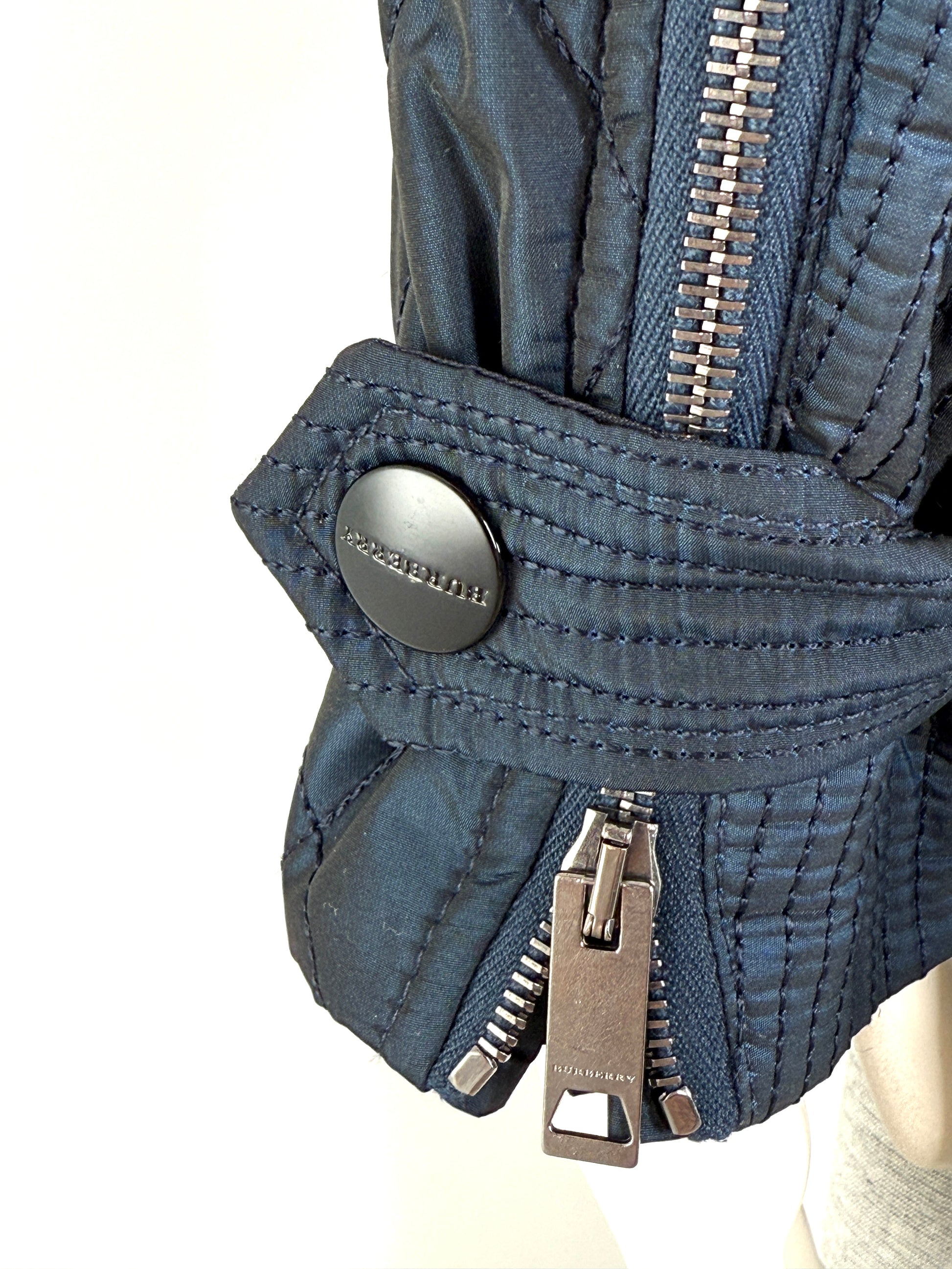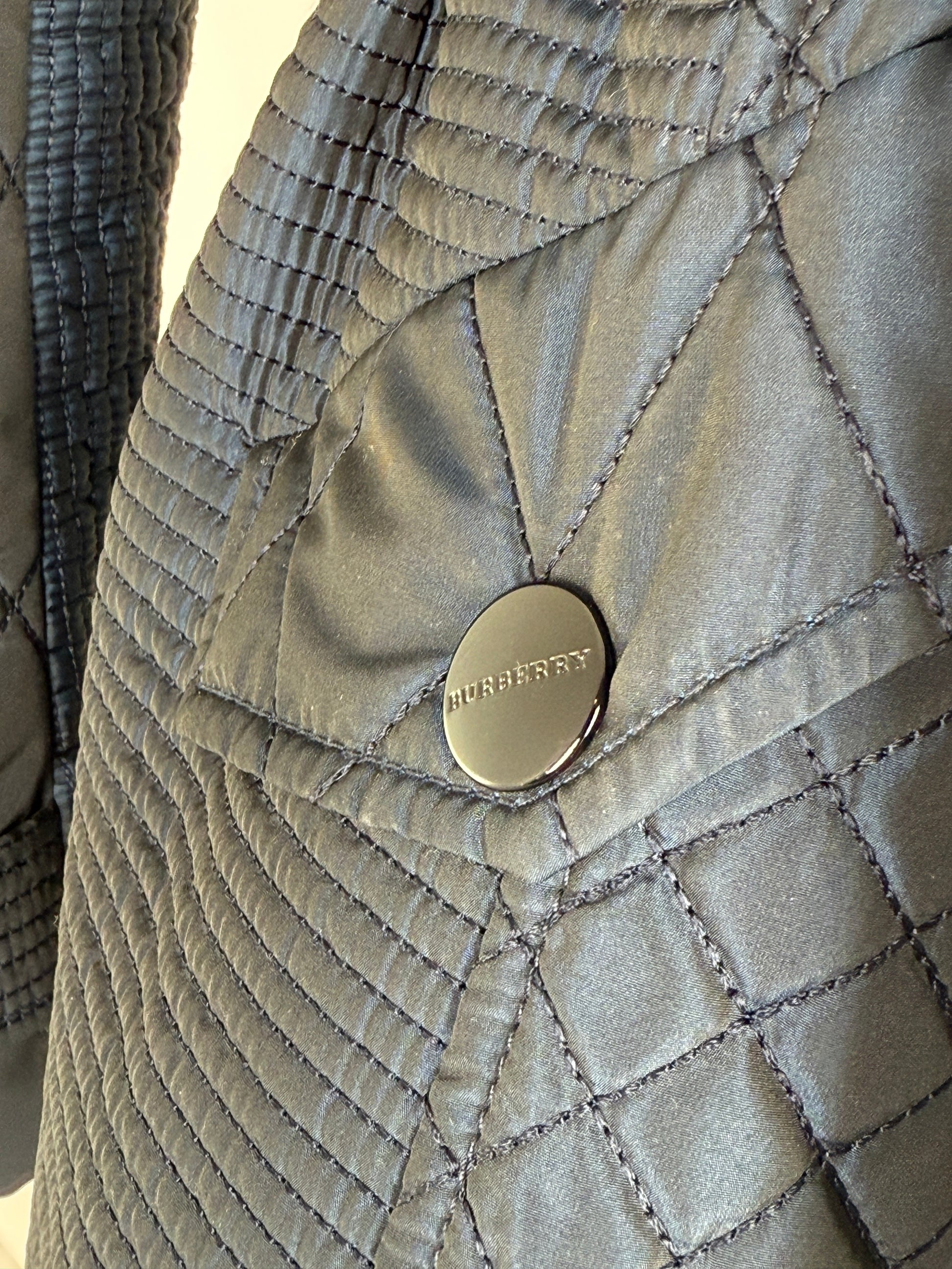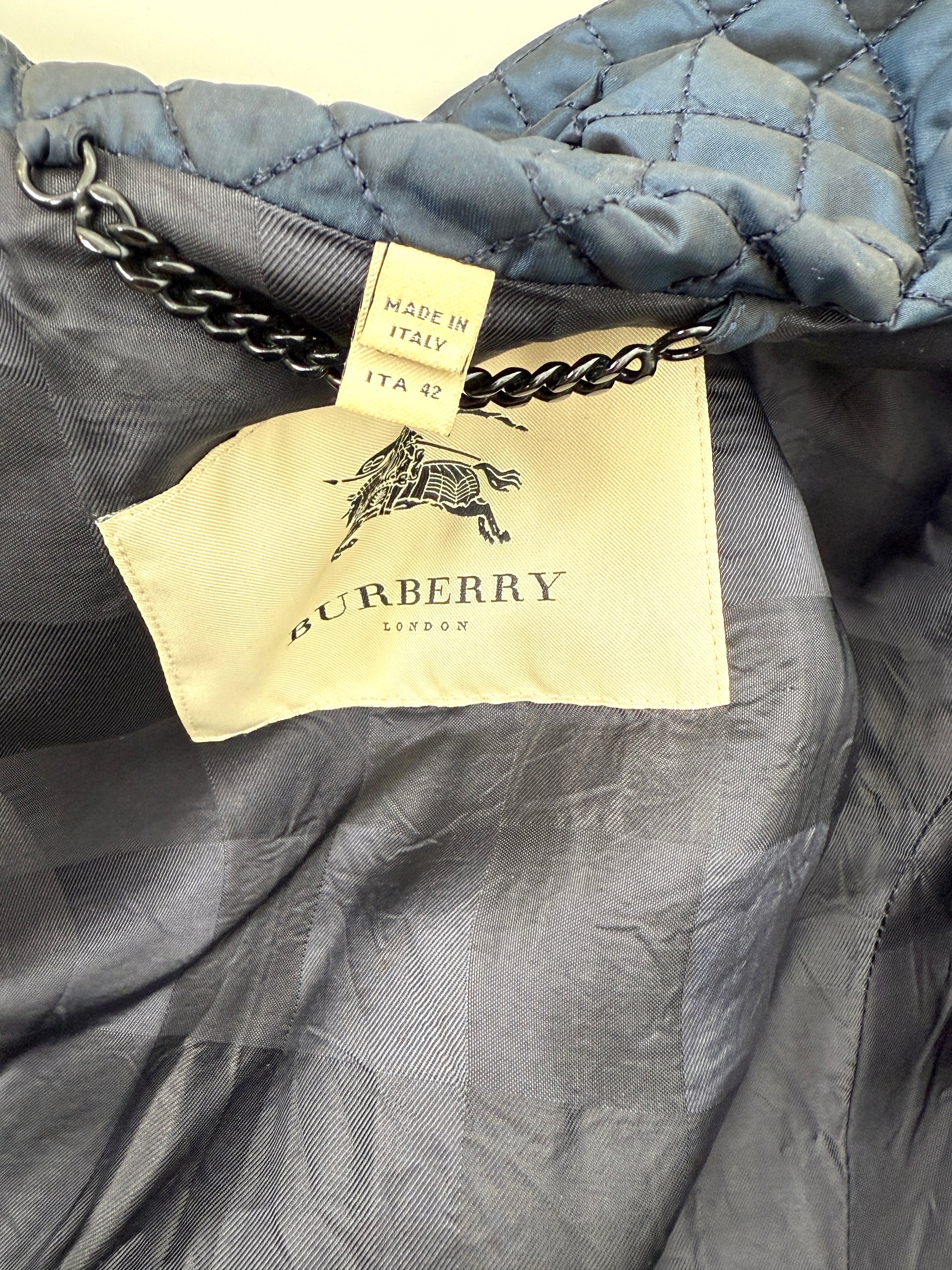 Burberry London Navy Blue Collared Quilted Jacket 42 8