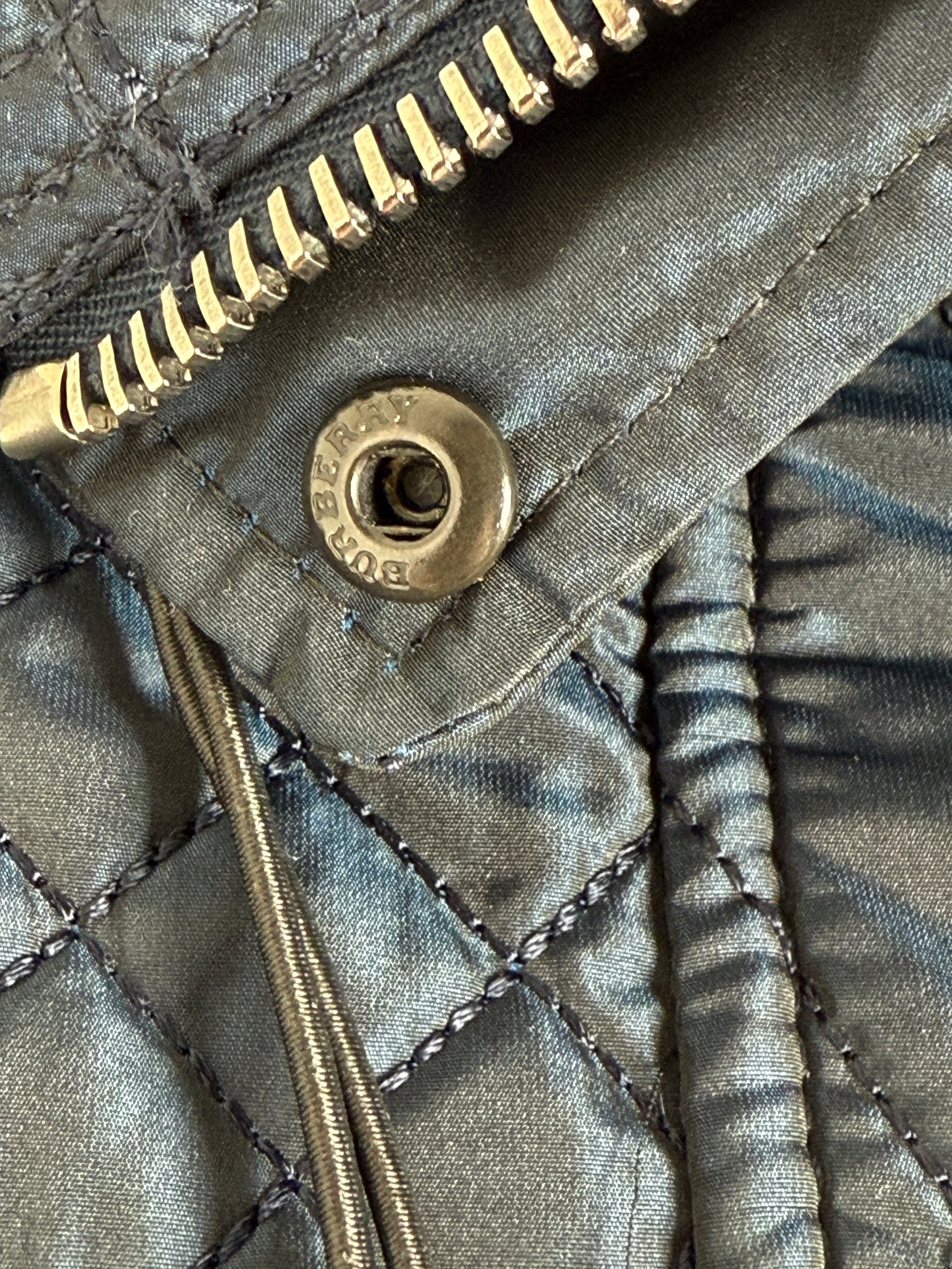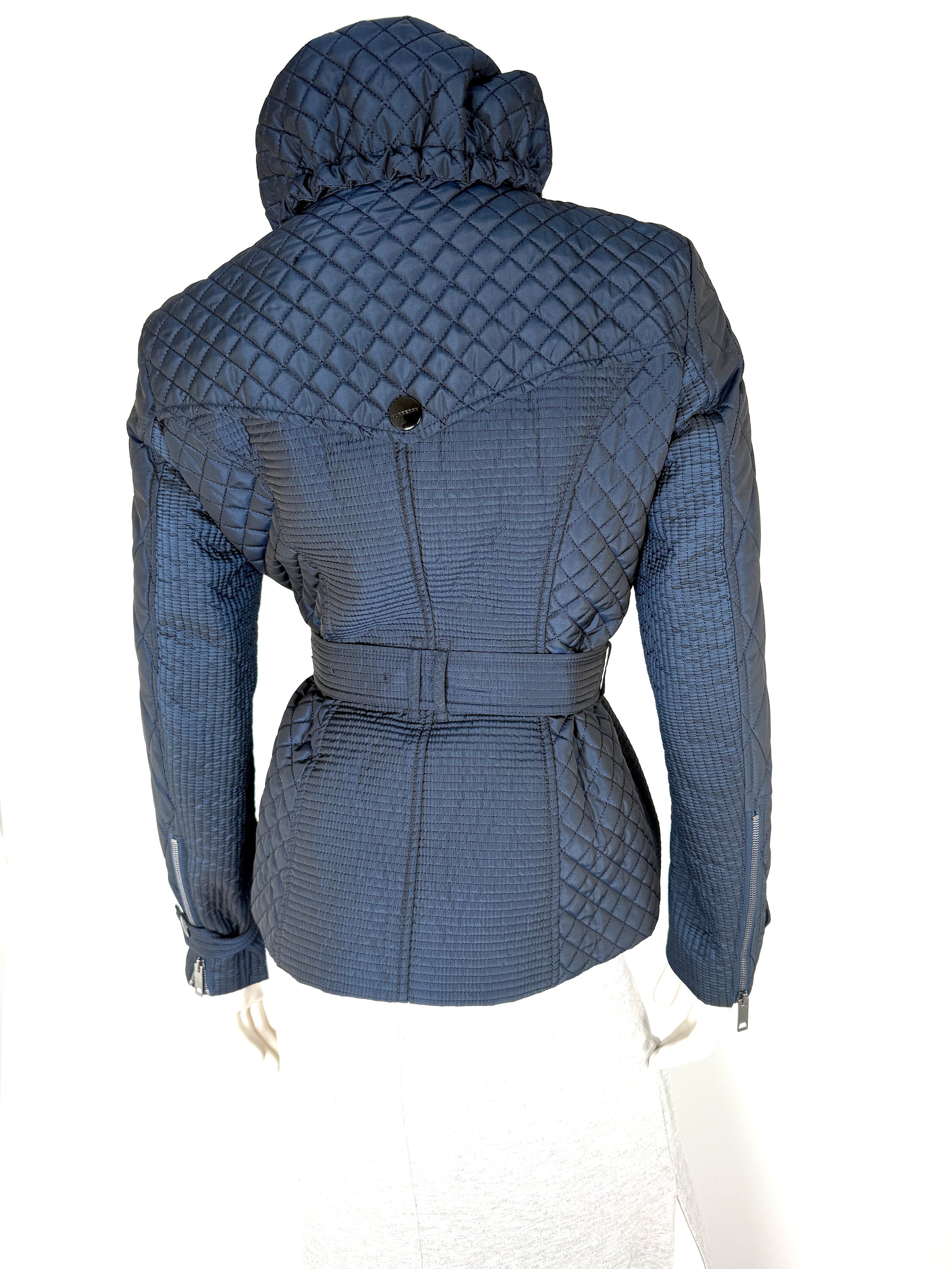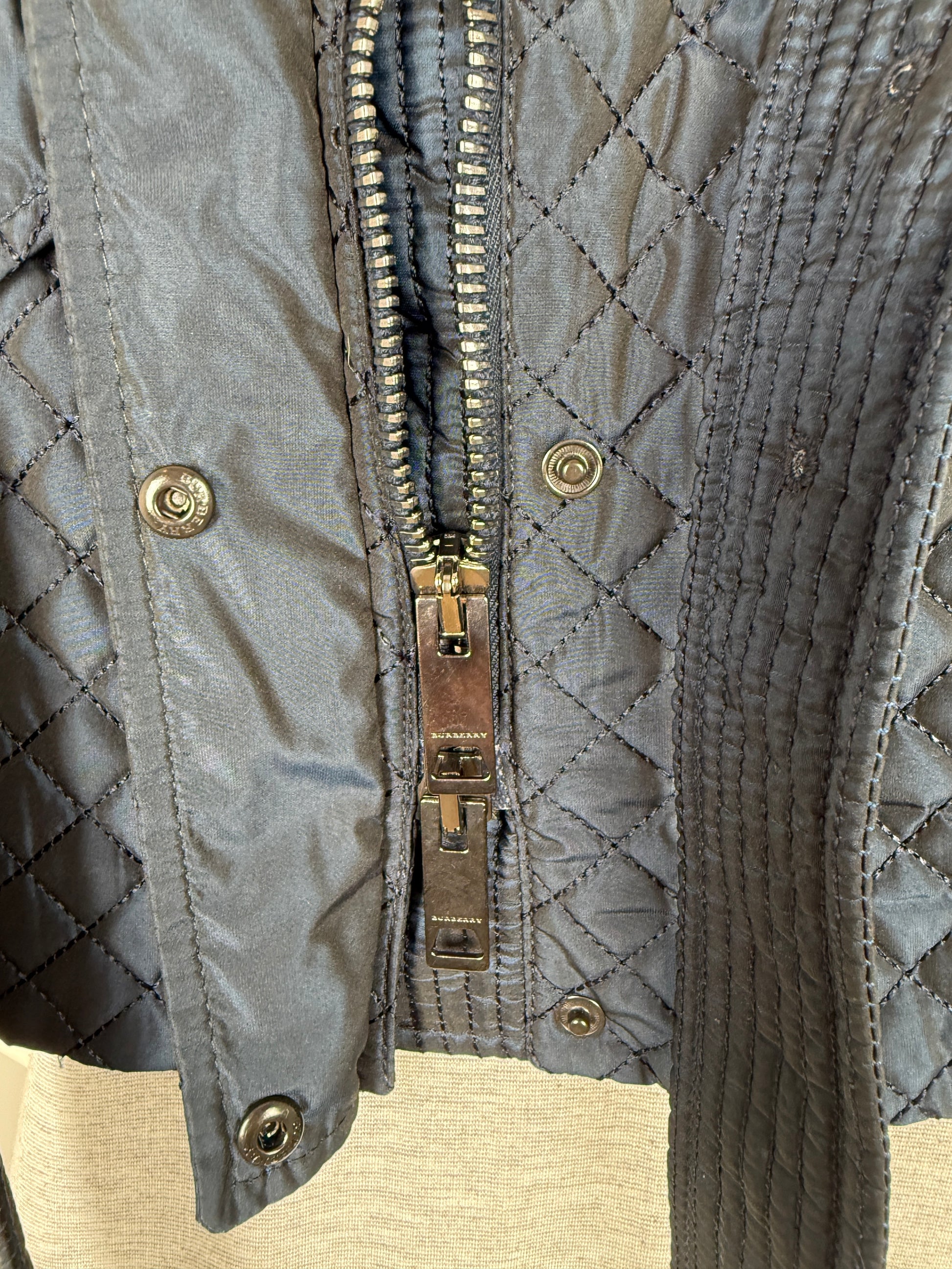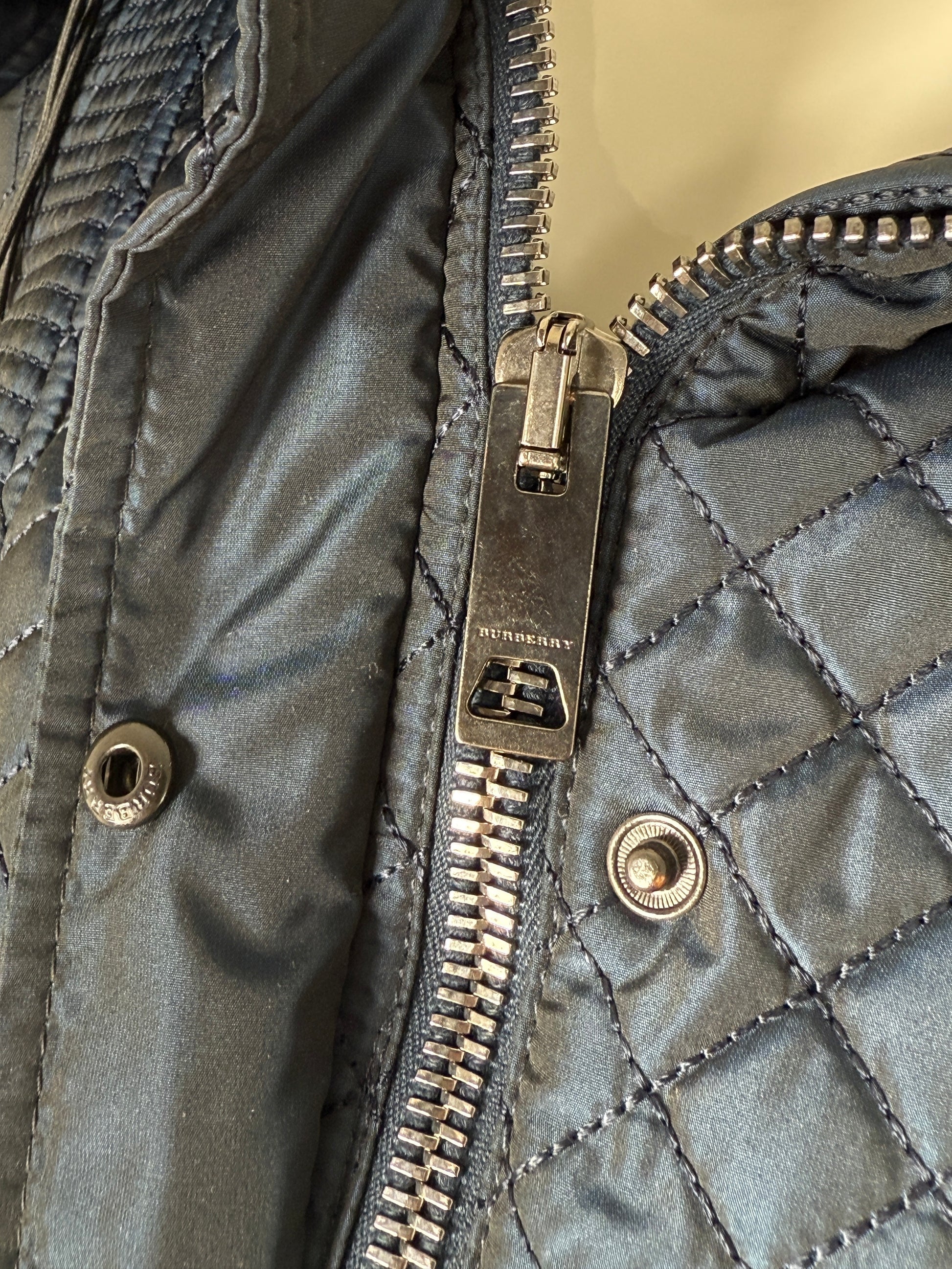 Burberry London Navy Blue Collared Quilted Jacket 42 8