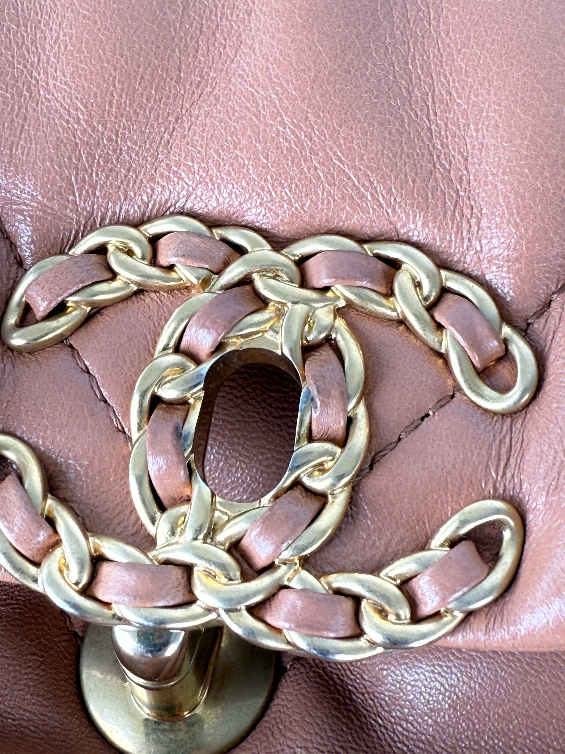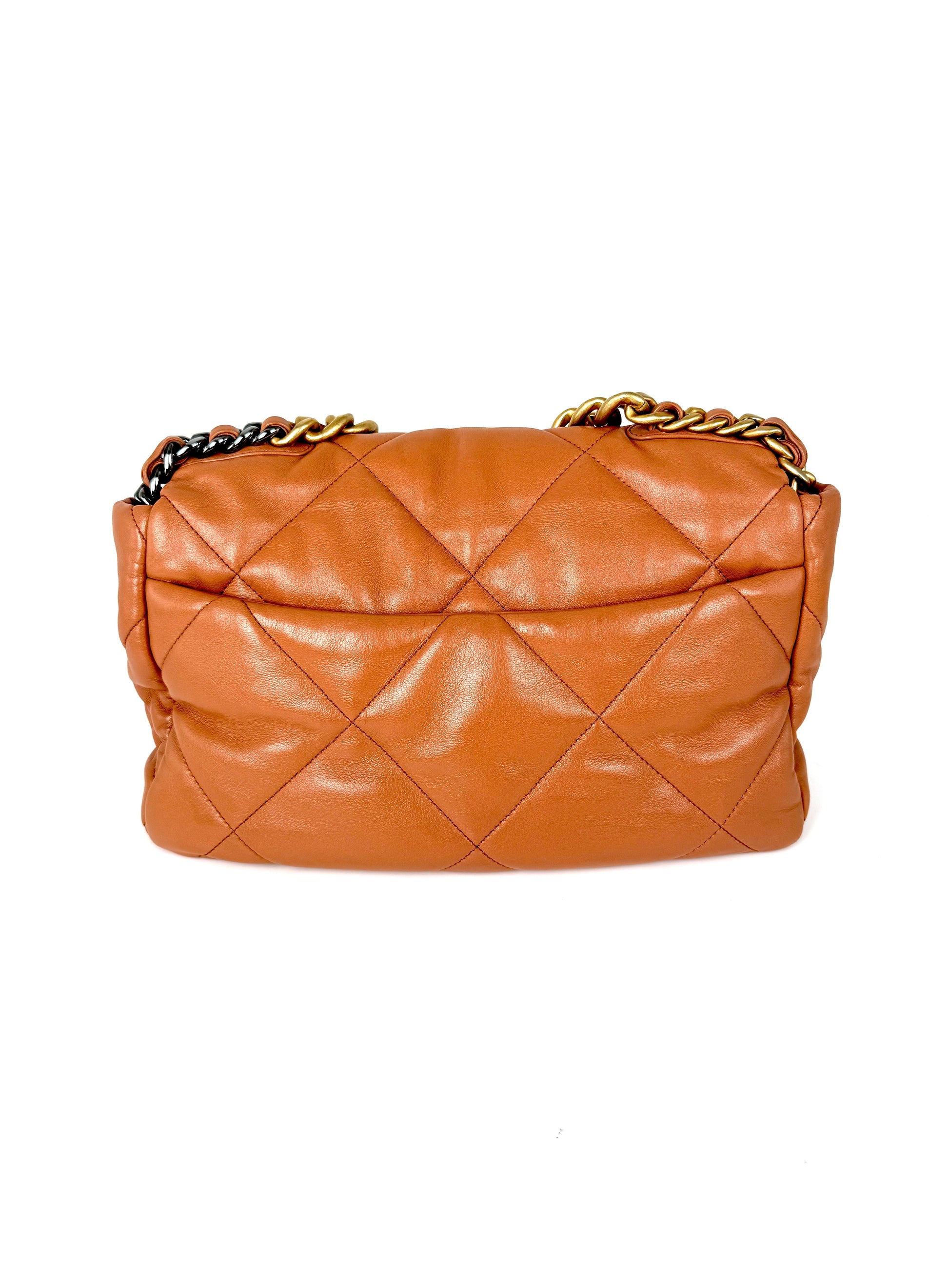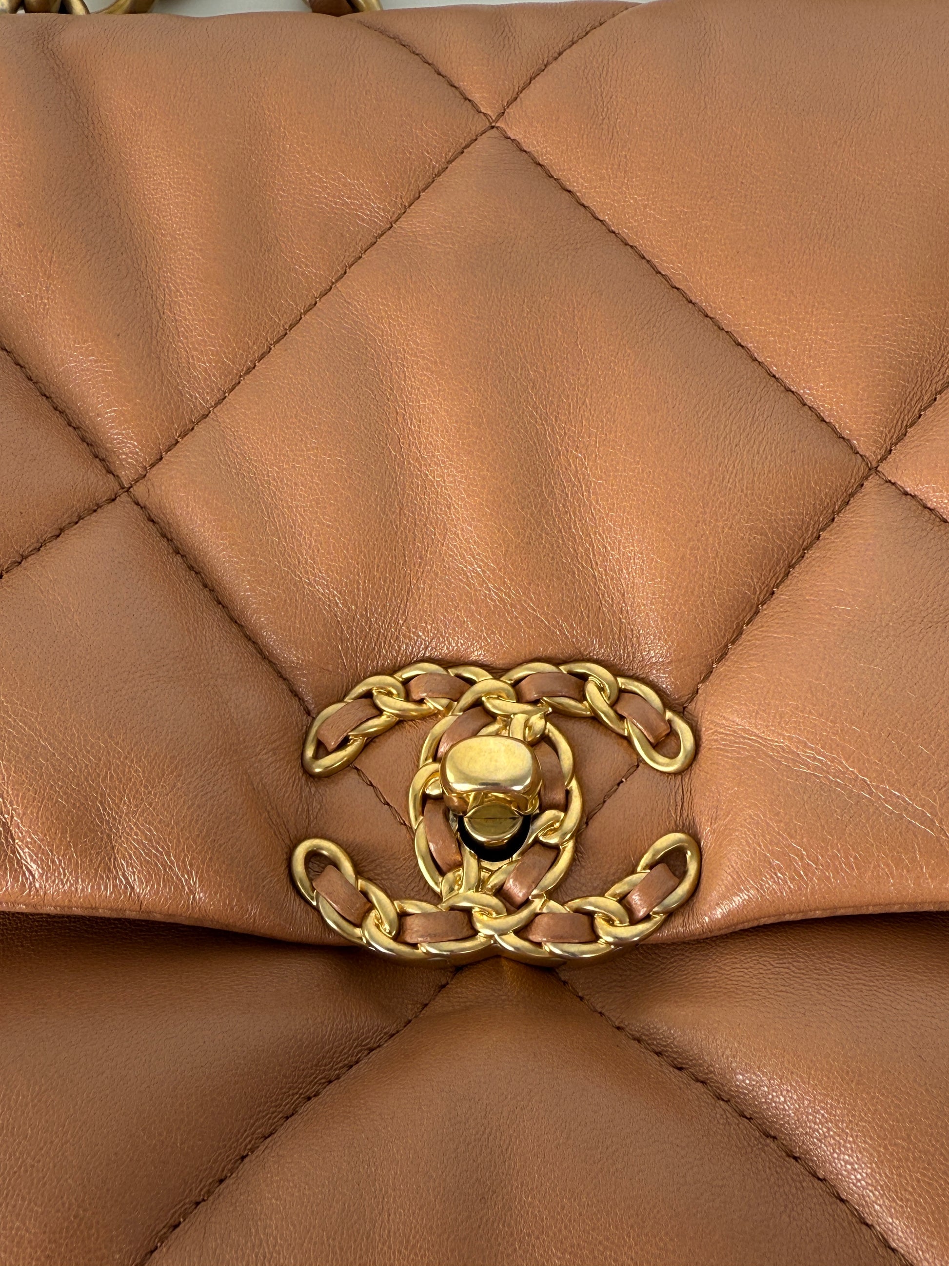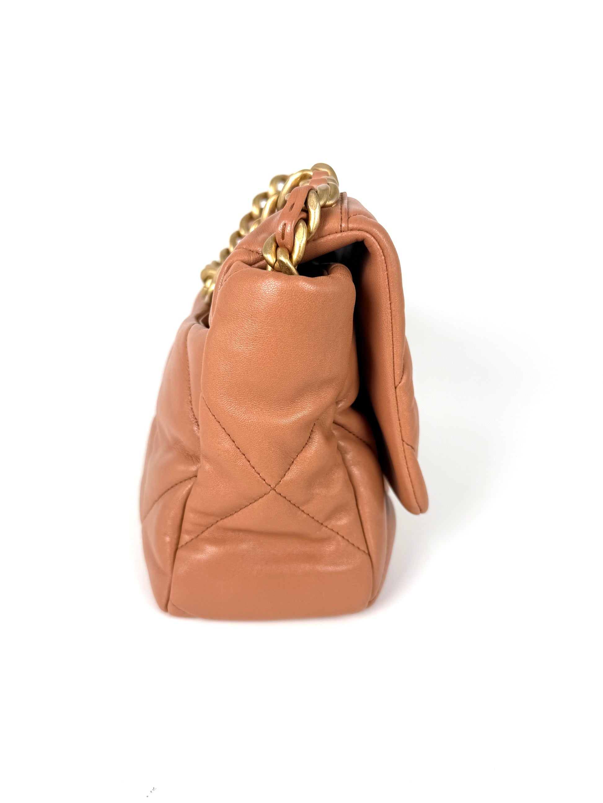 CHANEL 19 2021 Large Brown Quilted Gold Hardware Flap Bag