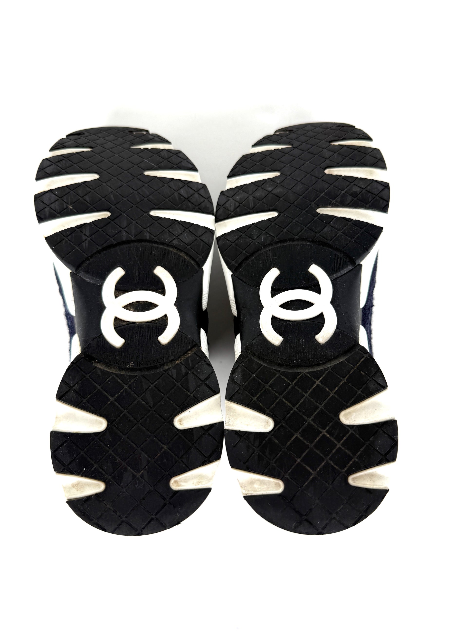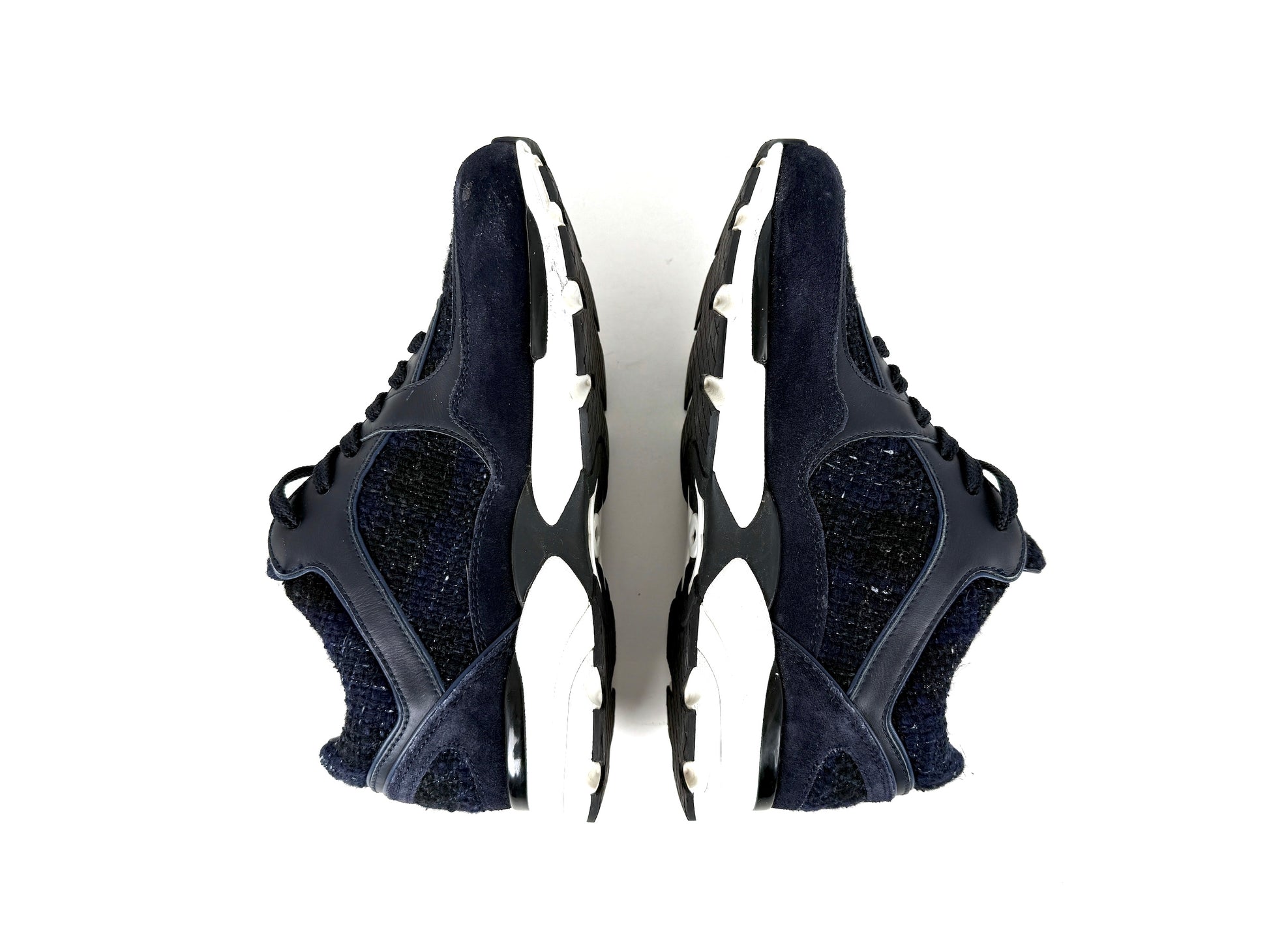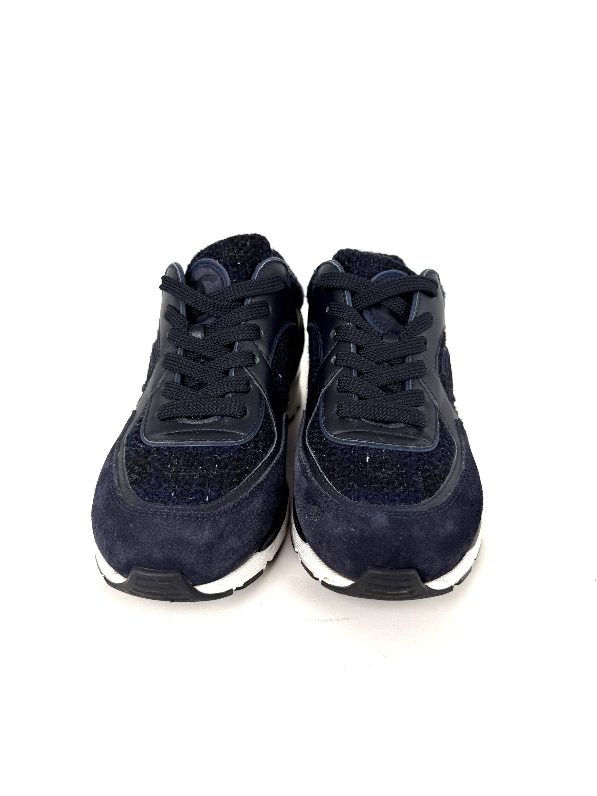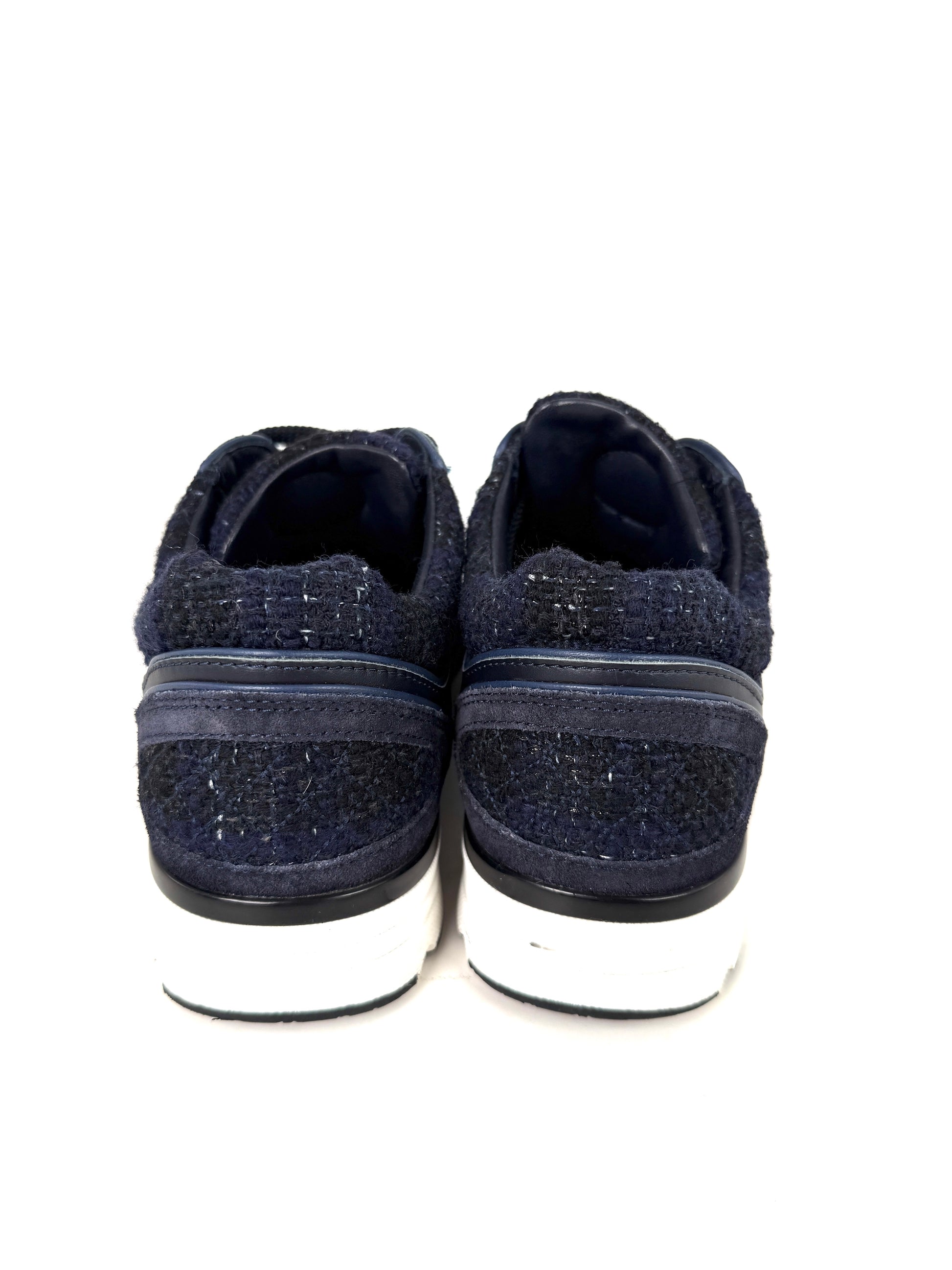 CHANEL 24A Navy Blue Black Tweed Sneakers 37, 6