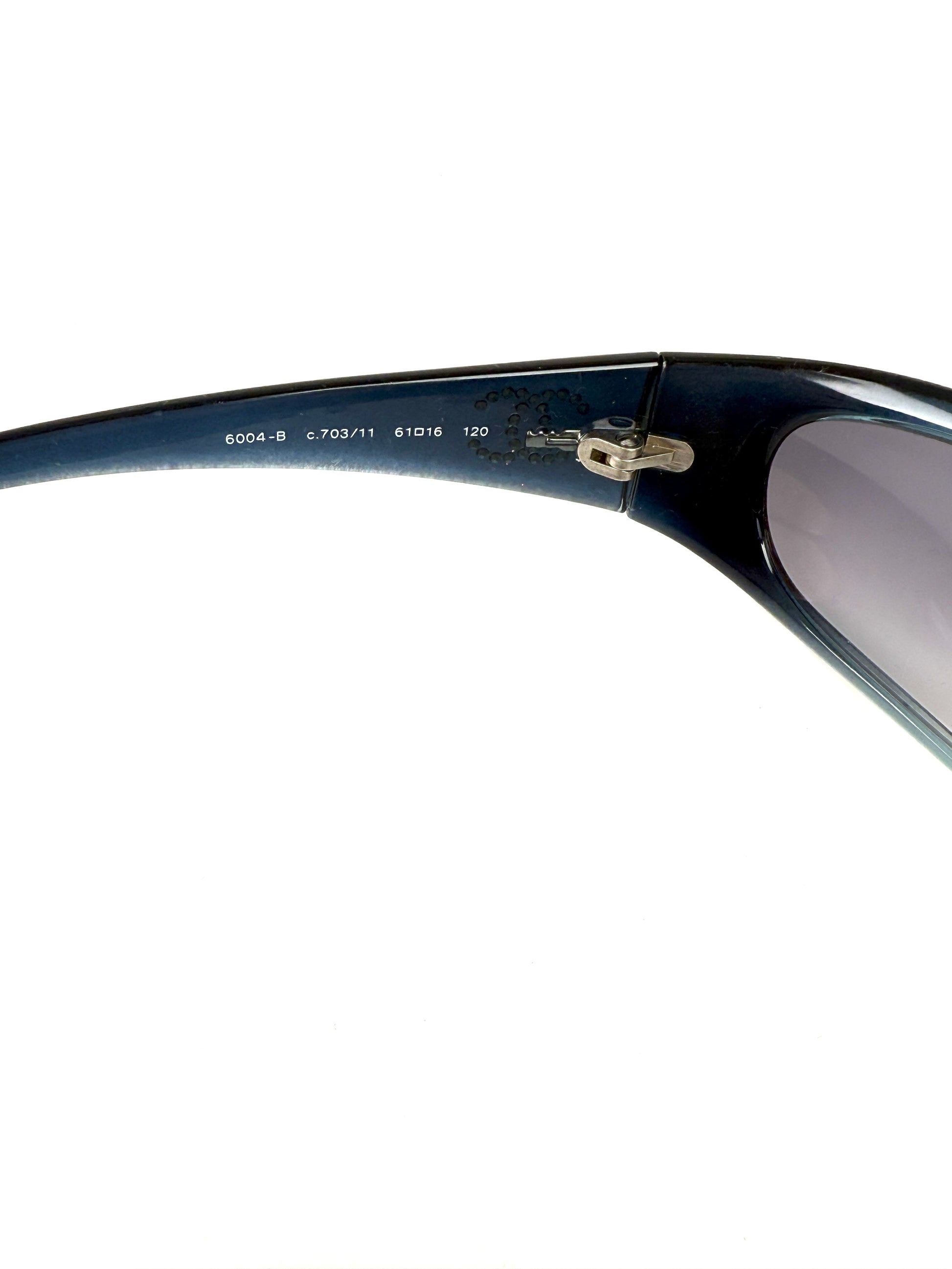 CHANEL 6004 Blue Acetate Wrap Around CC Crystal Sunglasses