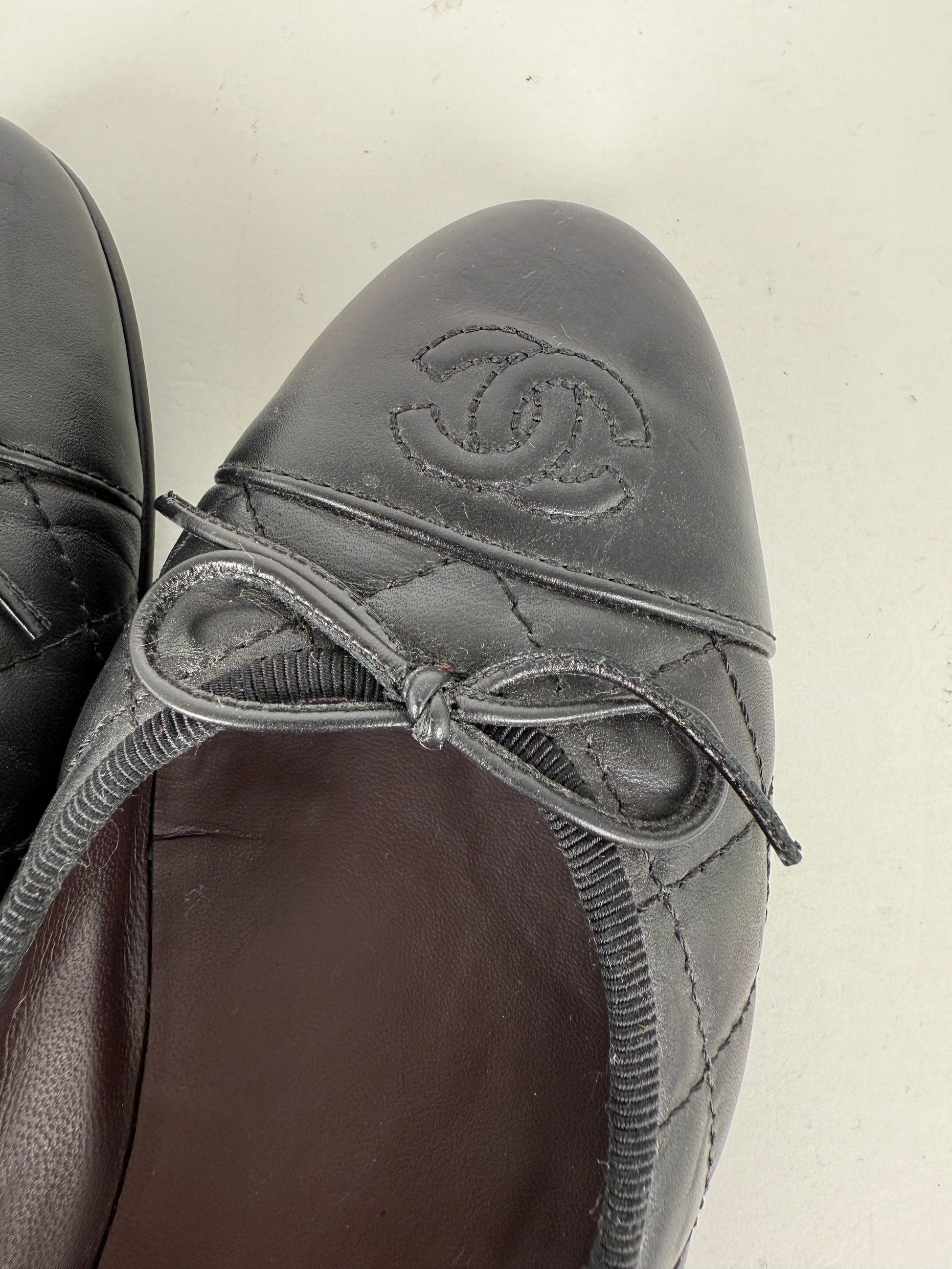 CHANEL Cap Toe Classic Black CC Logo Flats 38.5 8