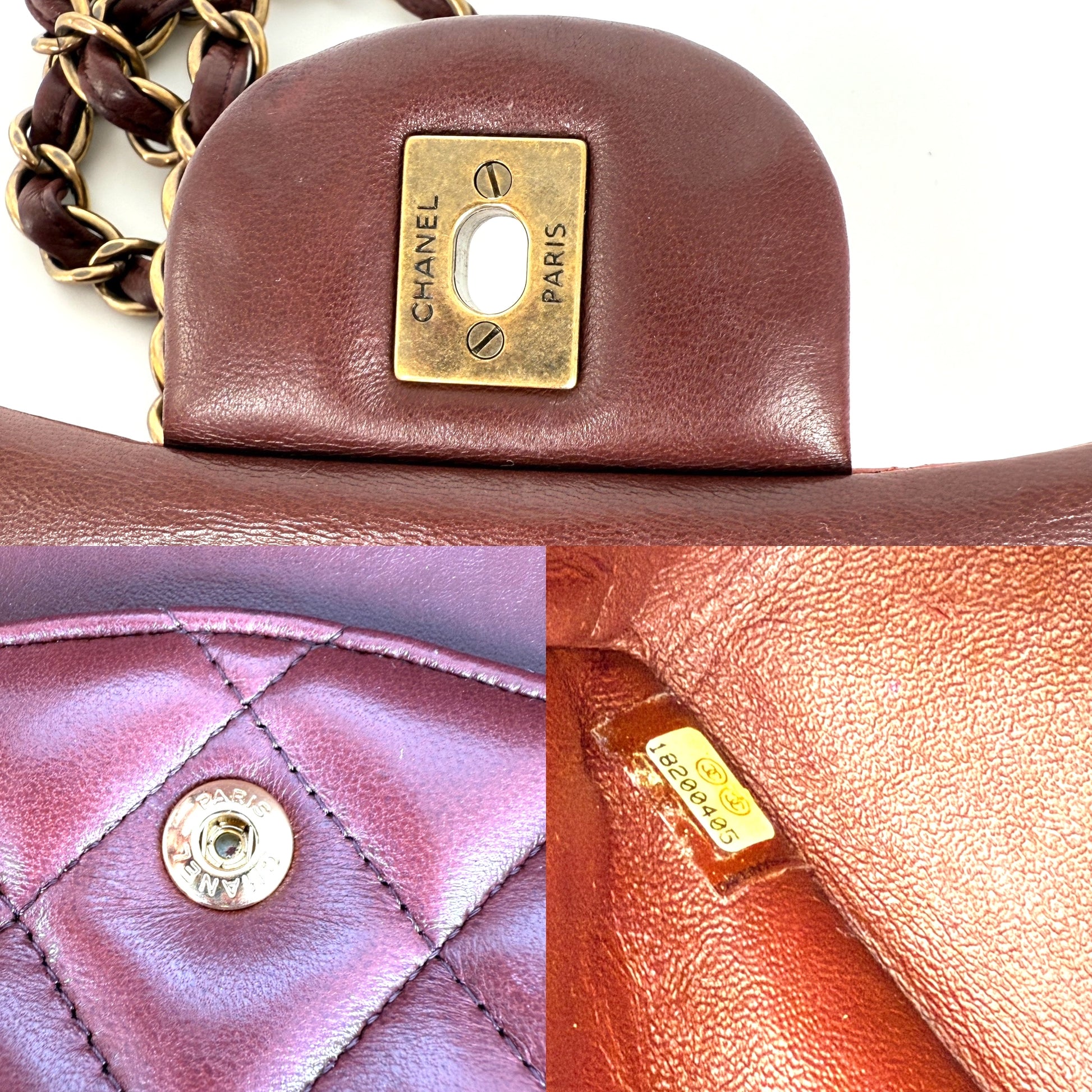 CHANEL Classic Jumbo Quilted Lambskin Tri-Color Burgundy Yellow Red Double Flap Shoulder Crossbody Bag