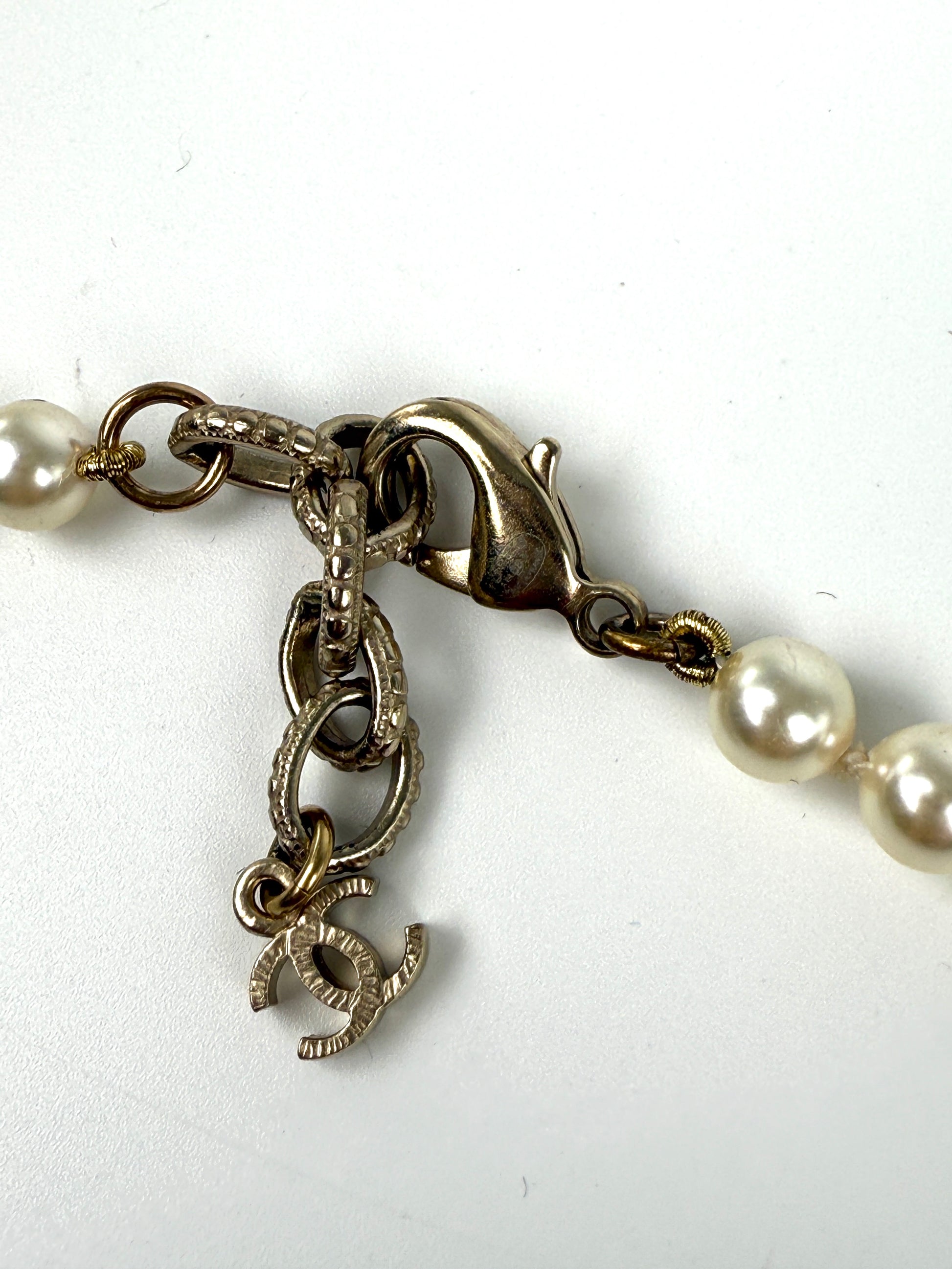 CHANEL Faux Pearl Graduated Long CC 2014 Strass Station Necklace
