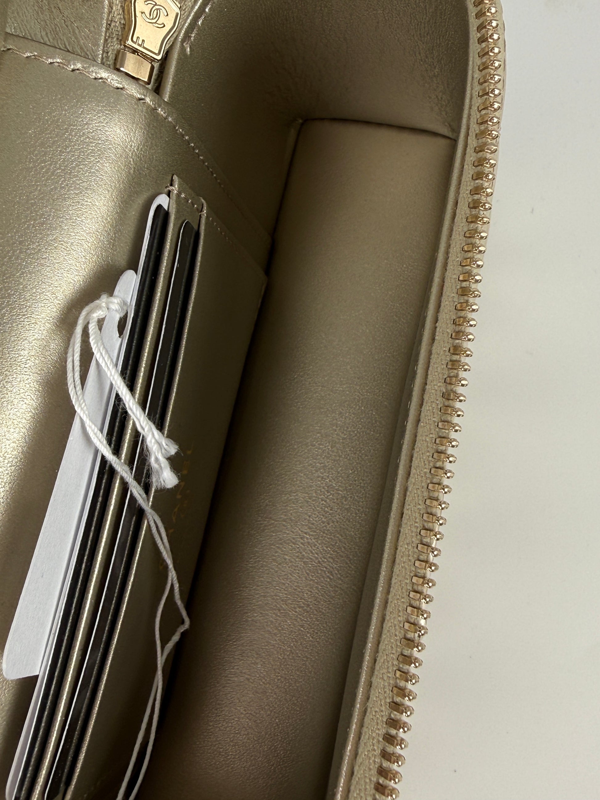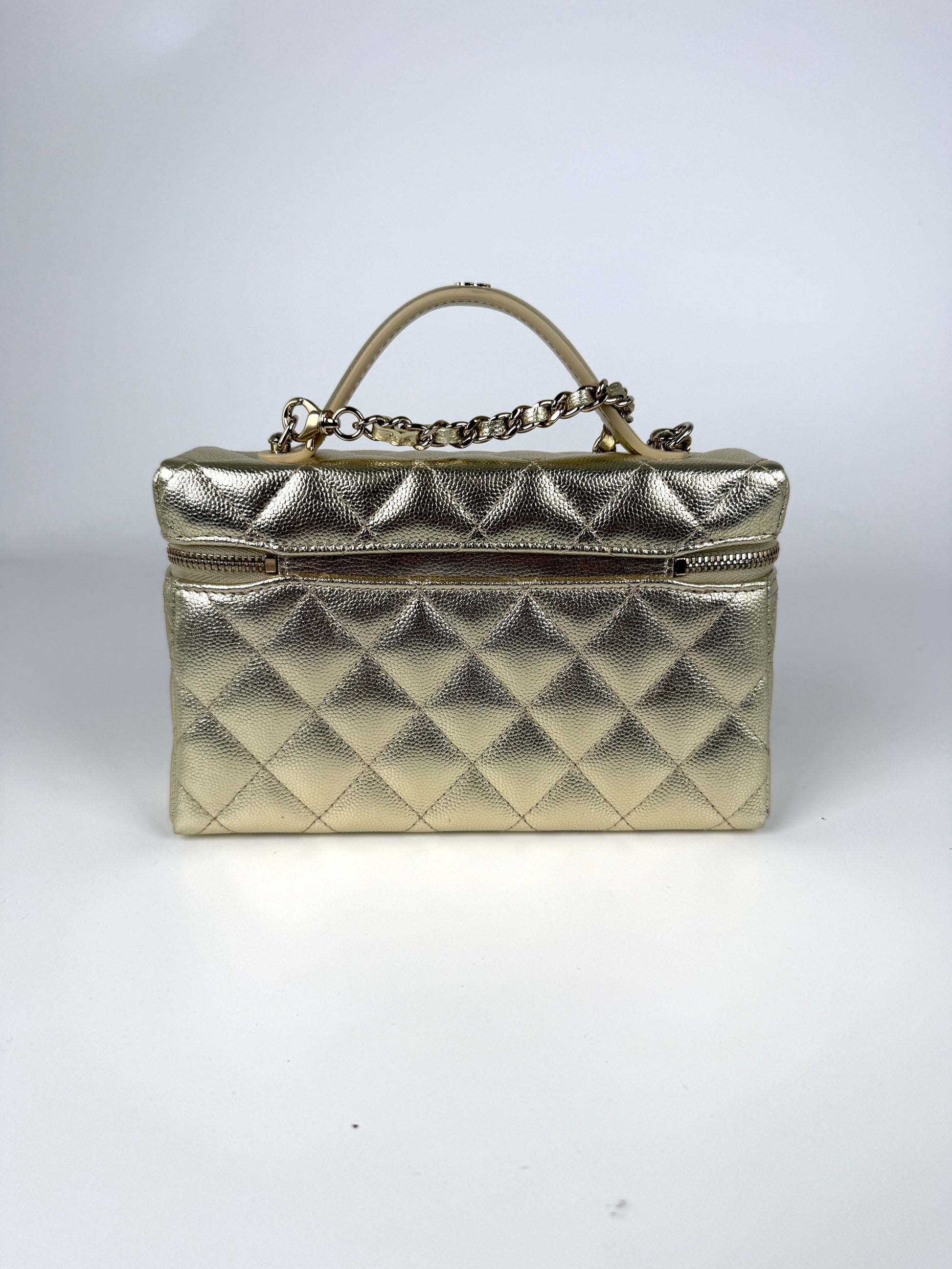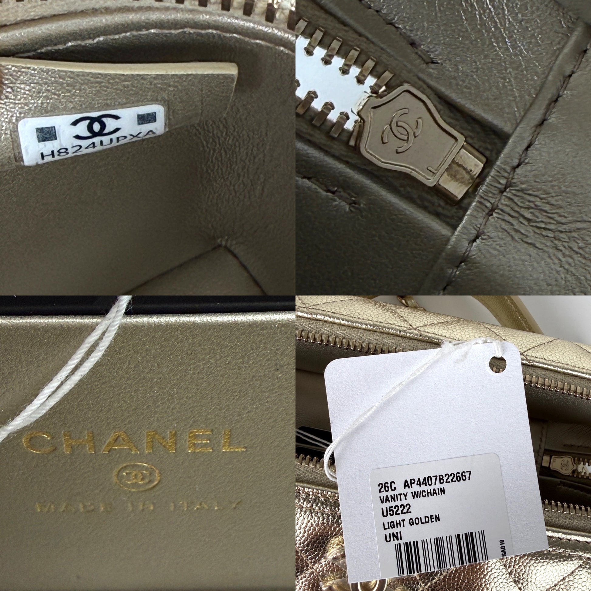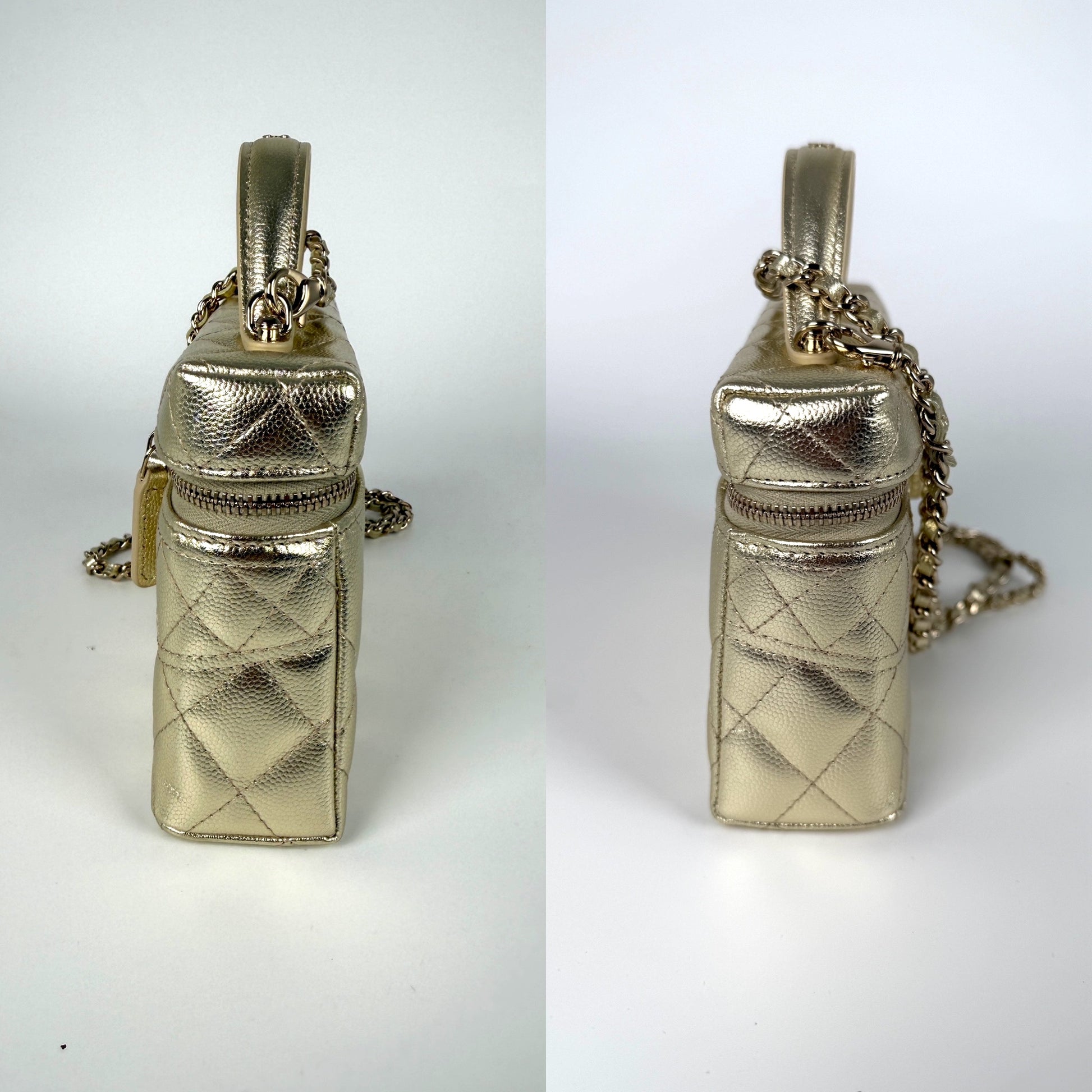 CHANEL Long Classic Vanity Light Gold Caviar Quilted Zip Top Handle Crossbody with Chain Bag New