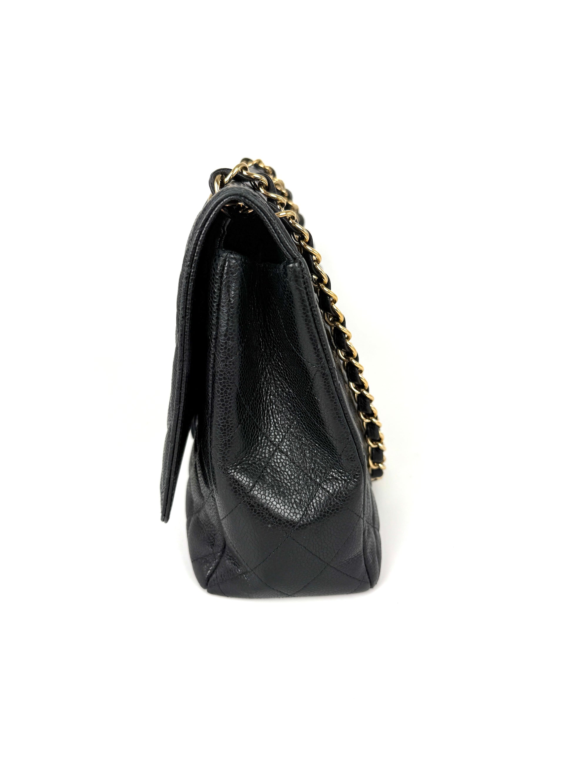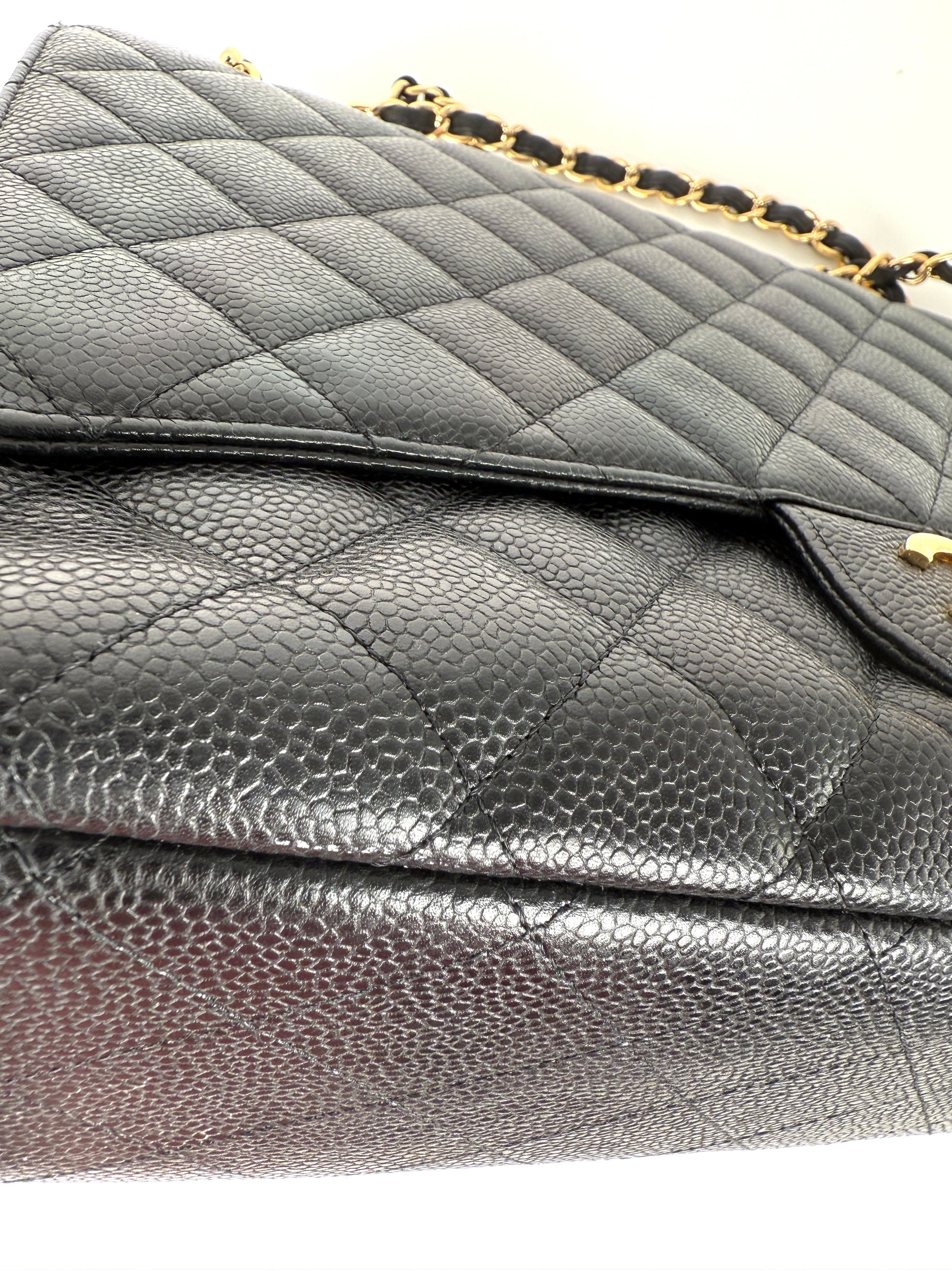 CHANEL Maxi Jumbo Classic Black Caviar Quilted Gold Hardware Single Flap Shoulder Crossbody Bag