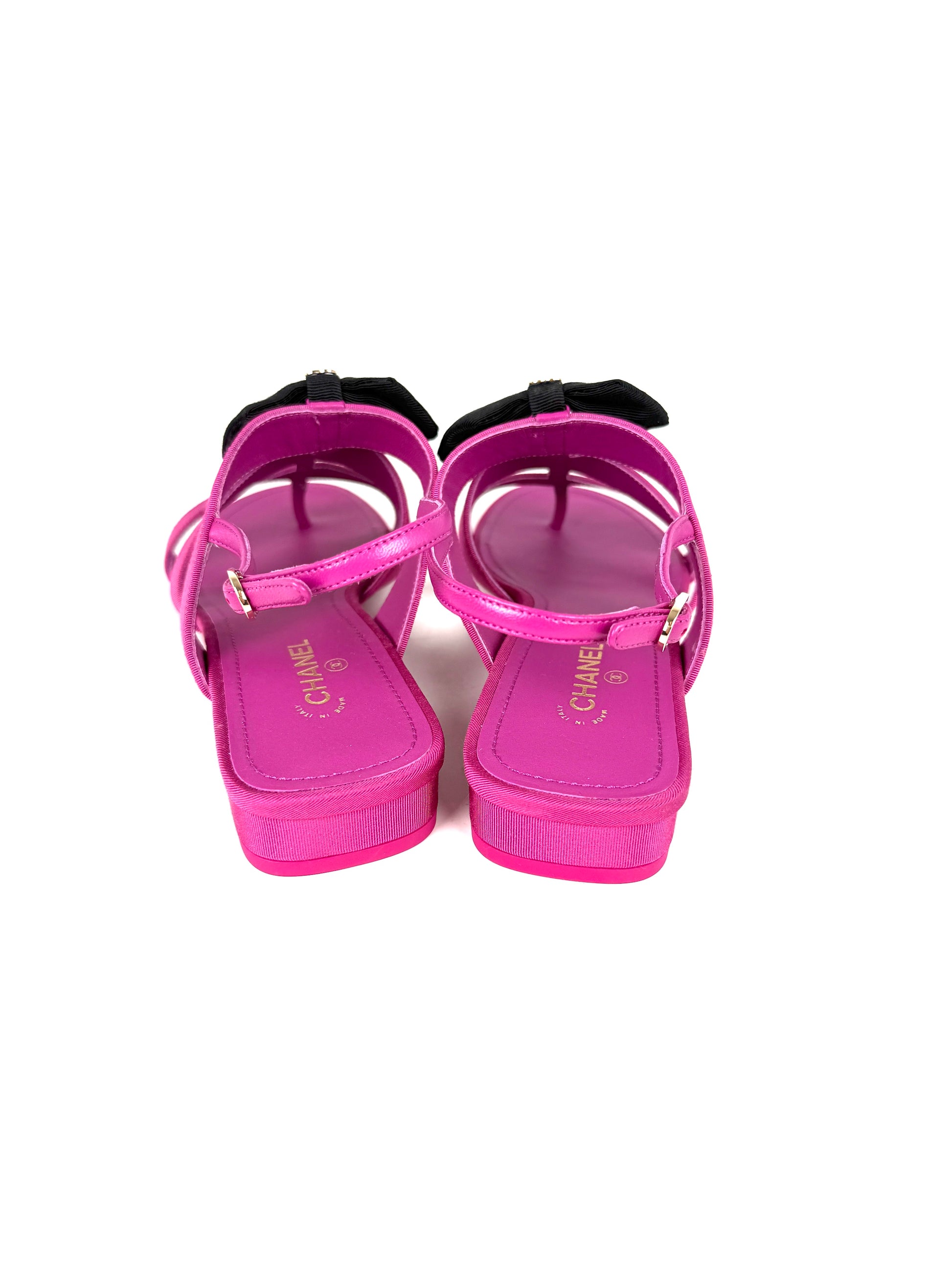 CHANEL Pink CC Bow Strappy Satin Leather Chain Gladiator Sandals 38, 7.5 New