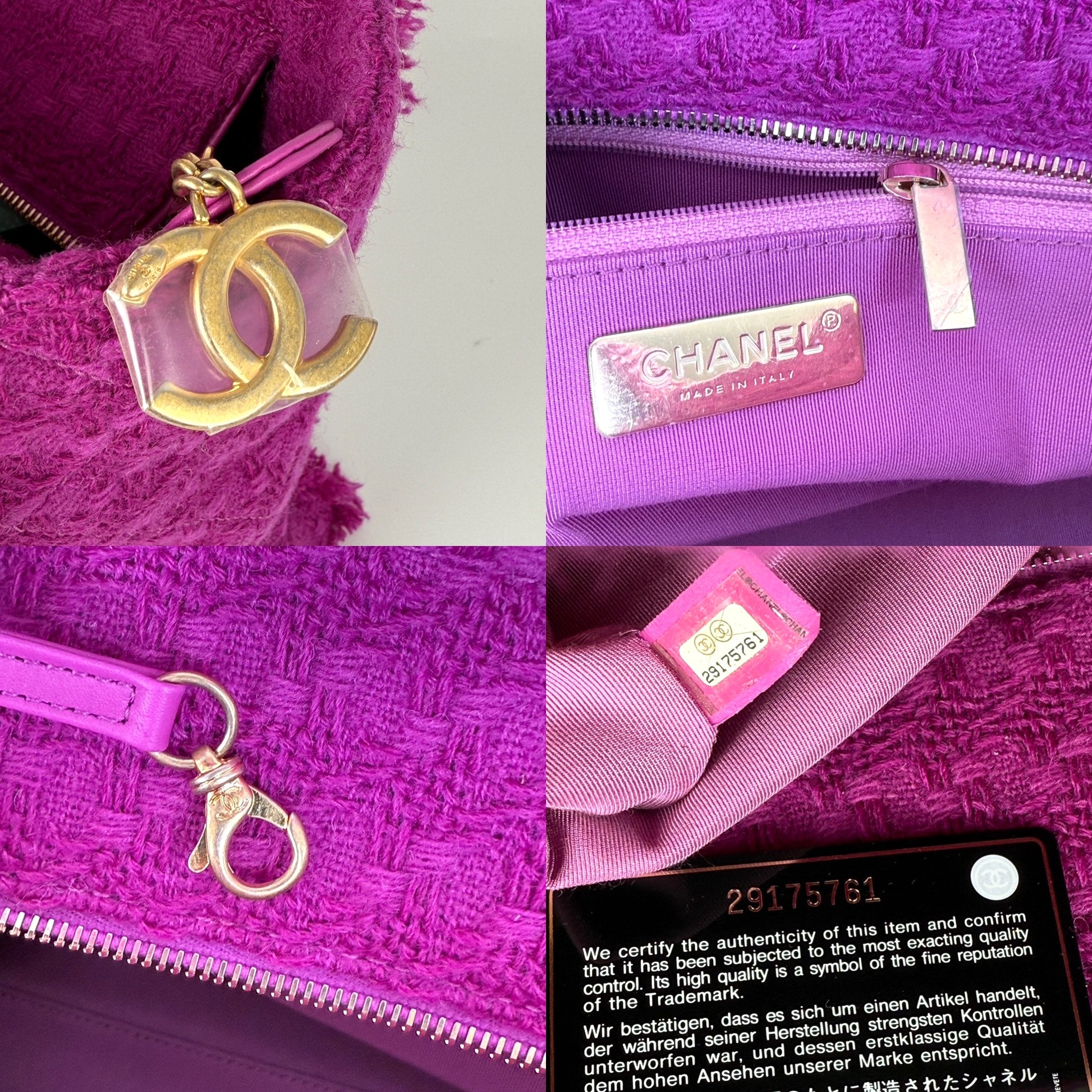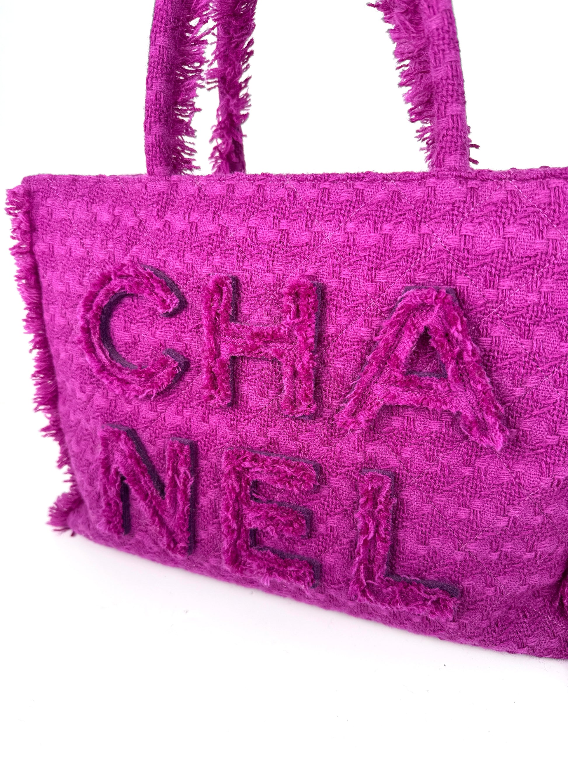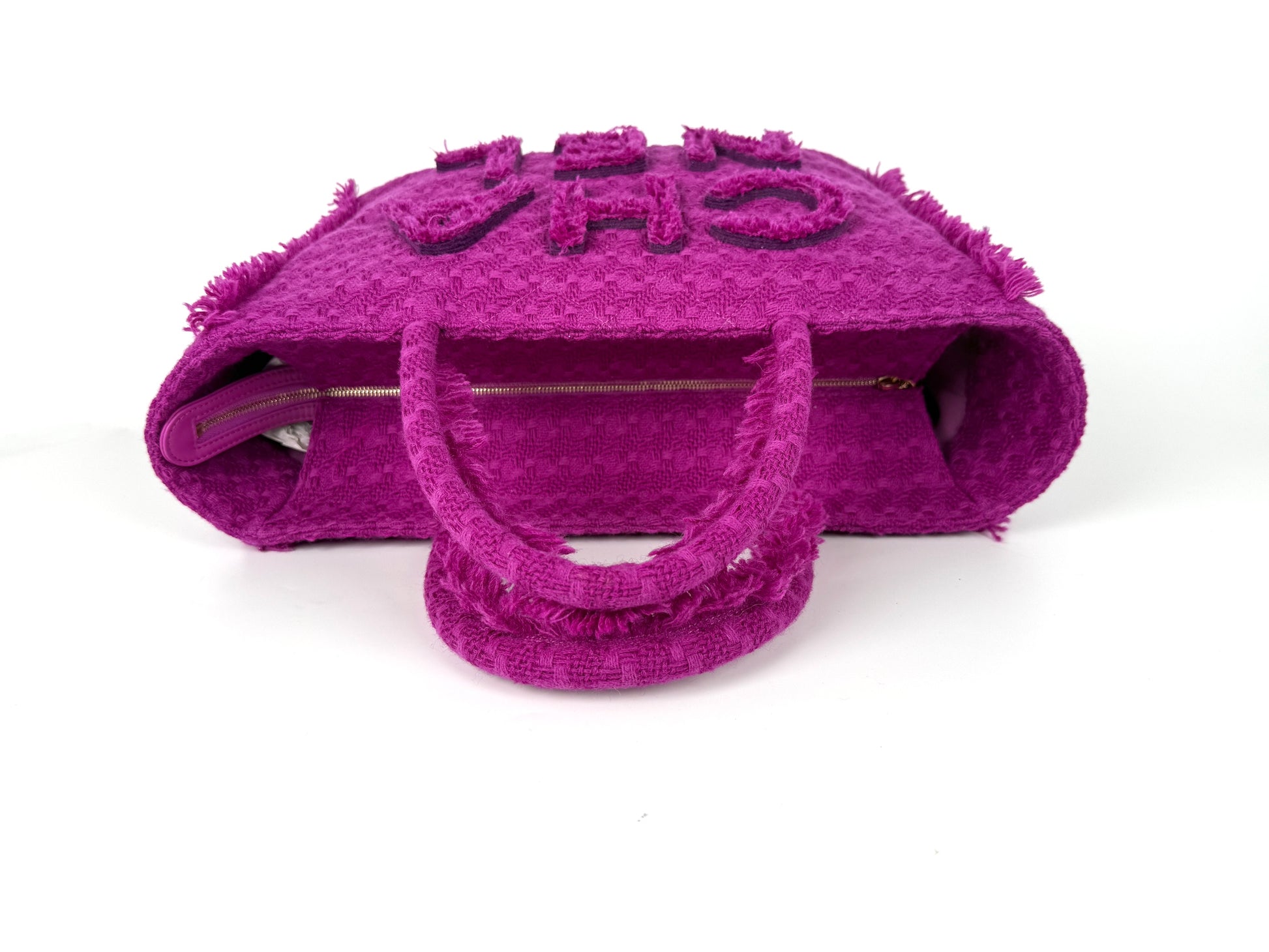 CHANEL Wool Tweed Giant Logo Pink Zip Shopping Tote