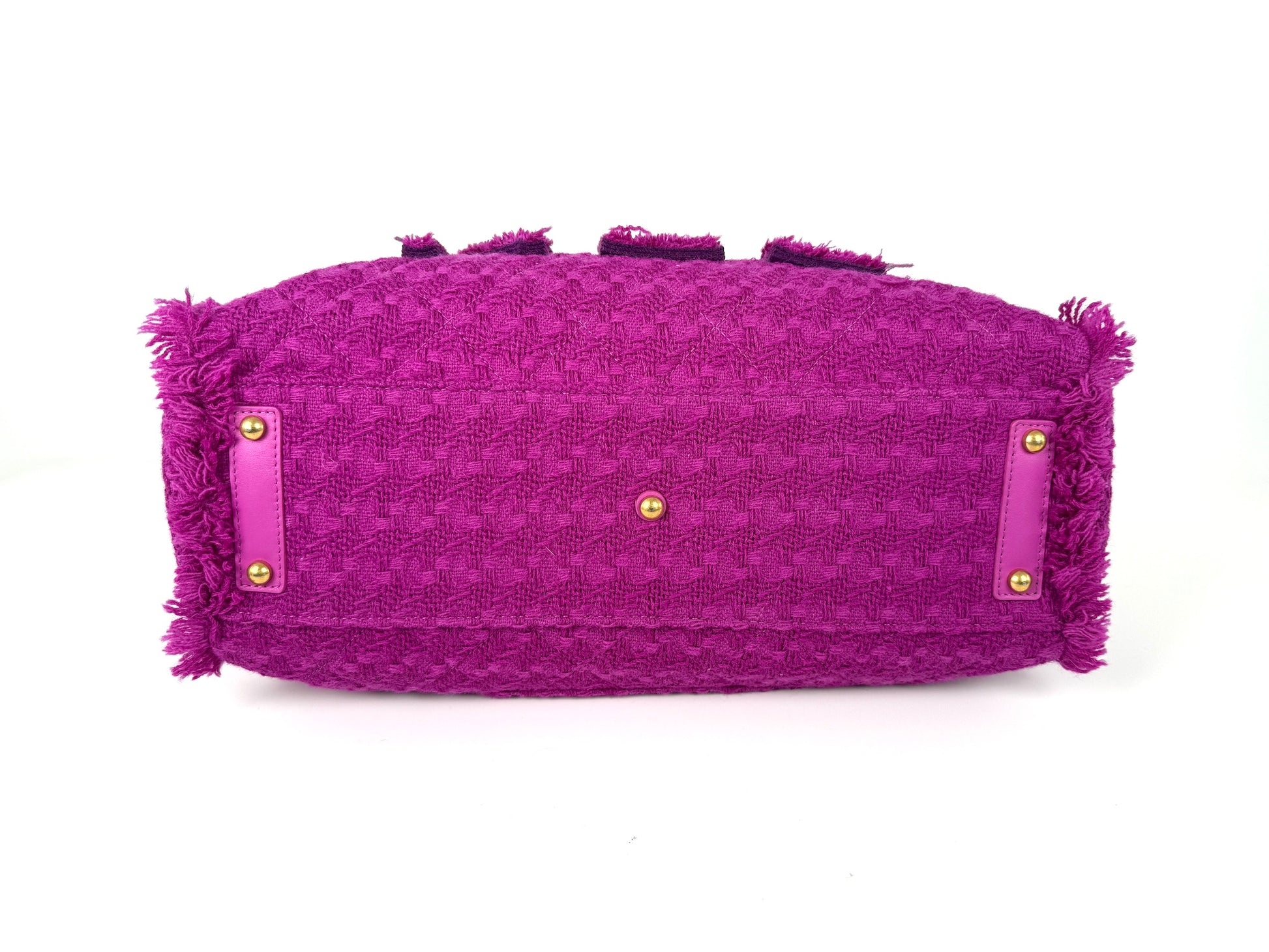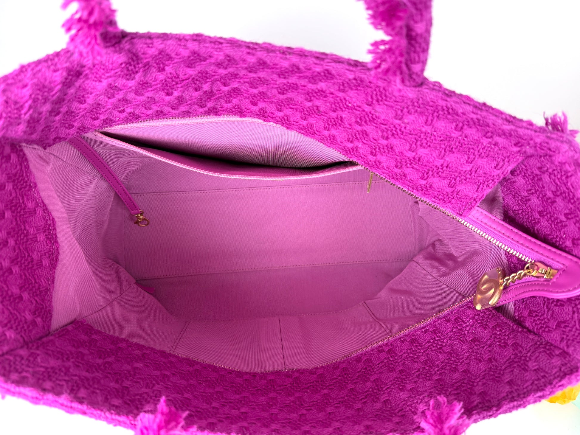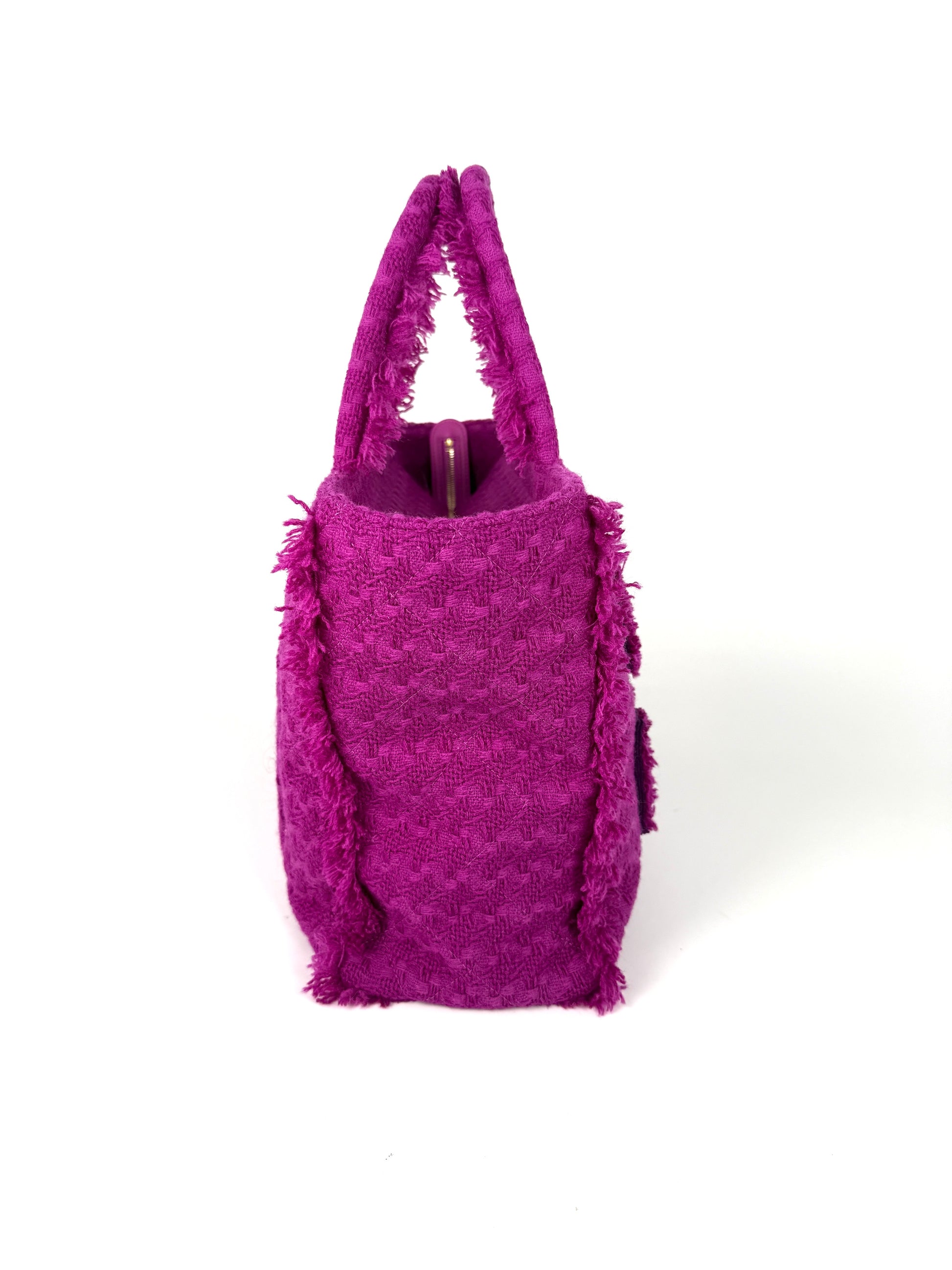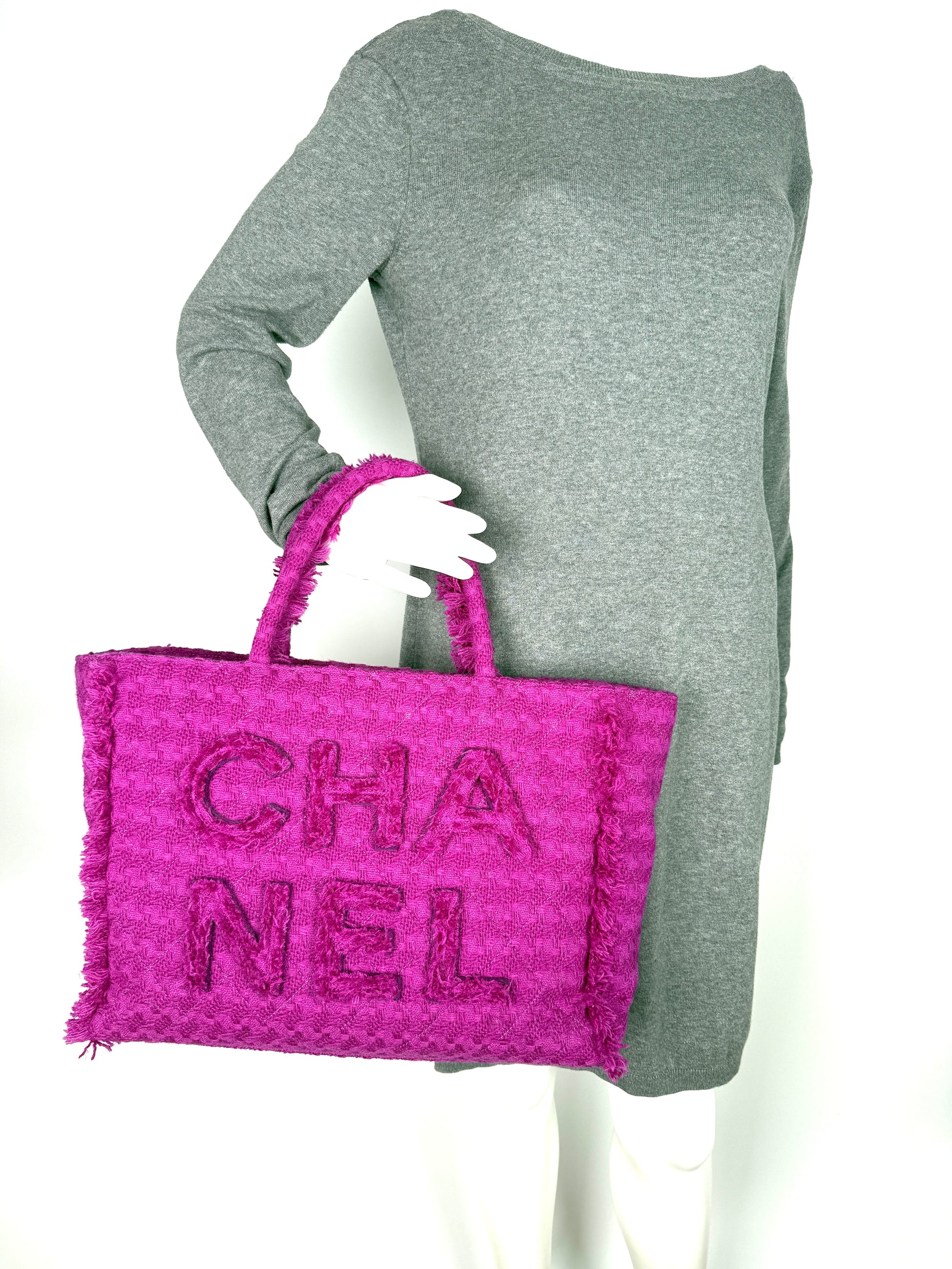 CHANEL Wool Tweed Giant Logo Pink Zip Shopping Tote