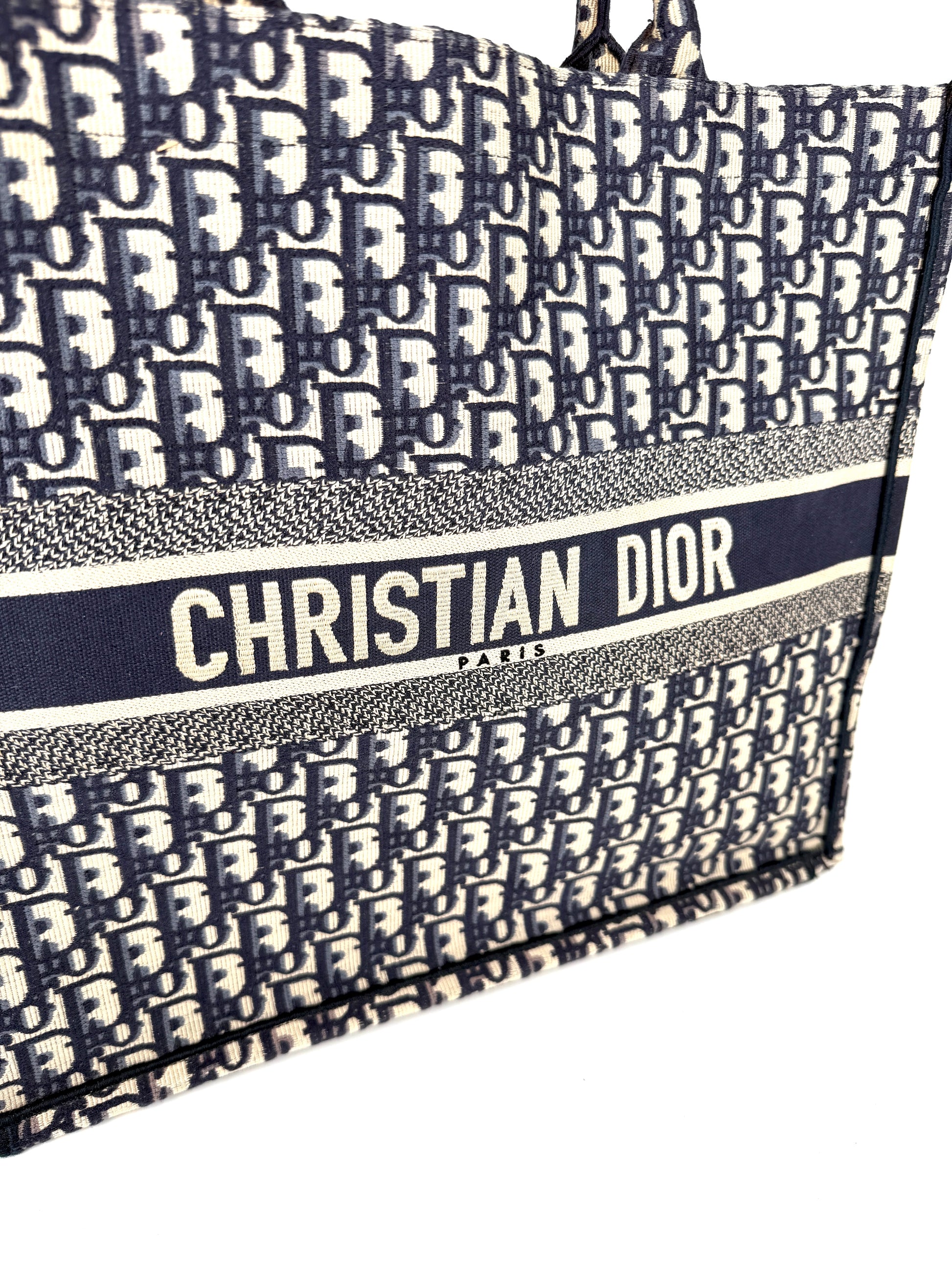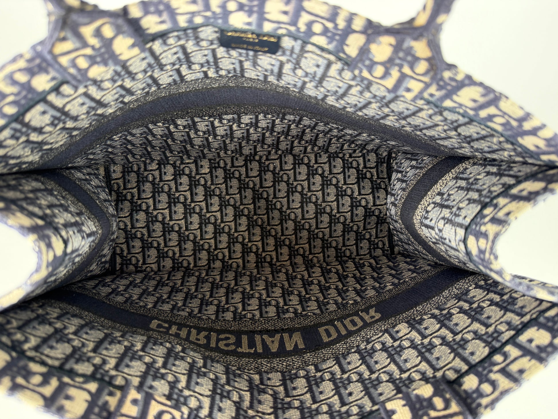 CHRISTIAN DIOR Oblique Jacquard Blue Ecru Large Book Tote Bag