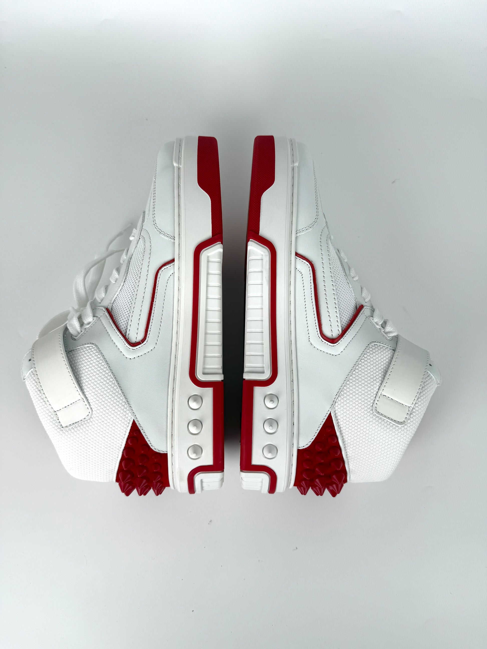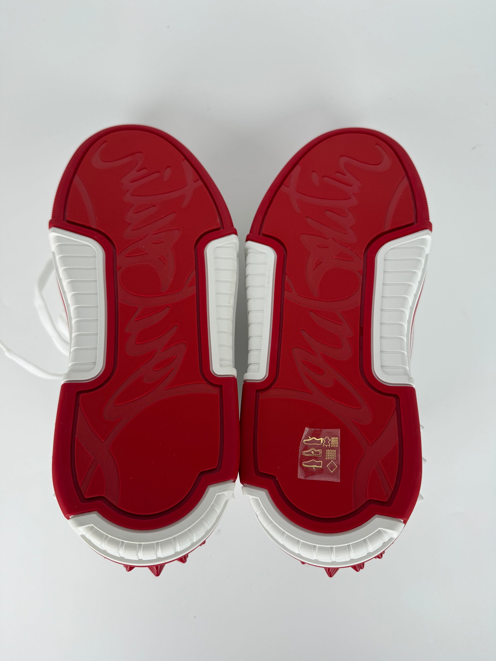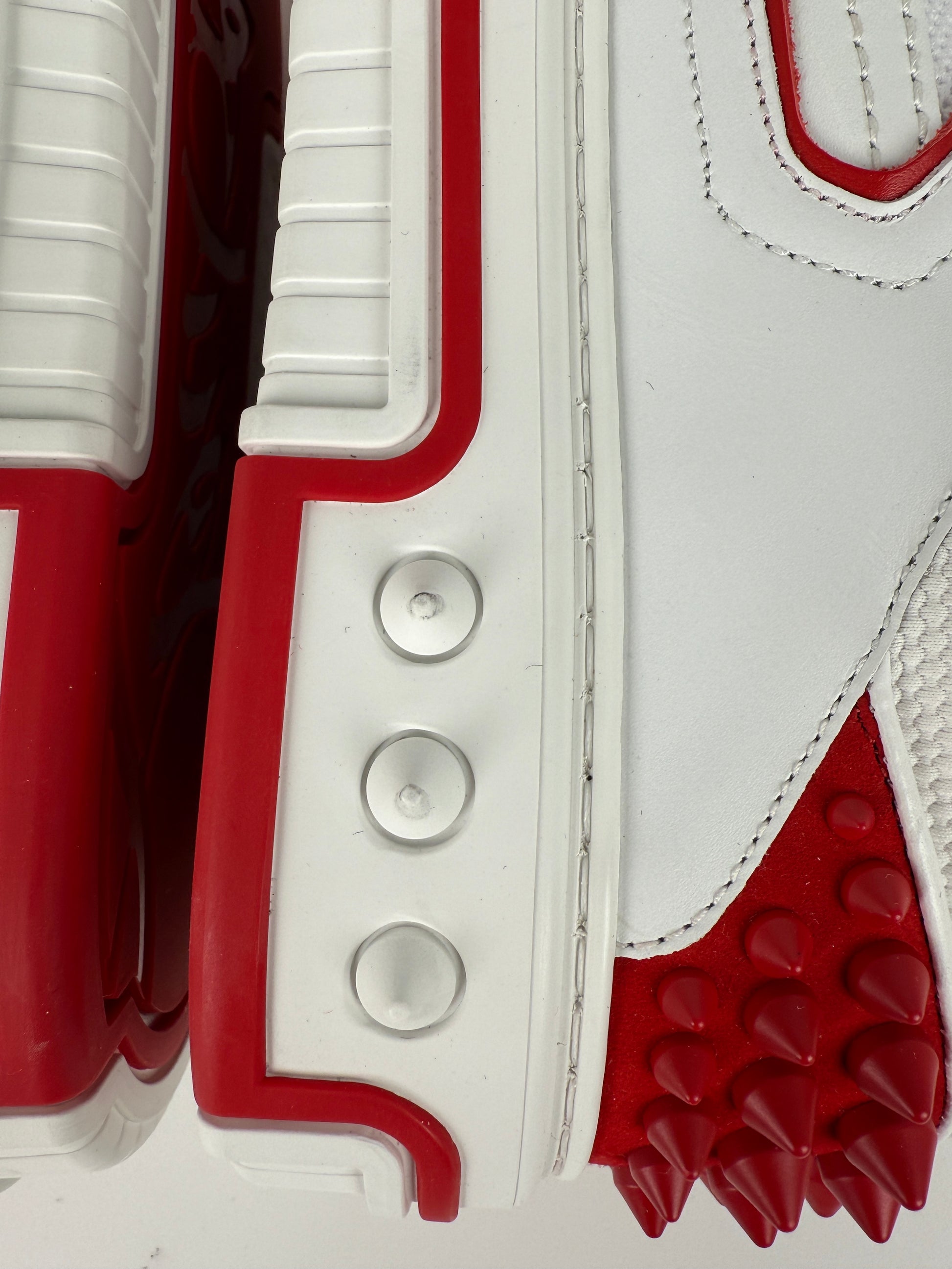 CHRISTIAN LOUBOUTIN Men's White Red Astroloubi Spike Mid Top Leather Sneakers 42, 9US NIB