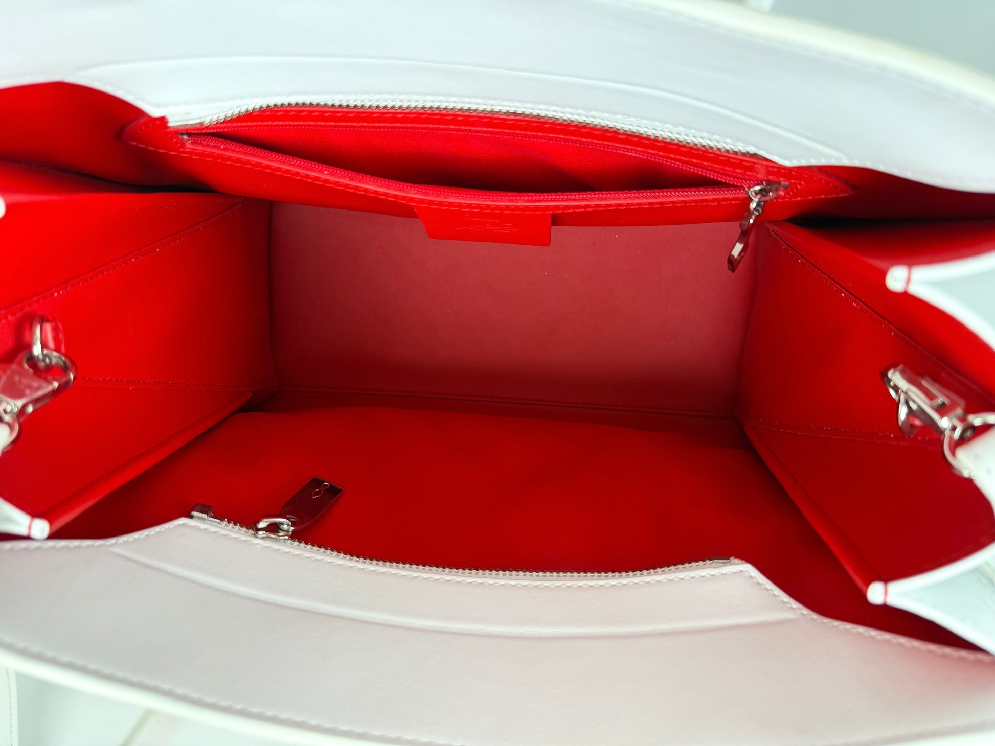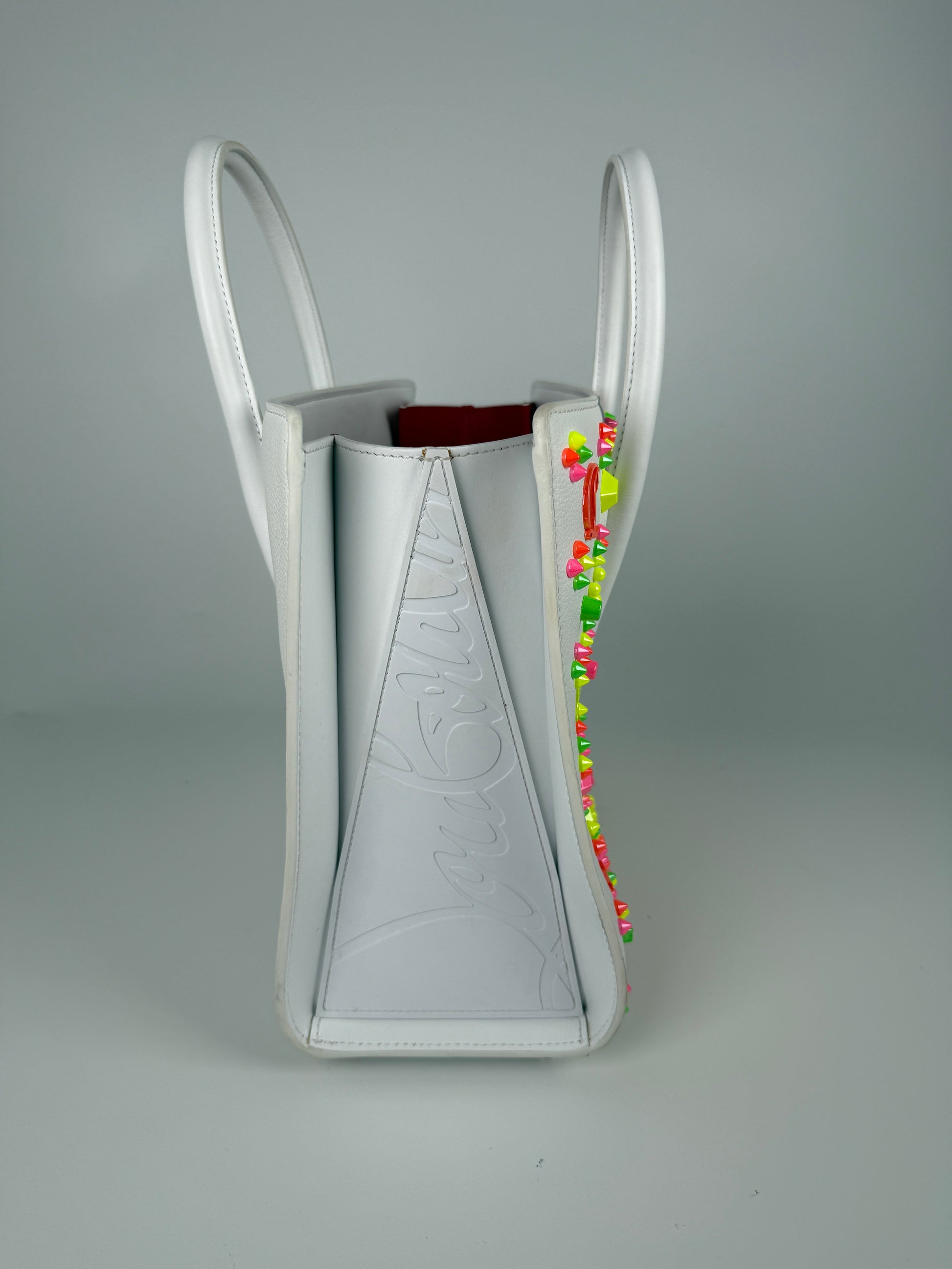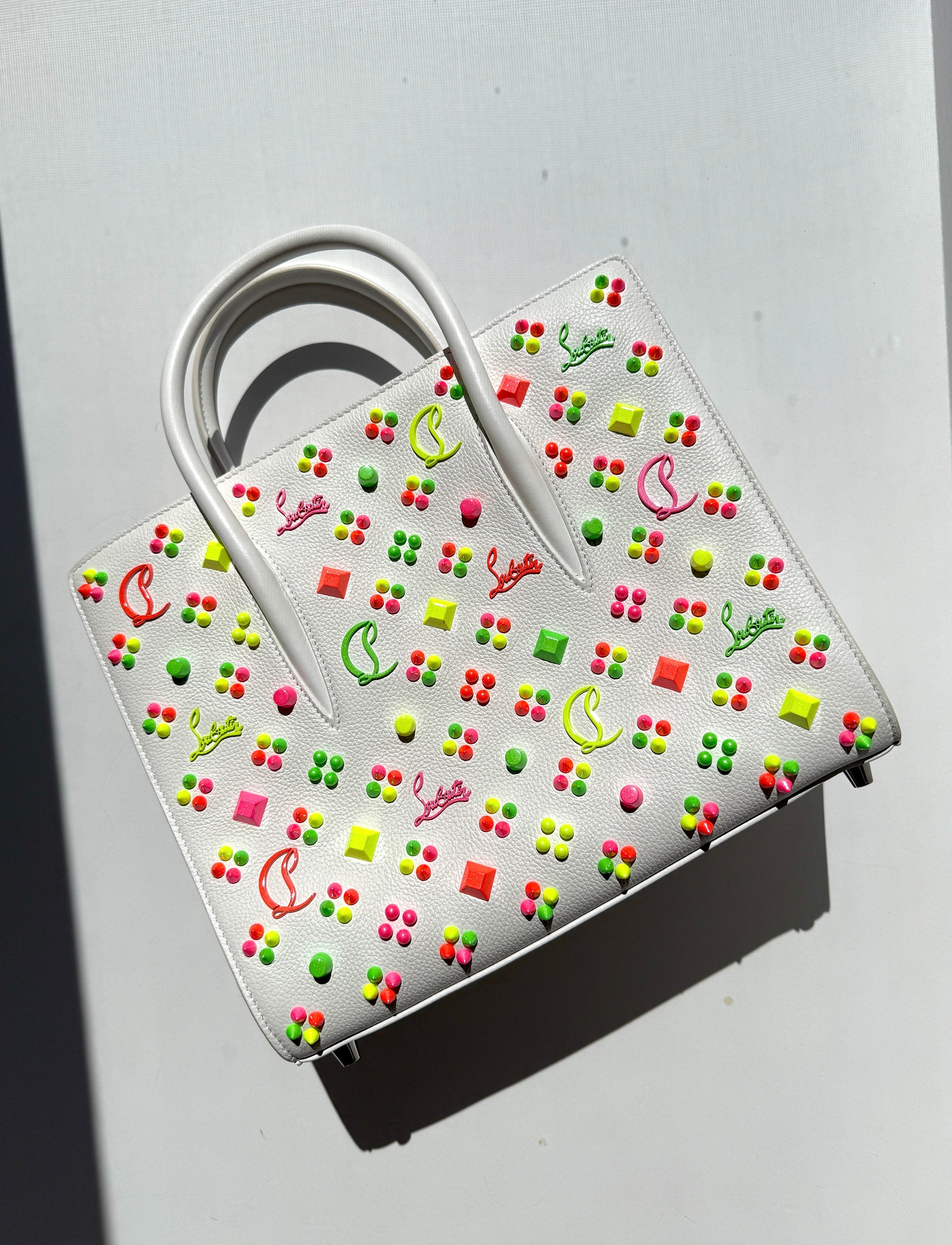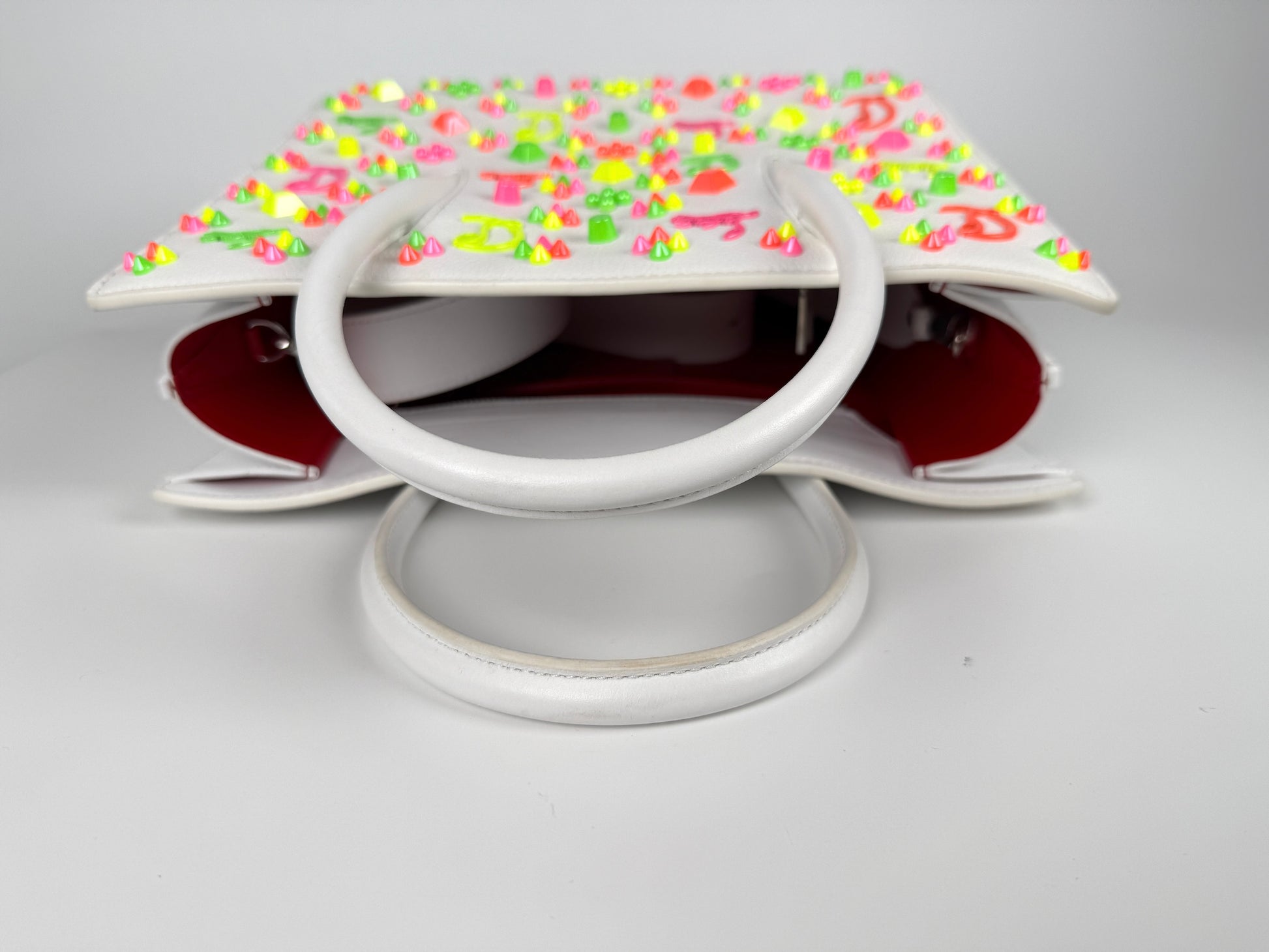 Christian Louboutin Paloma Medium Spike Loubinthesky White Neon Pink Leather Tote
