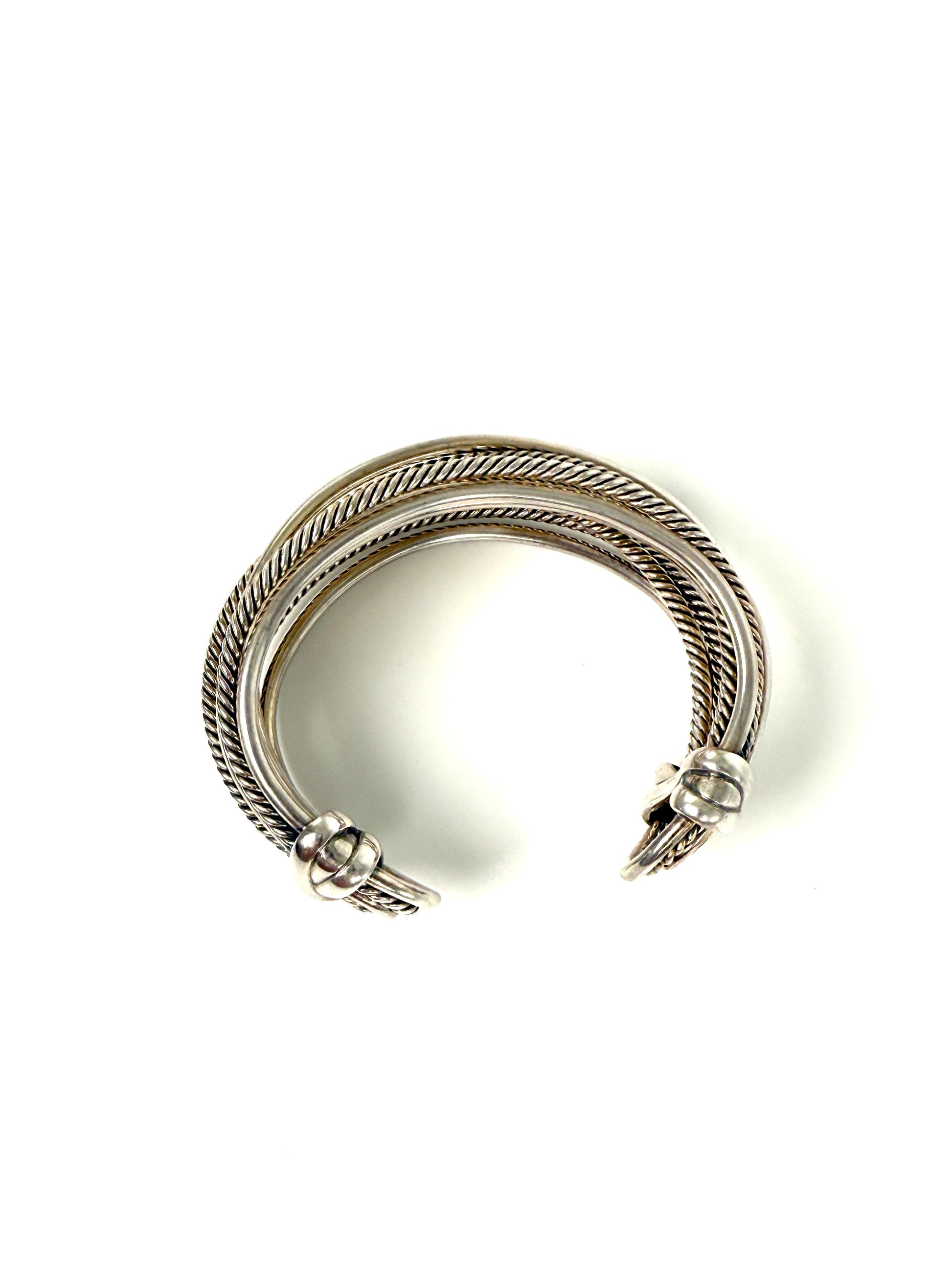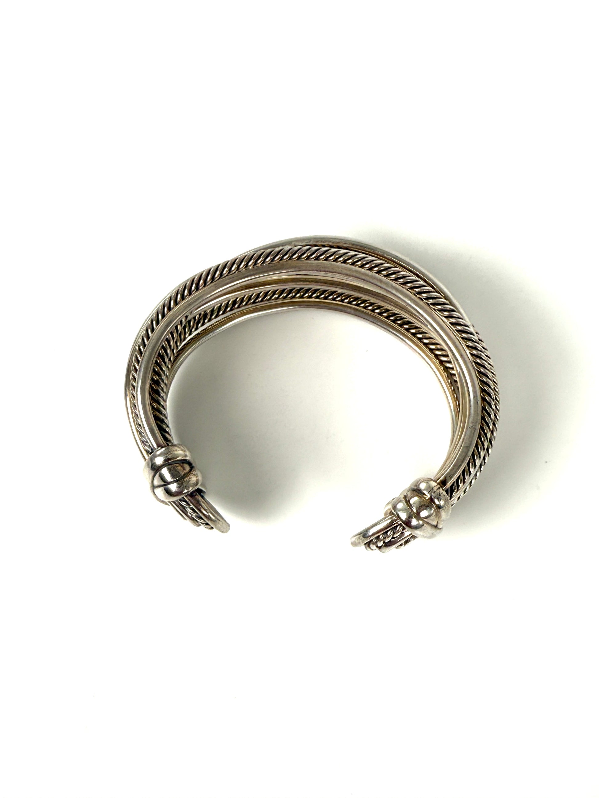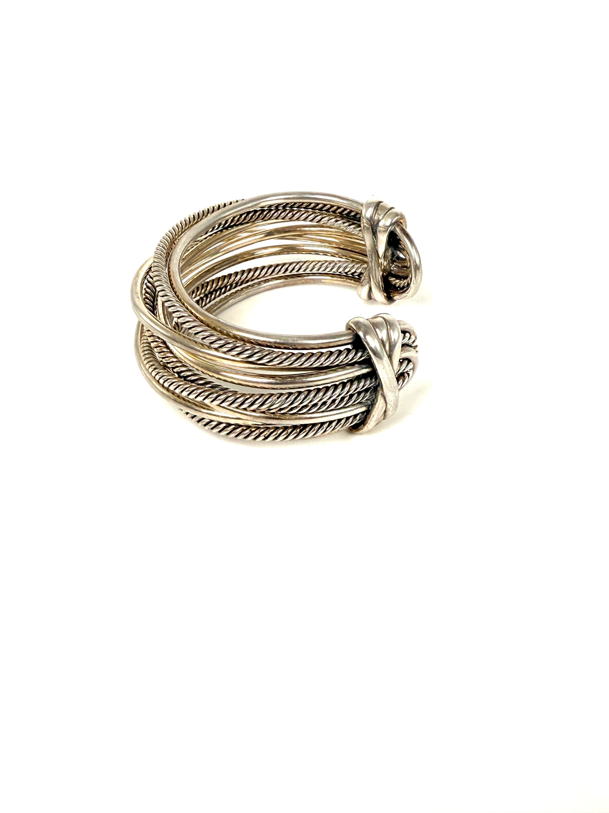 David Yurman Cable Crossover Multi Row Cable Cuff Sterling Silver Bracelet S