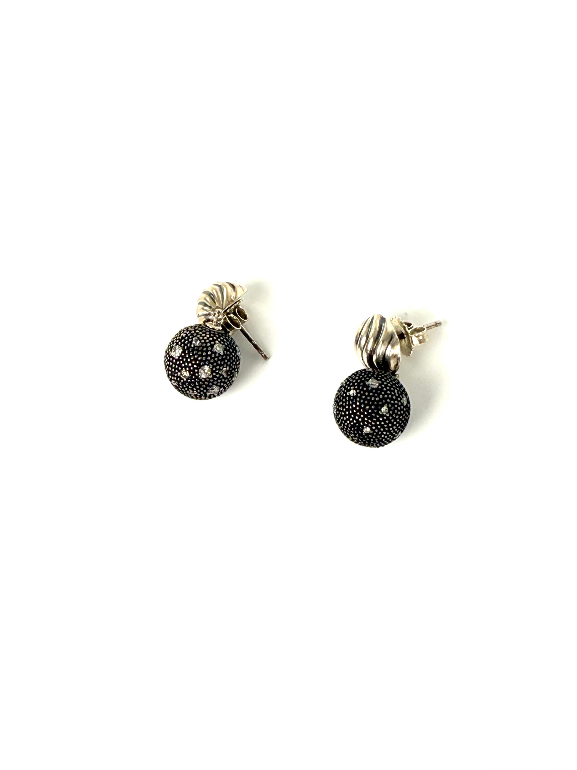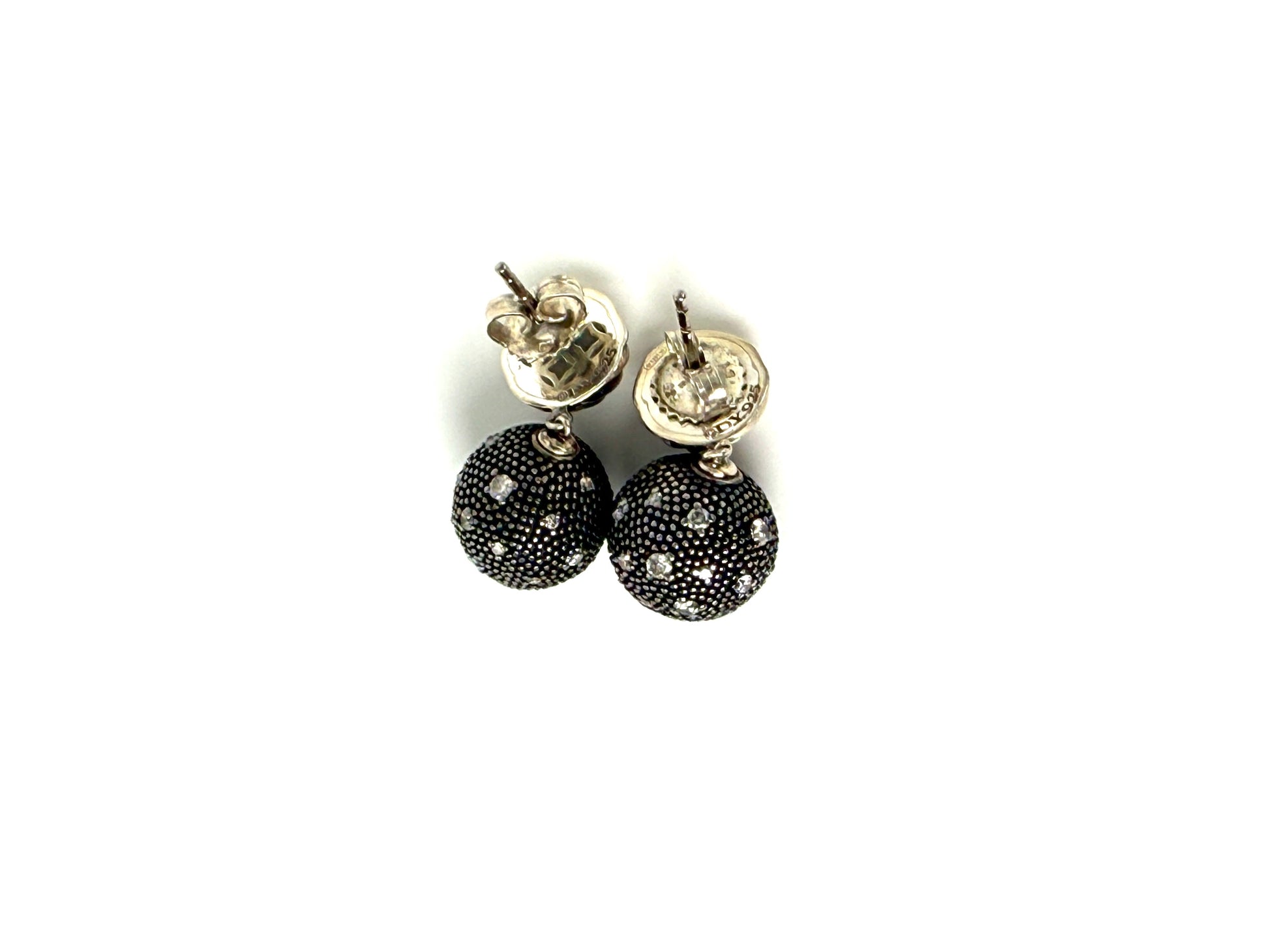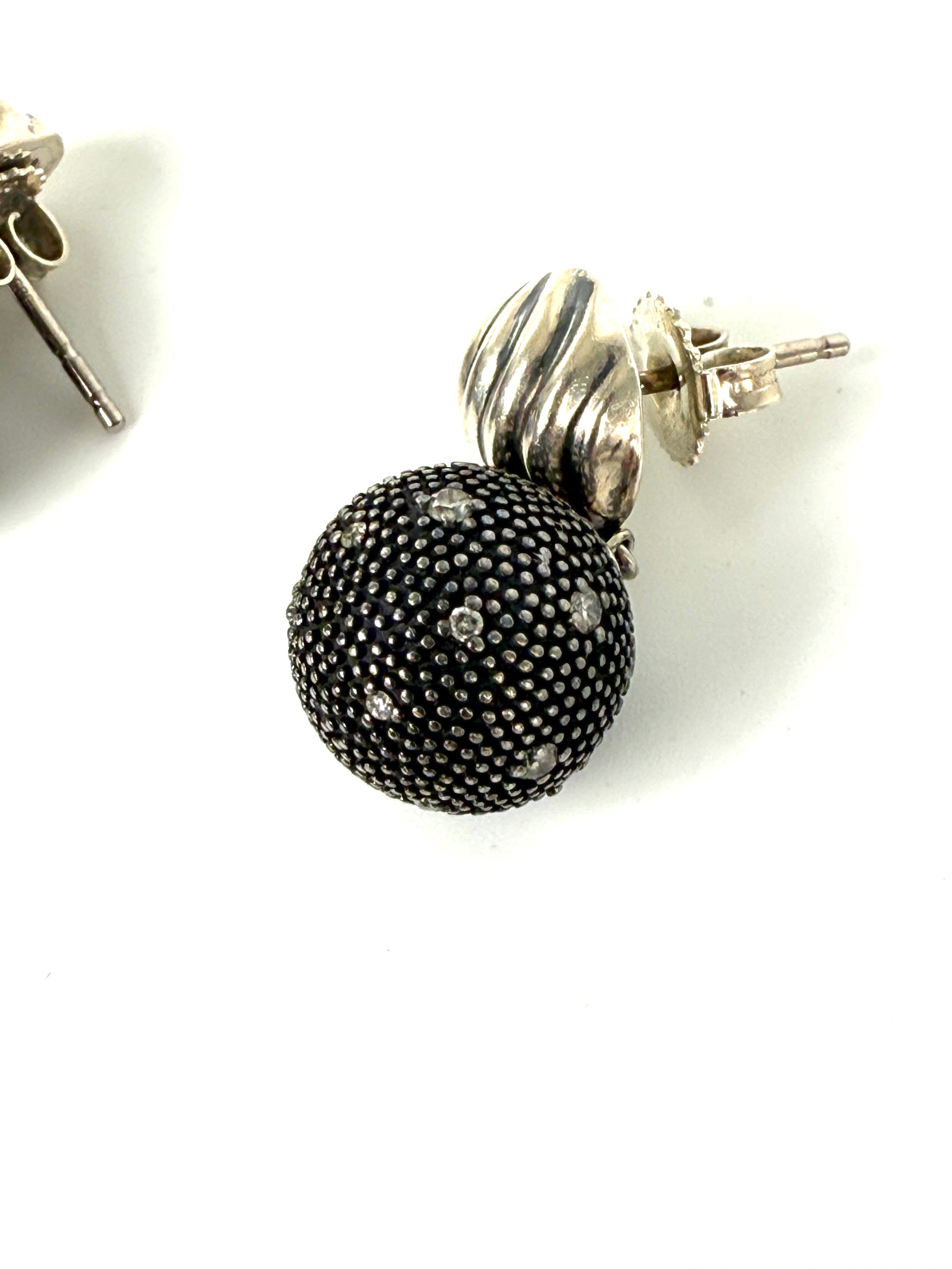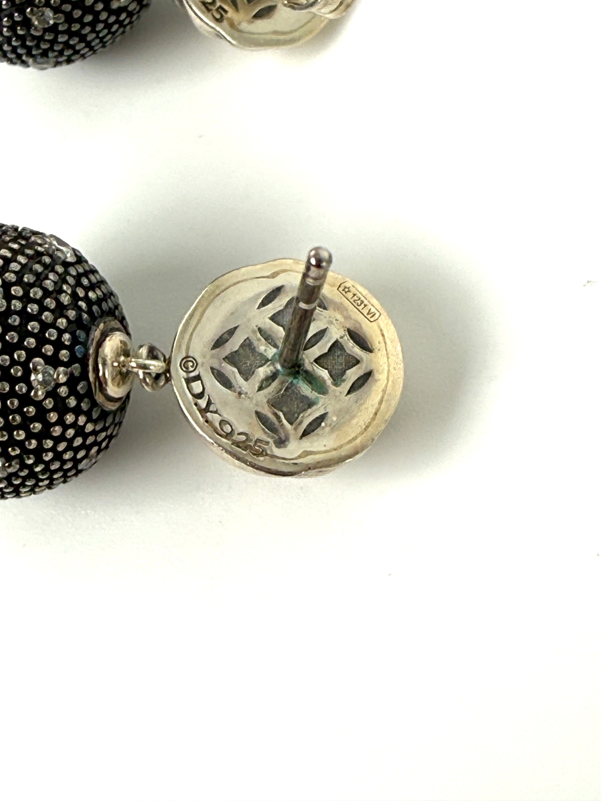 David Yurman Midnight Melange Starlight Ball Drop Diamond Sterling Silver Drop Earrings