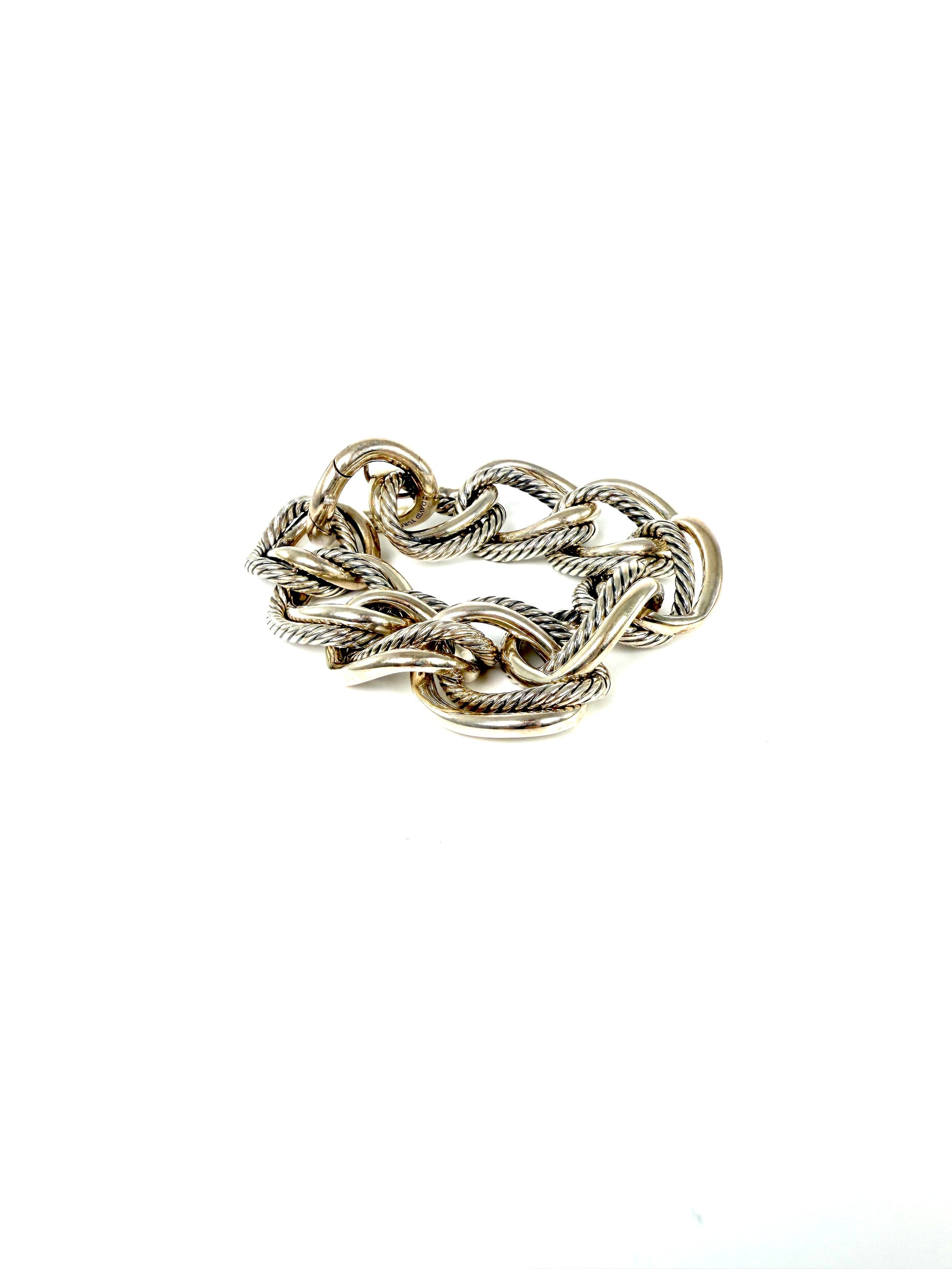 David Yurman Oval Double Cable Chain Sterling Silver Bracelet S