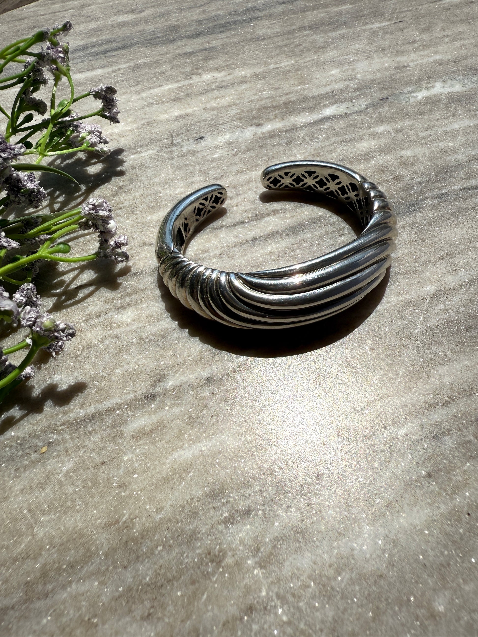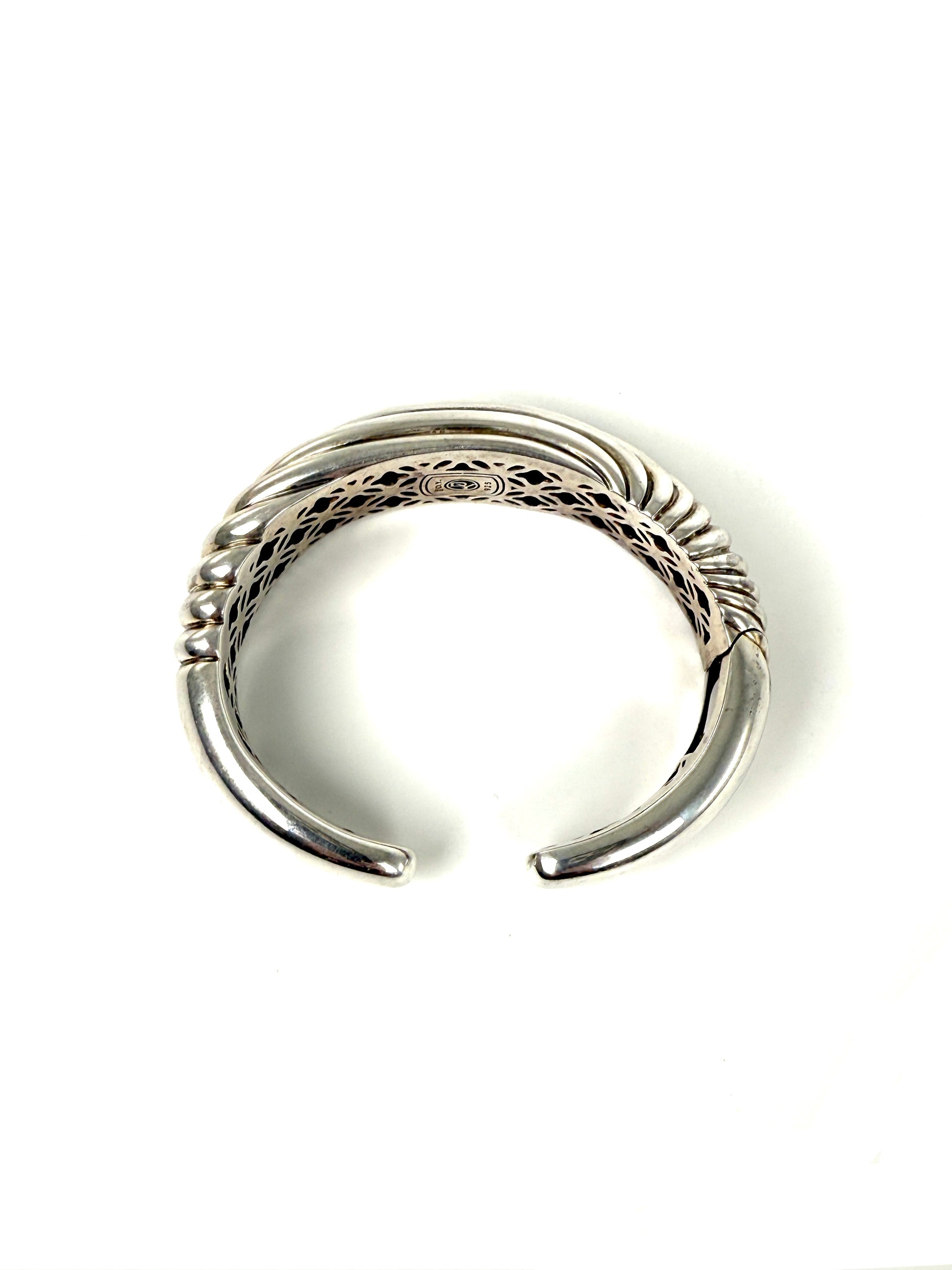David Yurman Sculpted Cable Hinge Cuff Sterling Silver Bracelet S