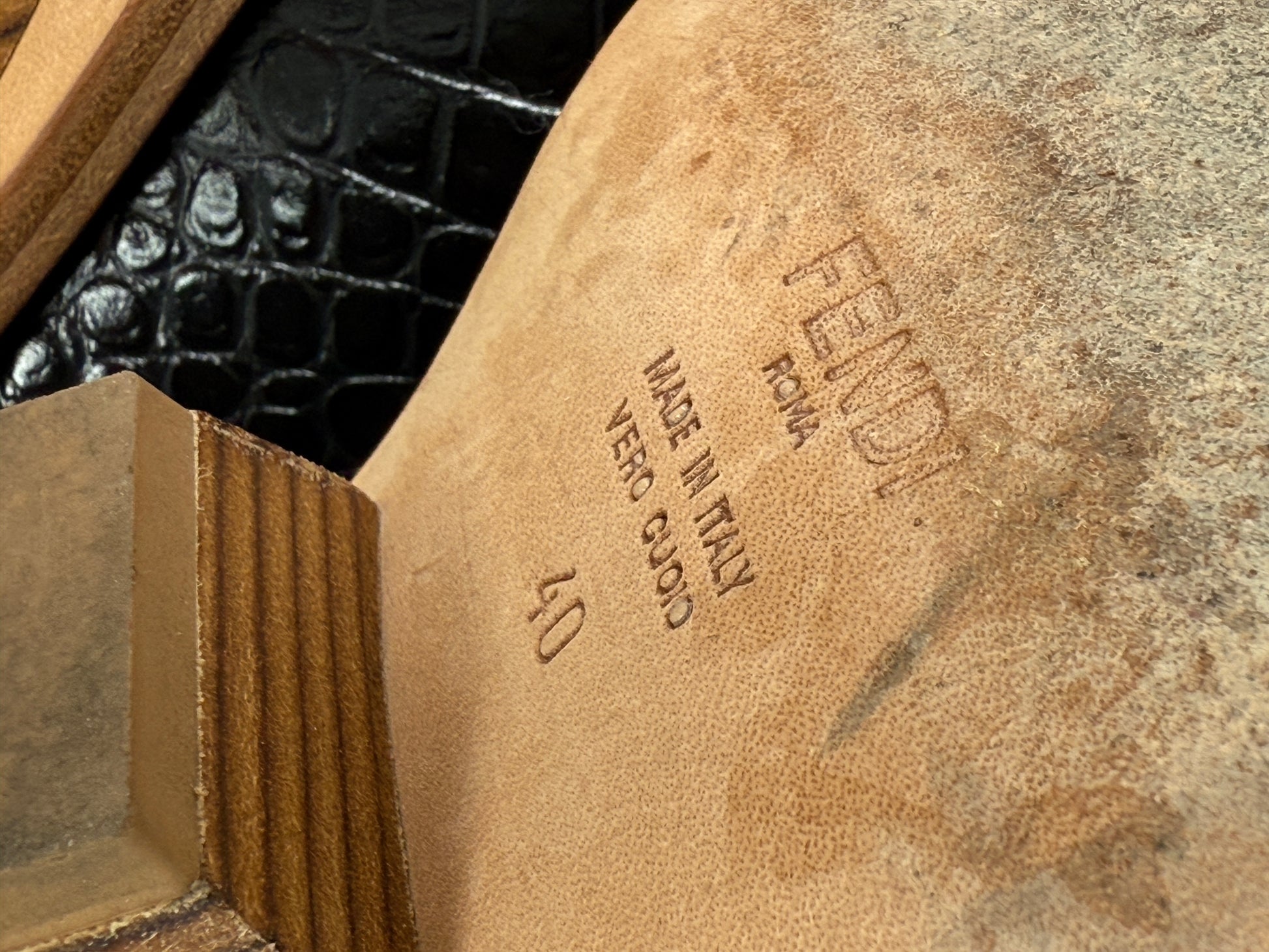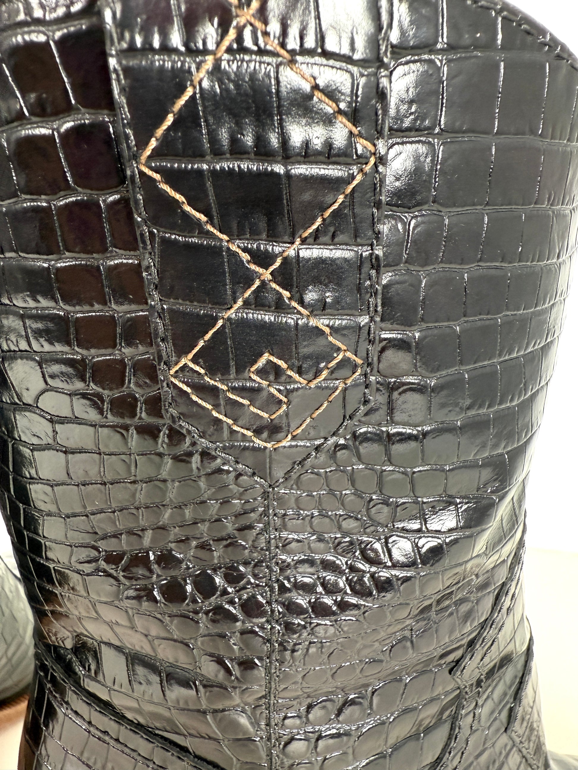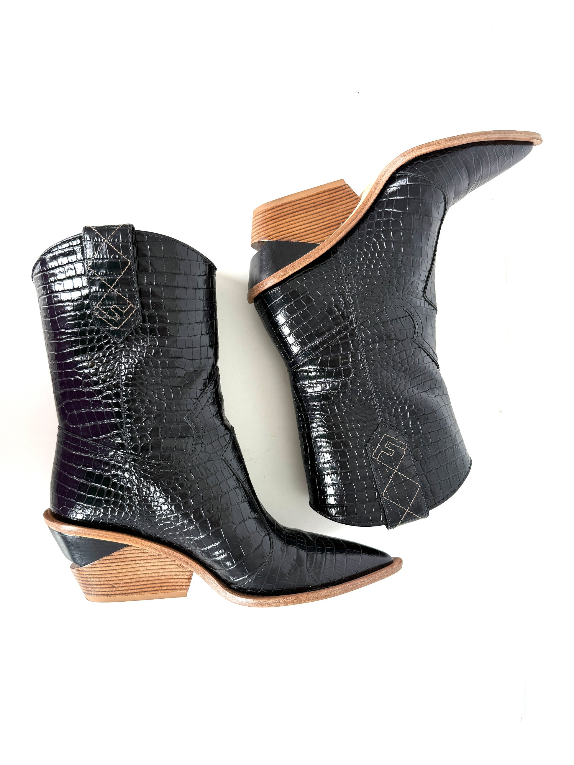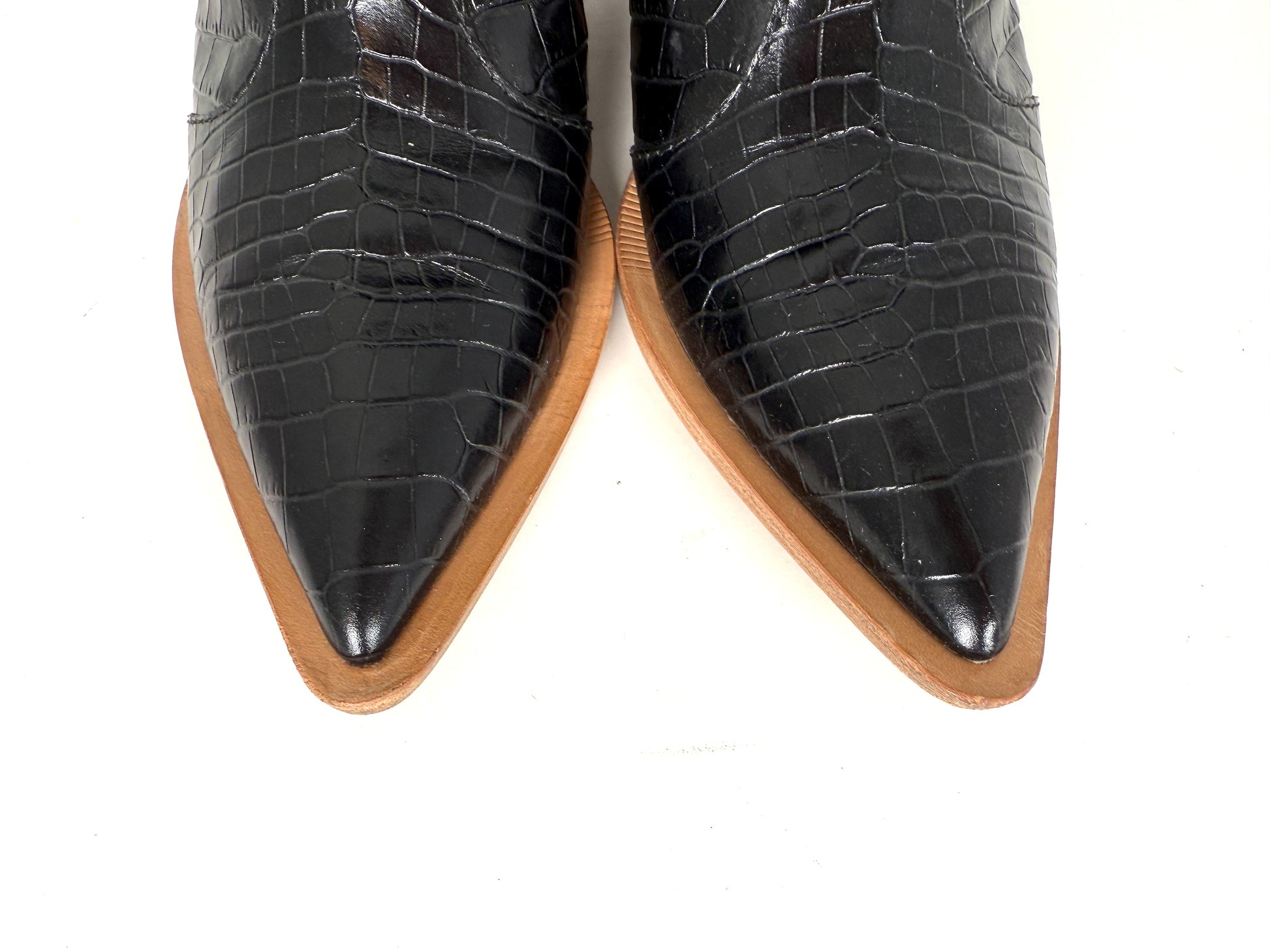 FENDI Black Animal Print Western Mid Calf Tronchetto Vitello Stampa Cocco Pointed Toe Boots 40, 9.5