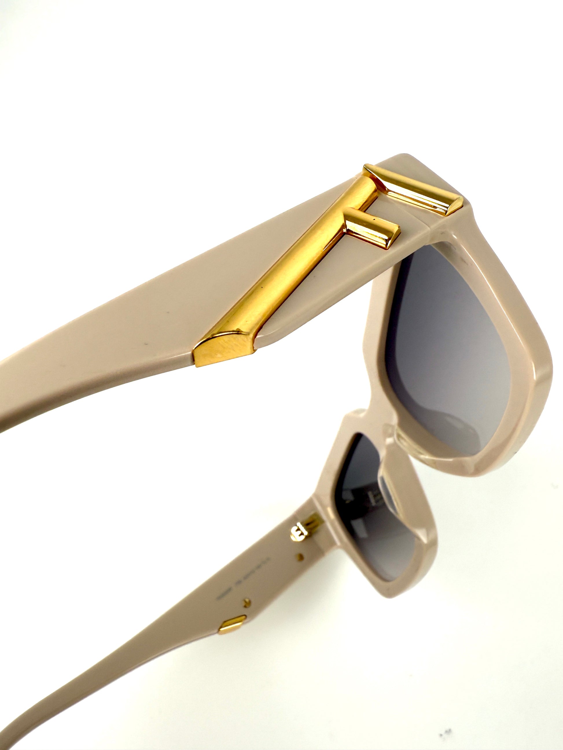FENDI FE4009I Acetate Beige Gold Rectangular Sunglasses