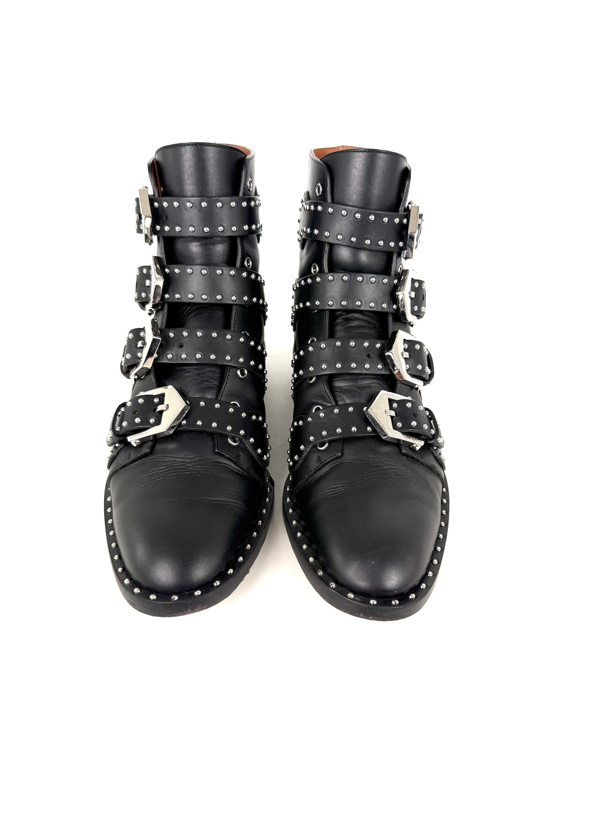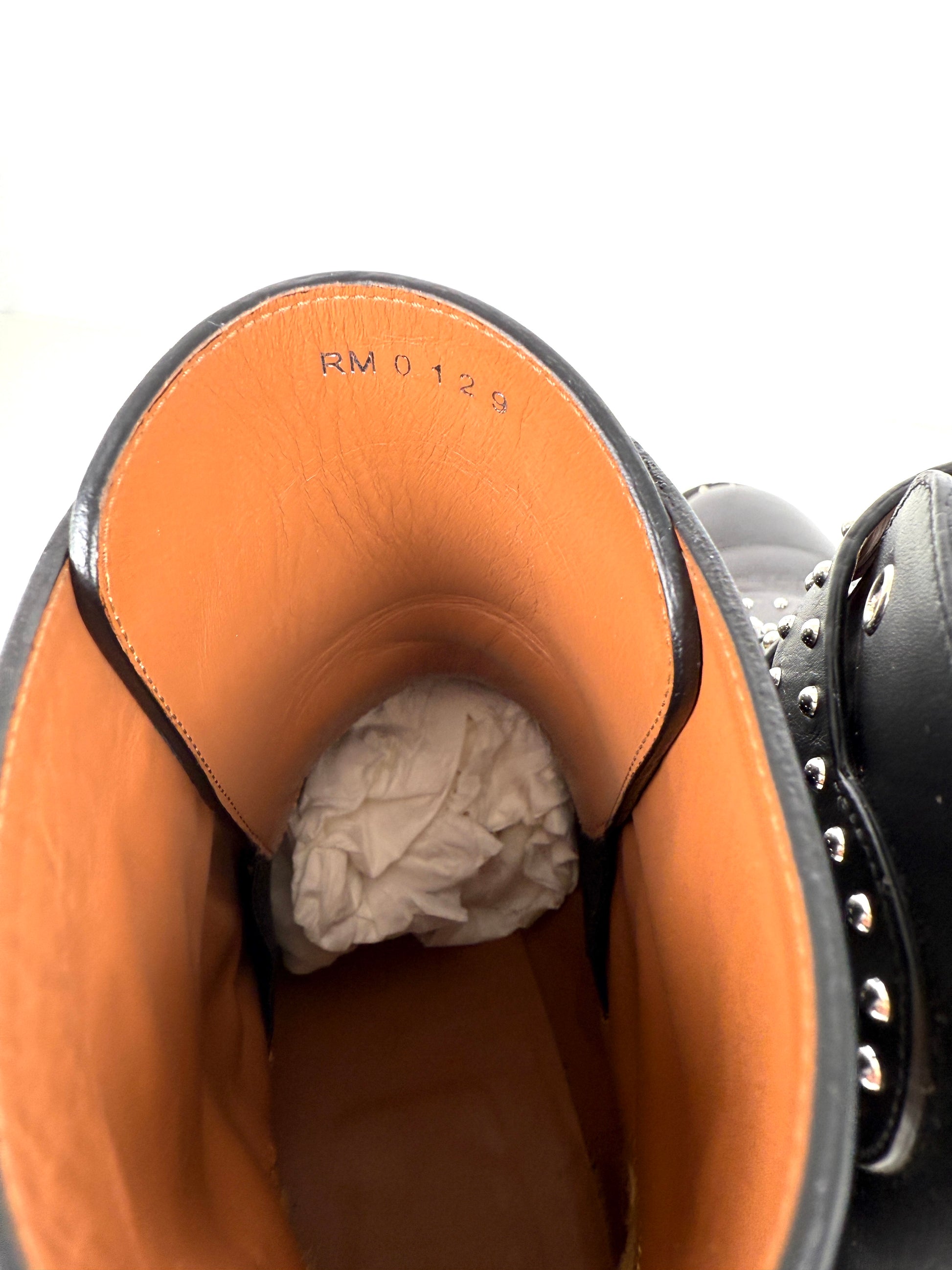 Givenchy Black Elegant Ankle Studded Combat Boots 37.5, 7.5