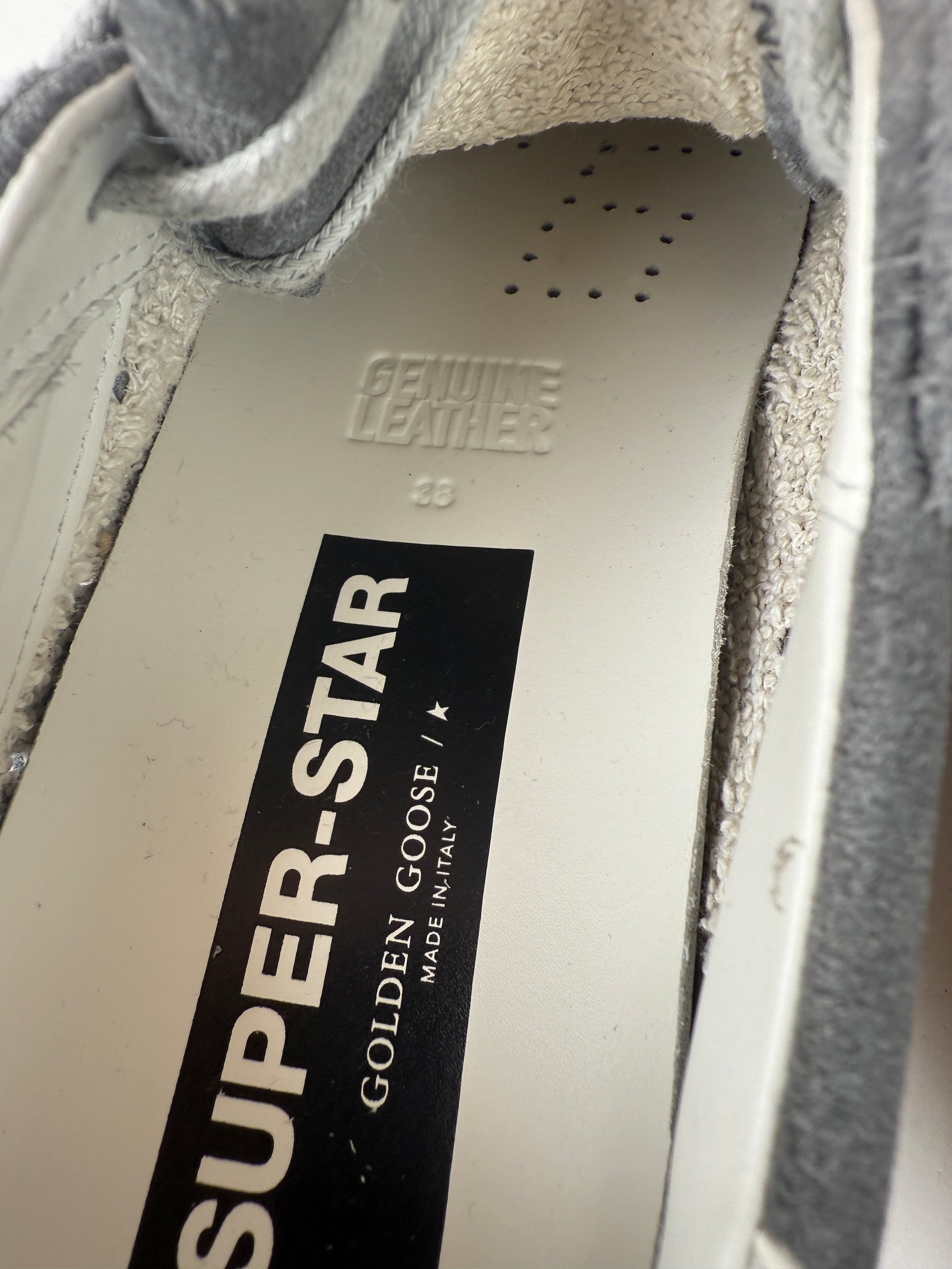 Golden Goose Superstar Gray Pink Glitter Low Top Sneakers 38 8