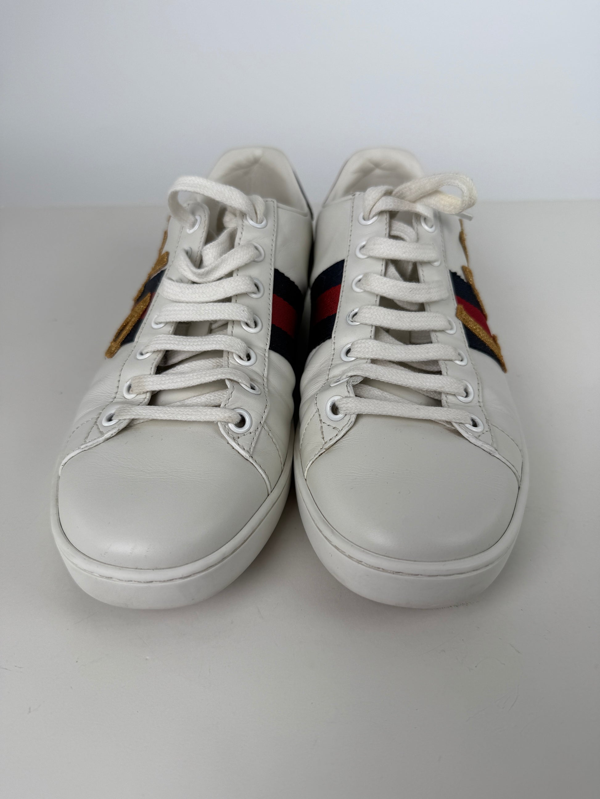 GUCCI Loved Web Leather Printed Embellished White Sneakers 37.5