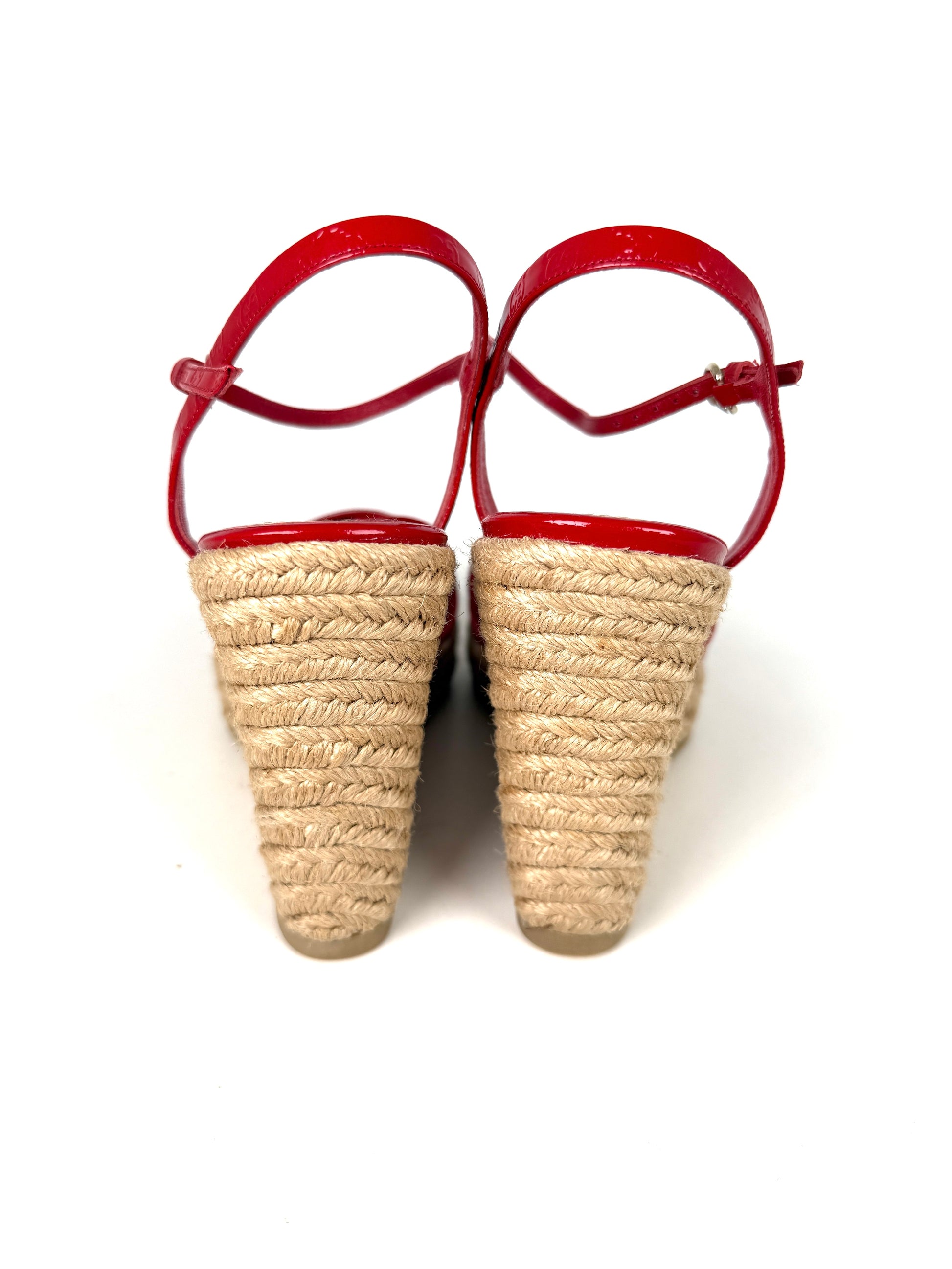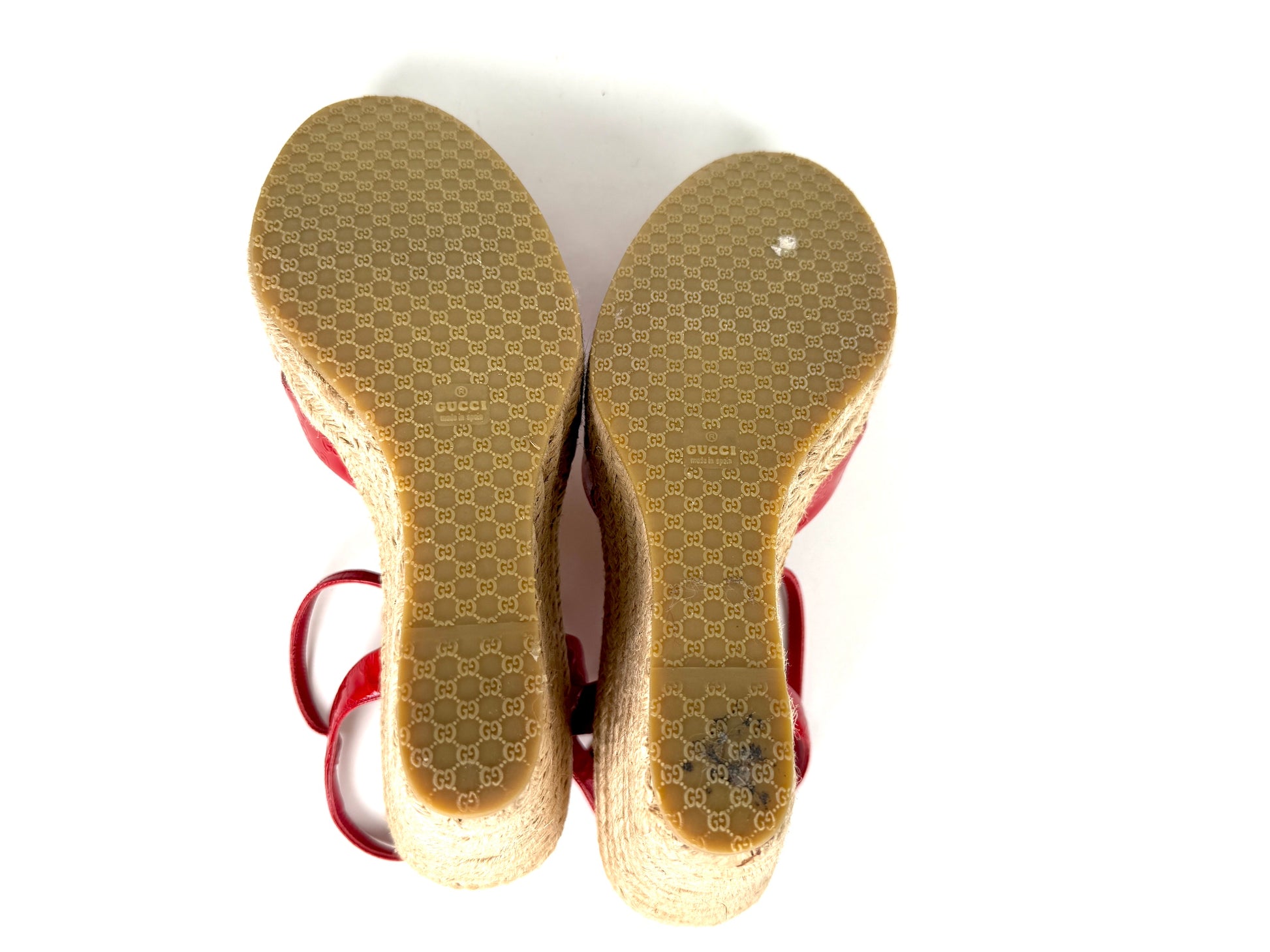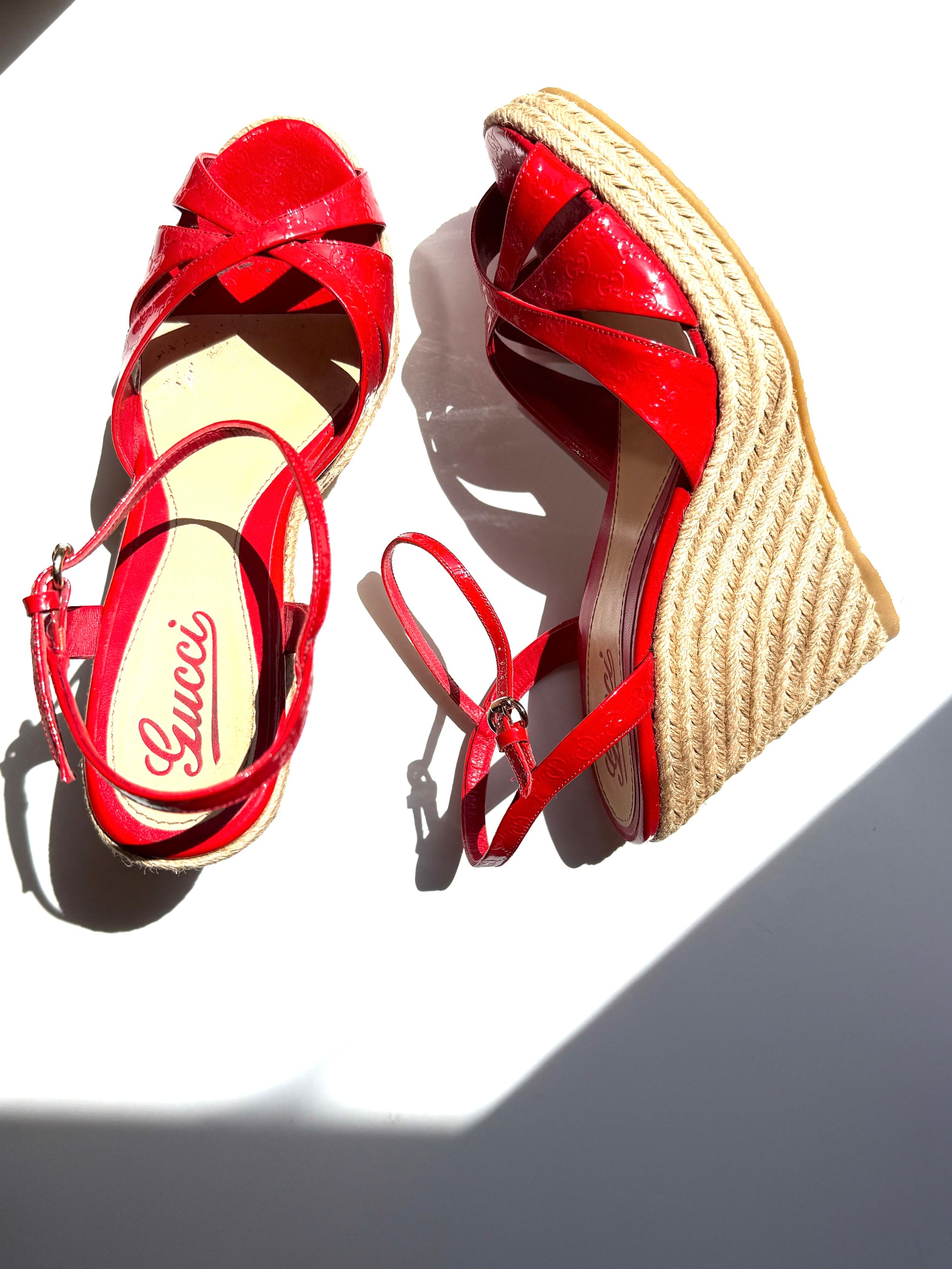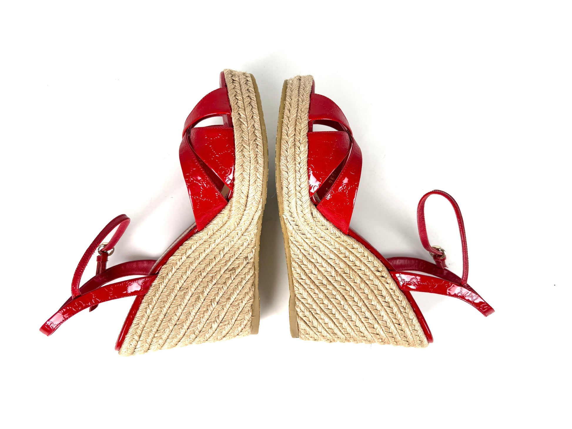 Gucci Micro GG Red Patent Leather Platform Wedge Sandals Heels 39.5 9.5