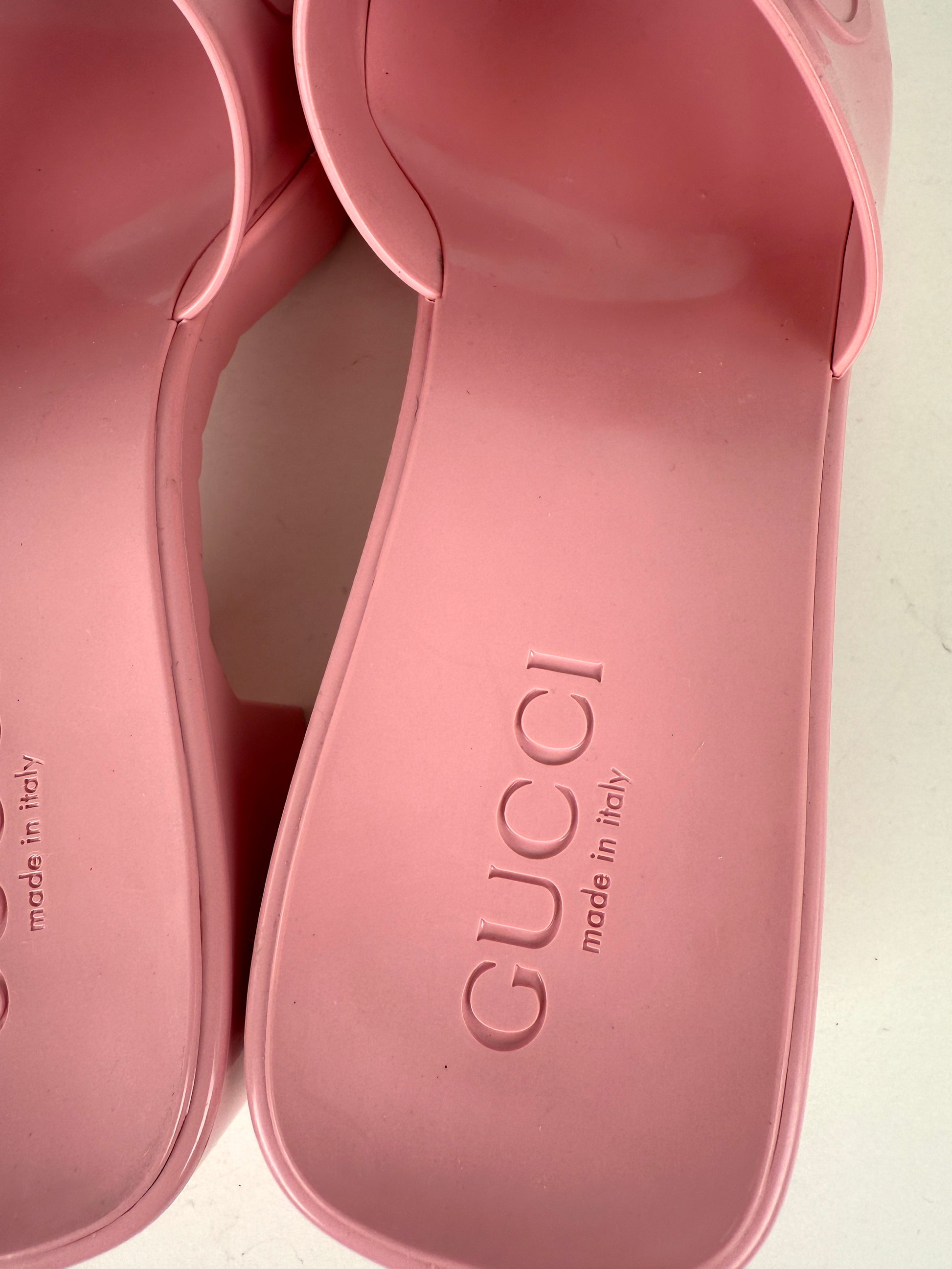 GUCCI Rubber Pink Wild Rose Platform Slide Sandals 36, 6